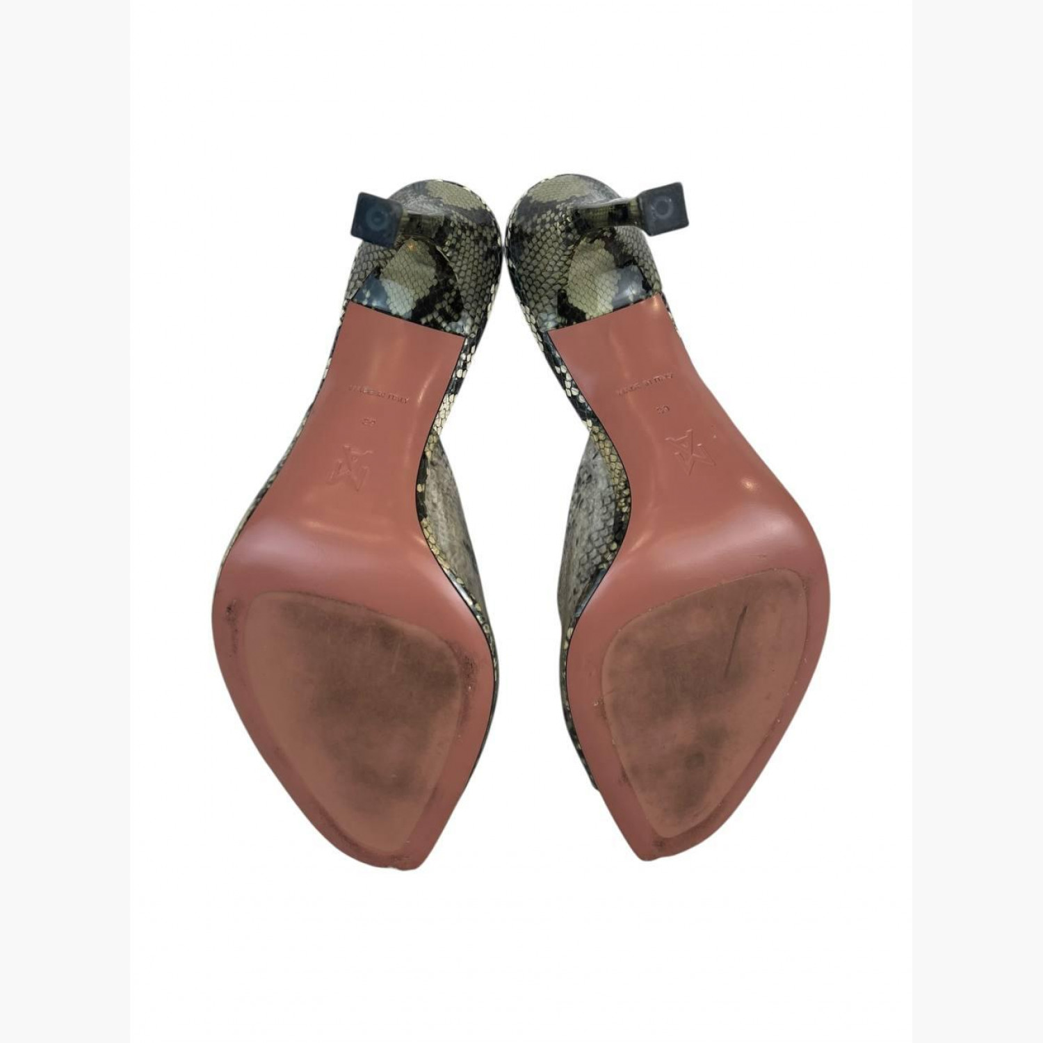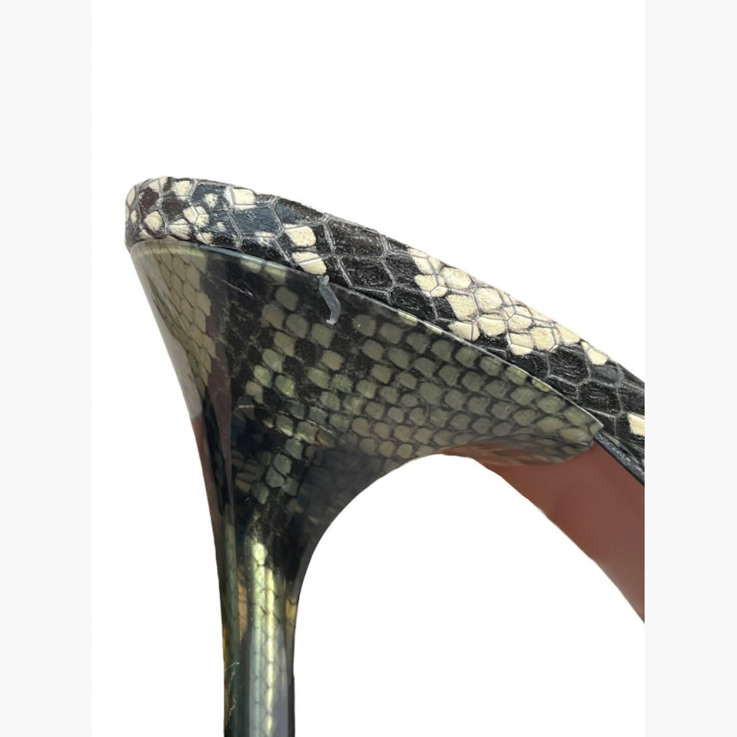 Silicone mules with an open toe and a python-effect snakeskin print. In excellent condition, with wear marks.