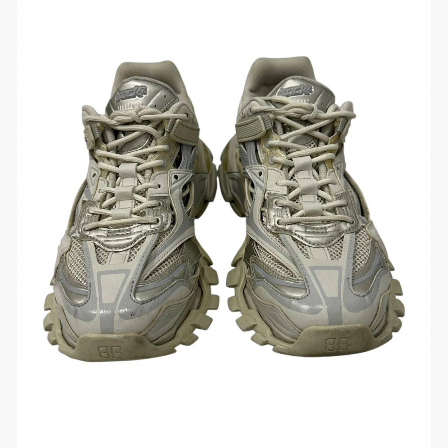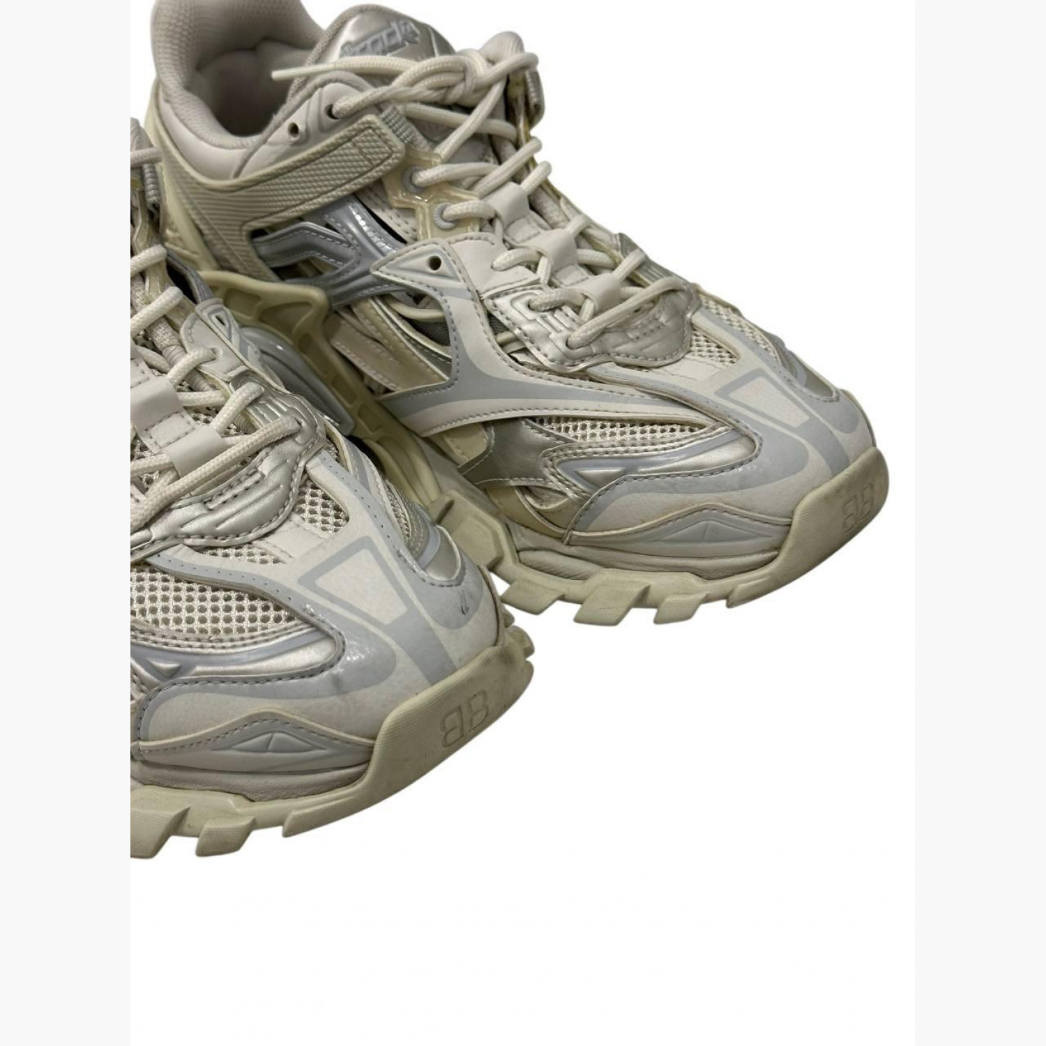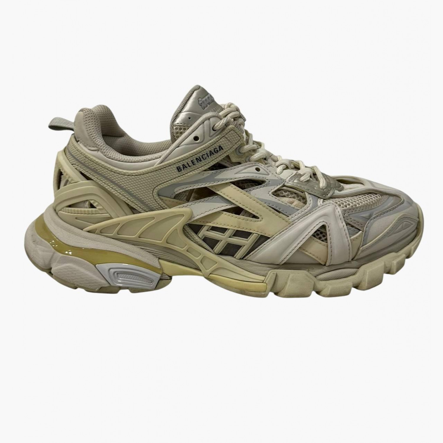 Light-colored leather sneakers with mesh inserts. In good condition, with wear marks.