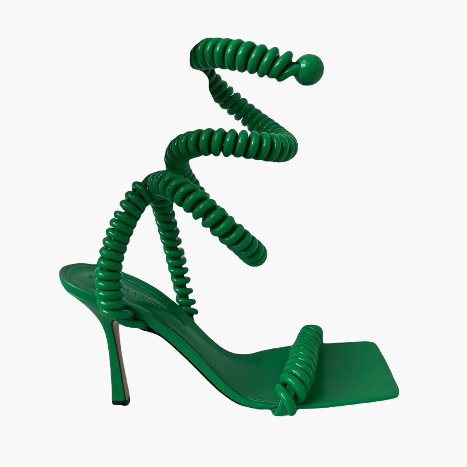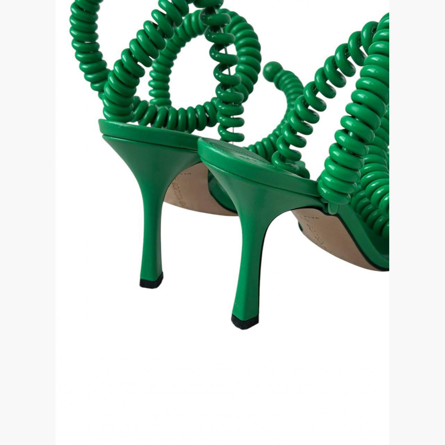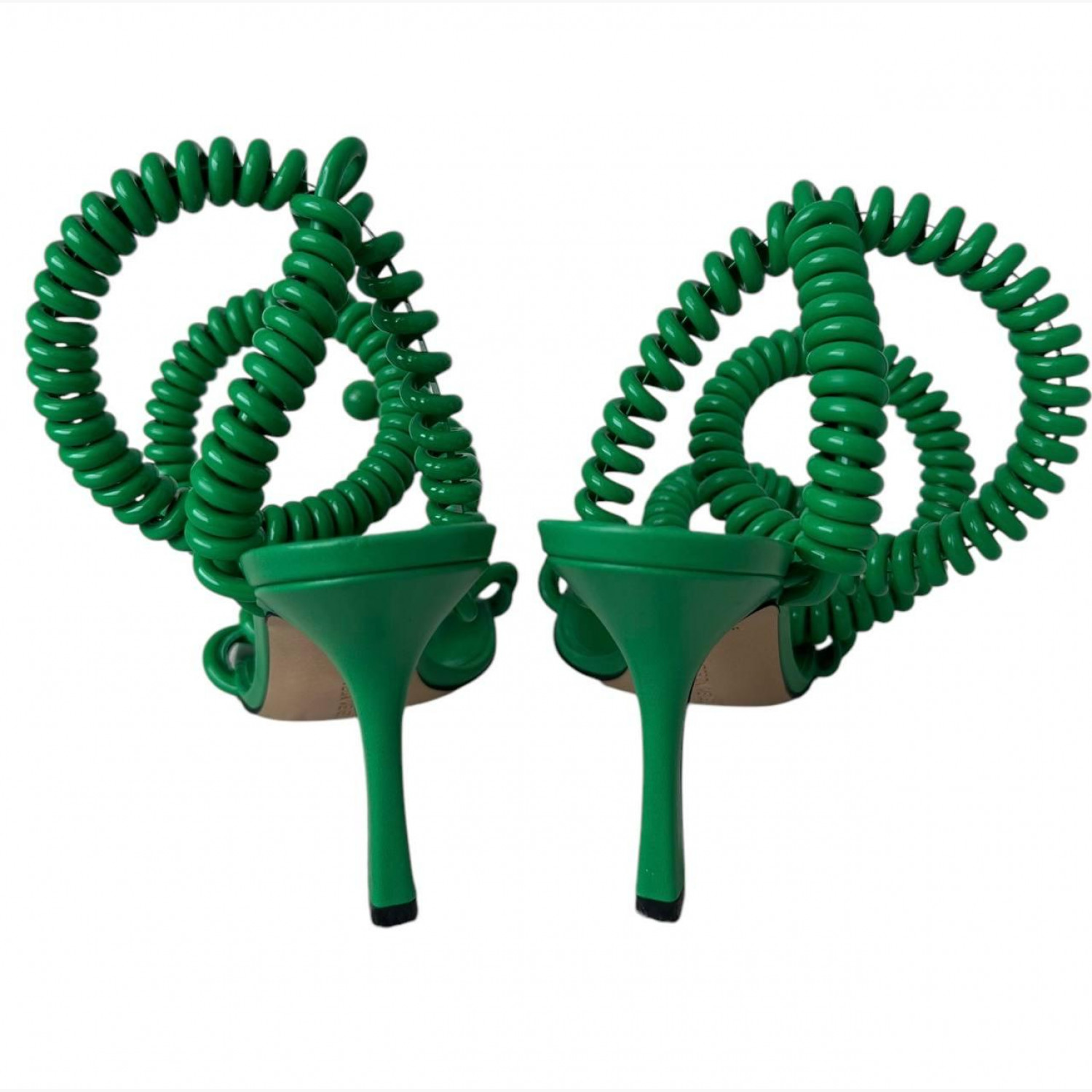Green leather spiral sandals. New, no wear marks.