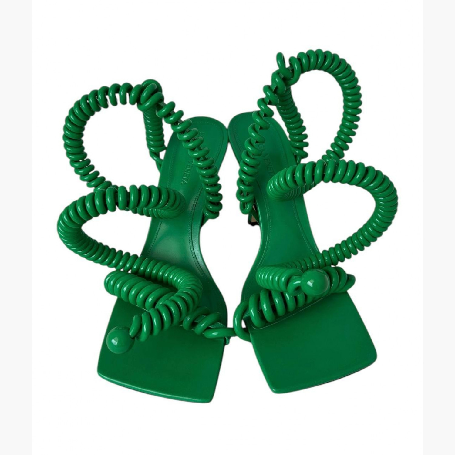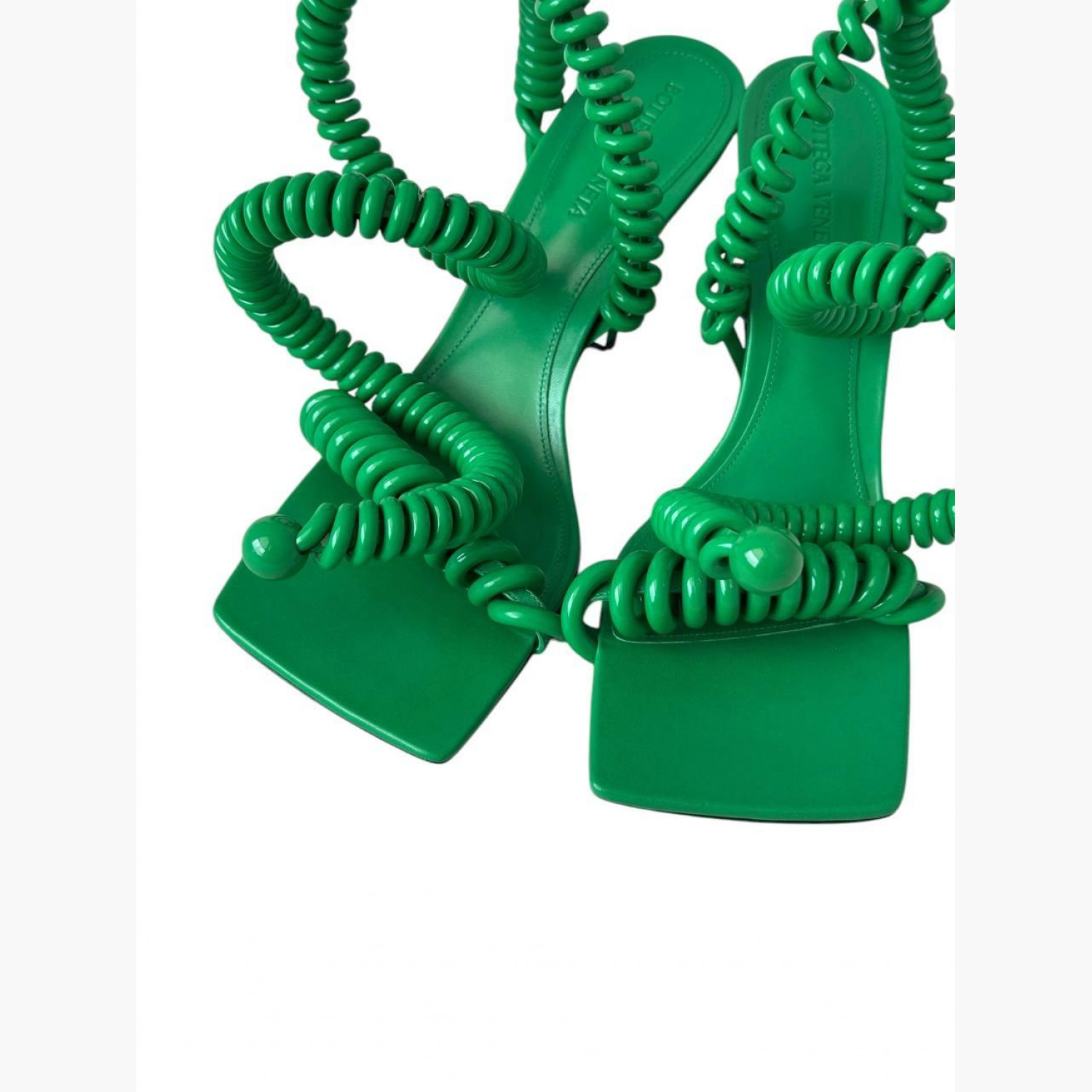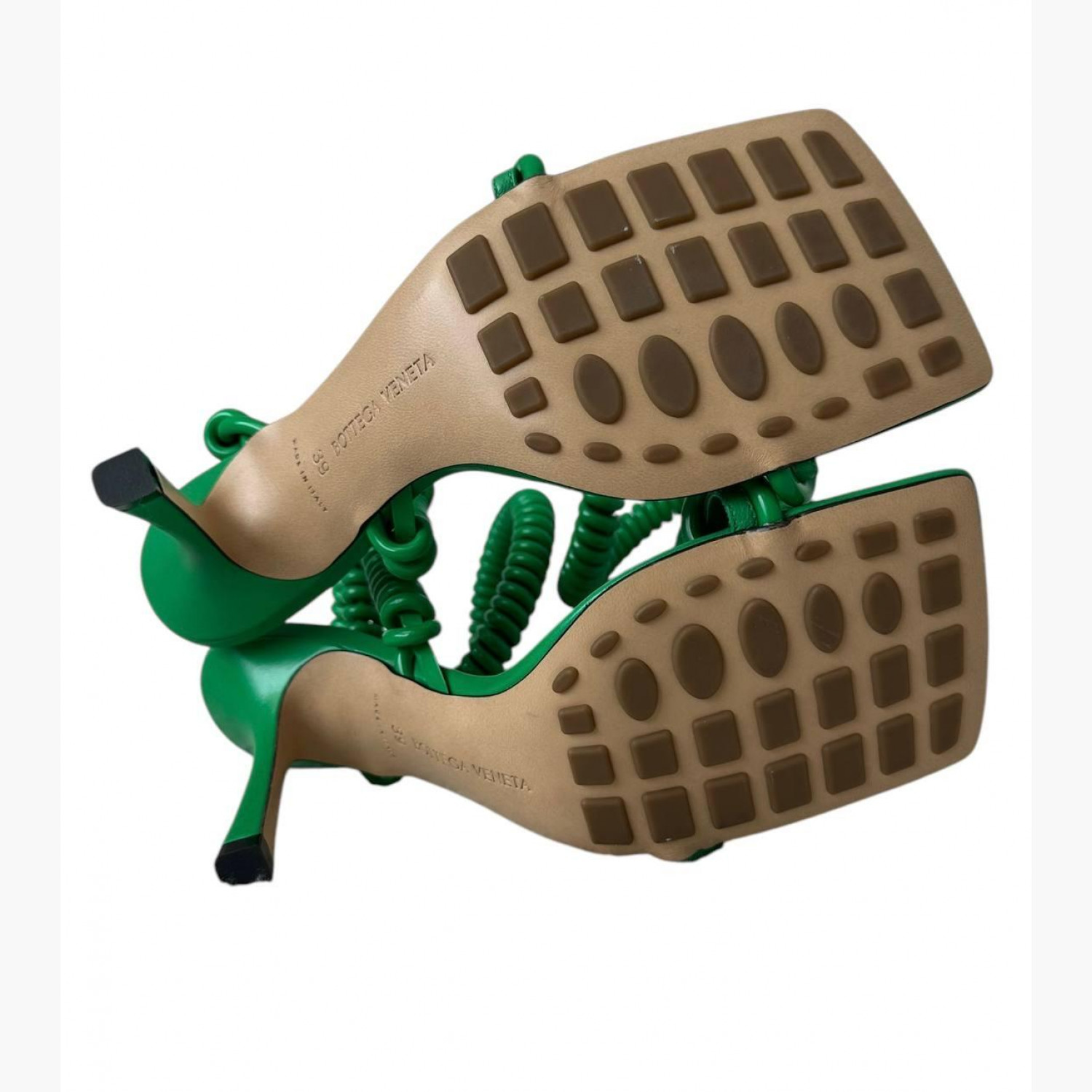 Green leather spiral sandals. New, no wear marks.