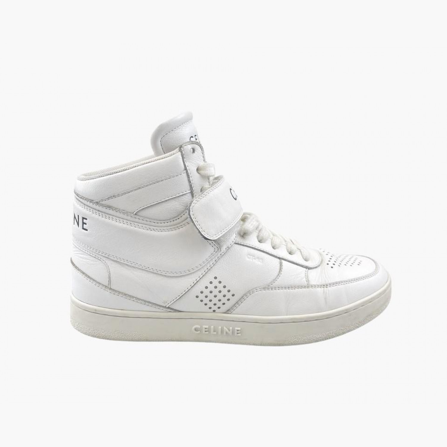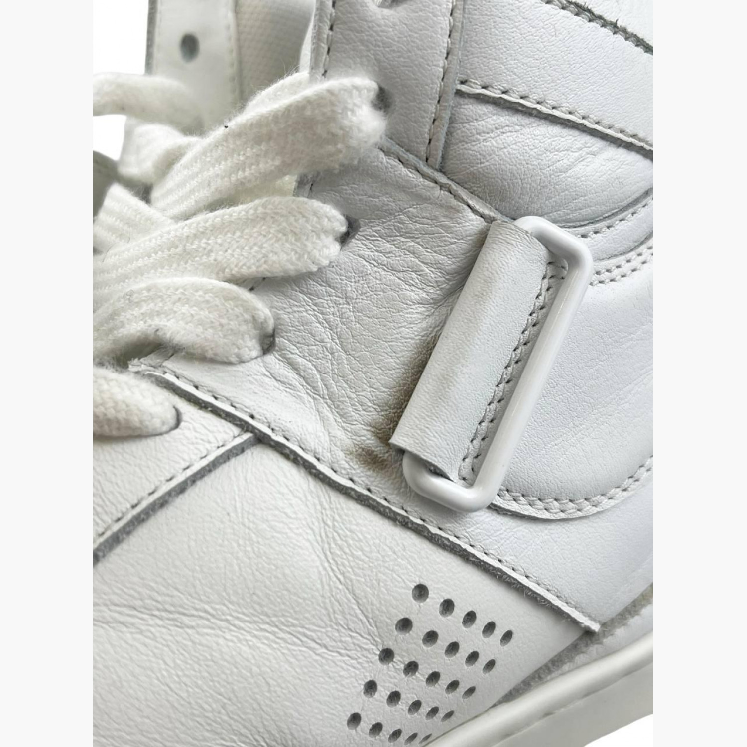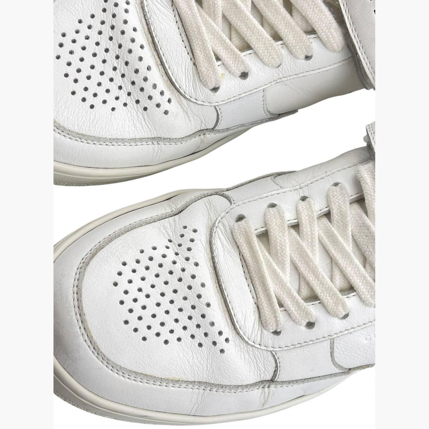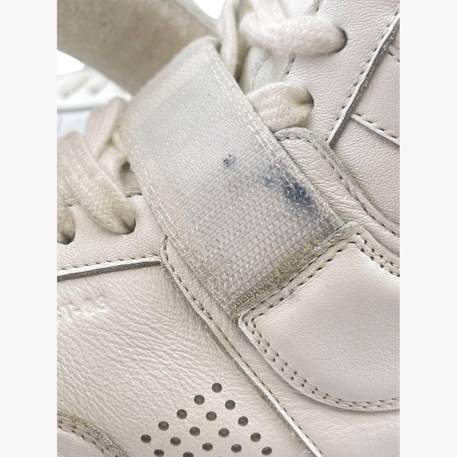 High white sneakers with a Velcro strap. In good condition with wear marks.