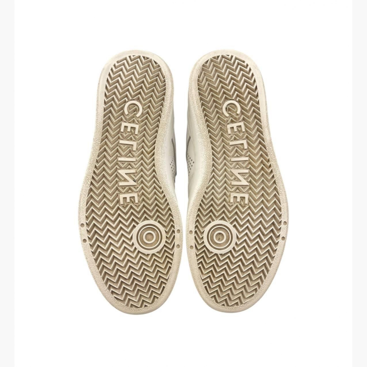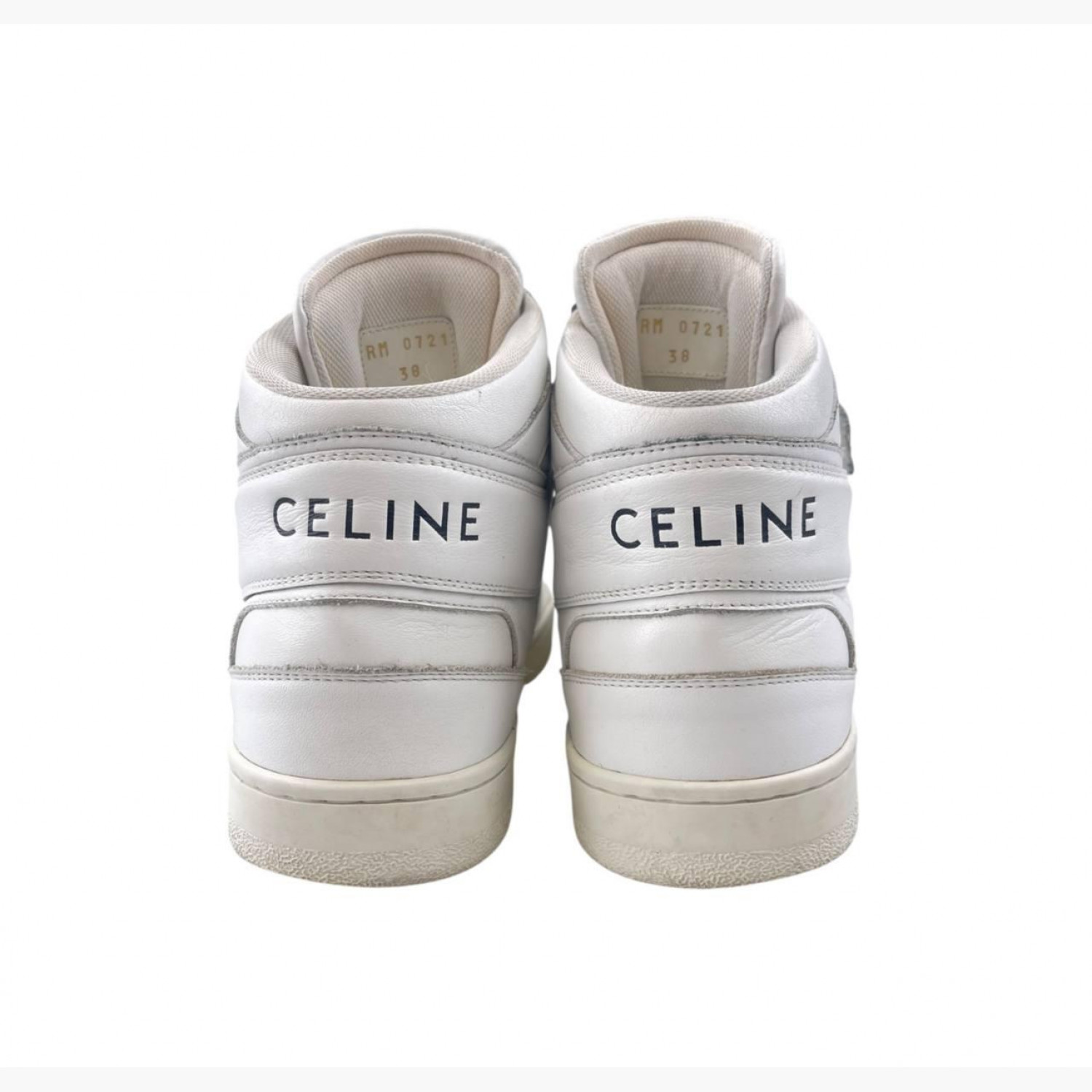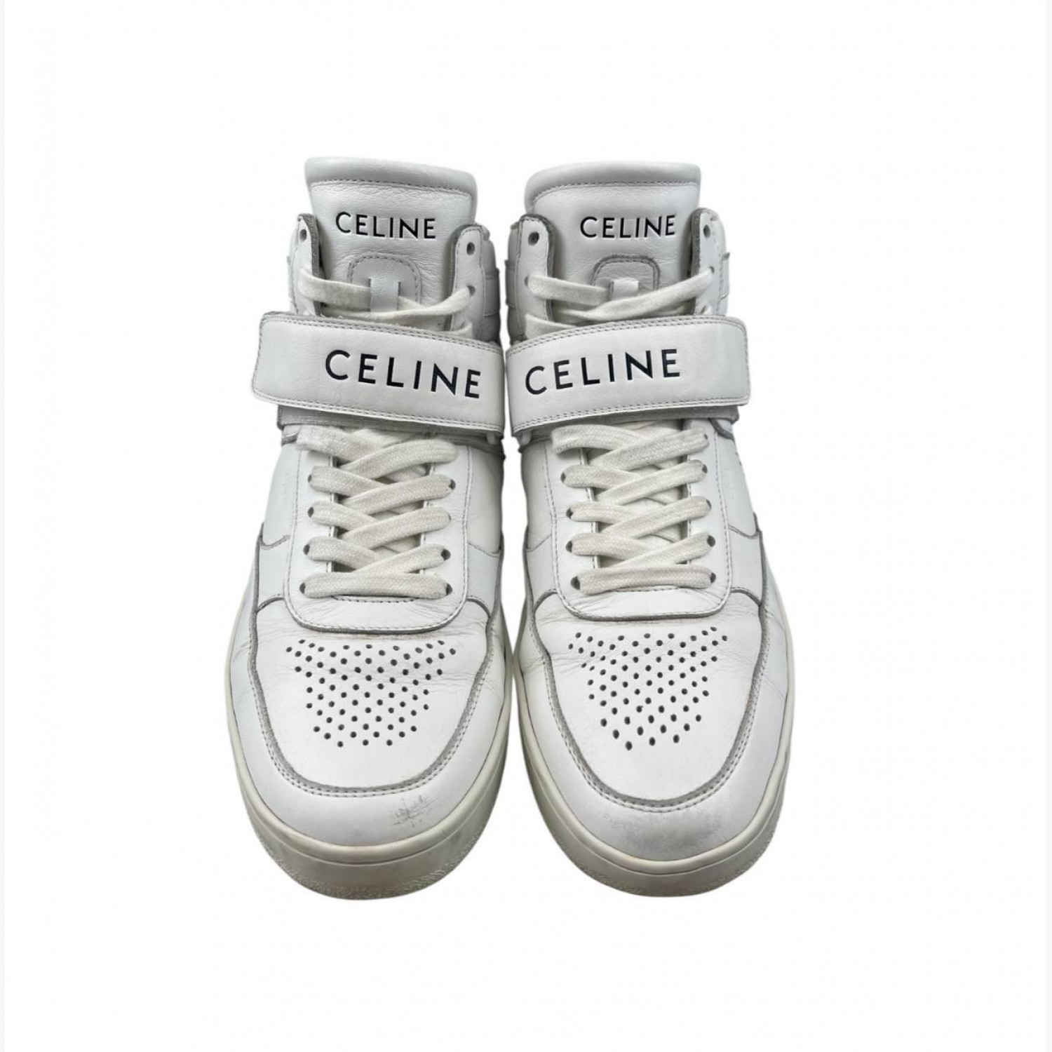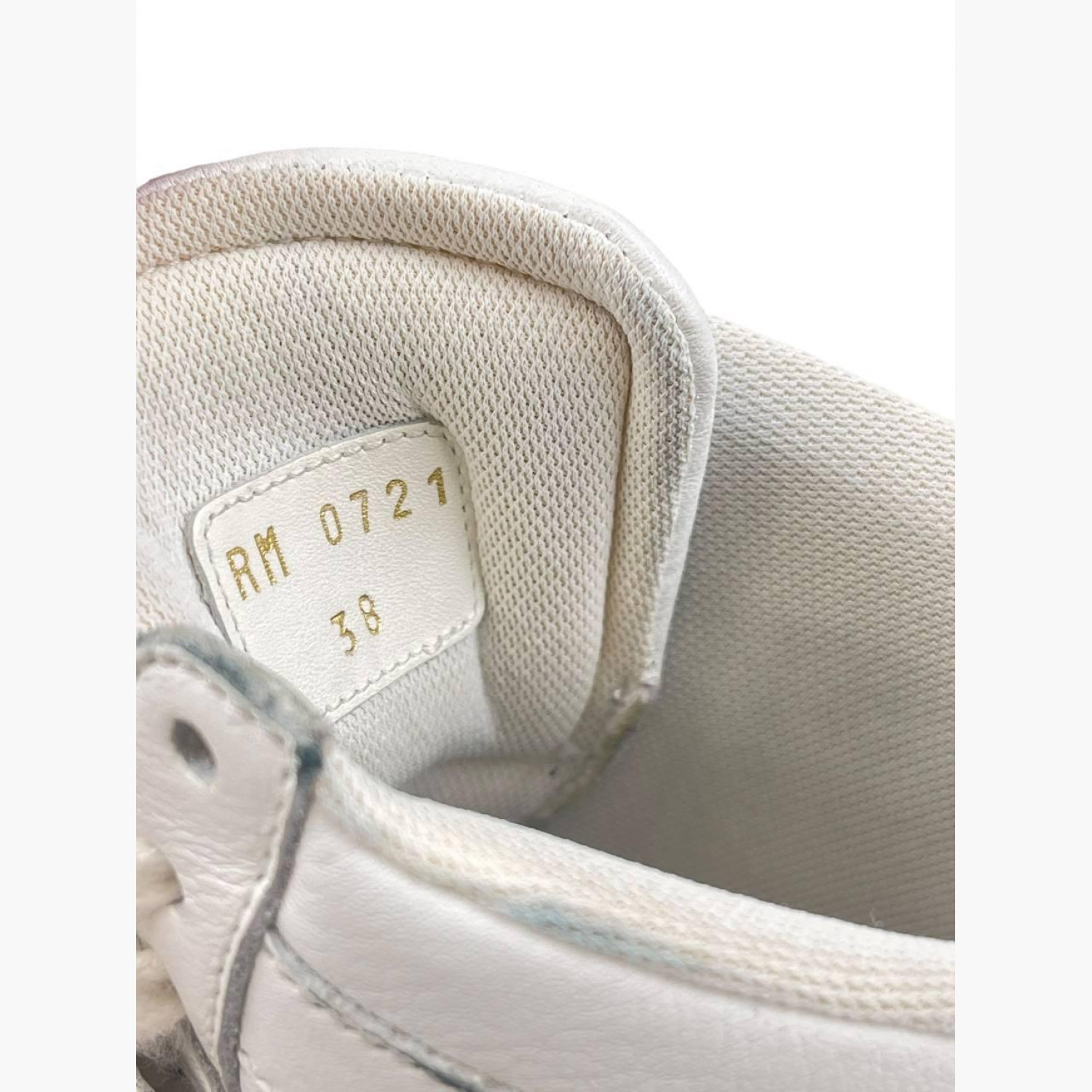 High white sneakers with a Velcro strap. In good condition with wear marks.