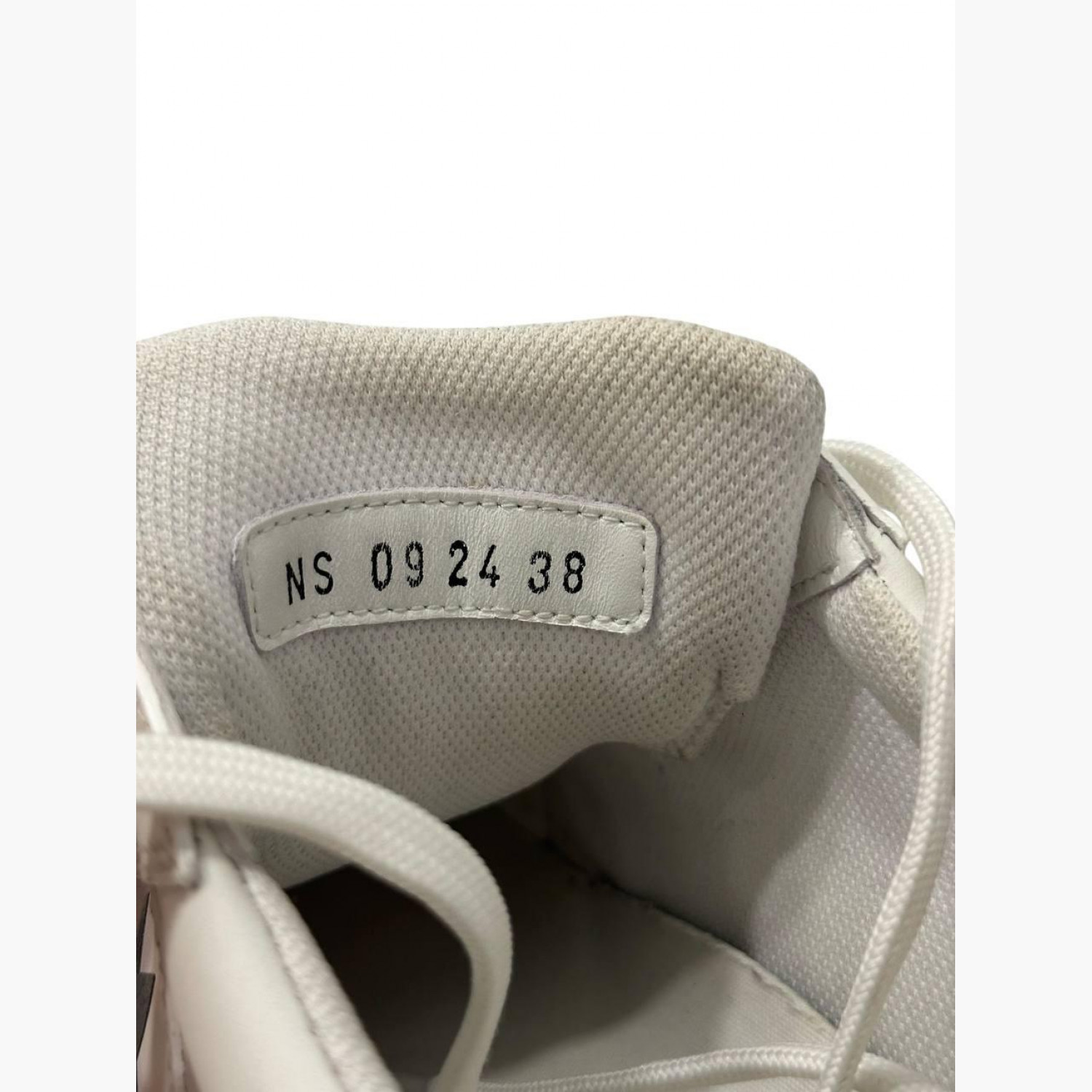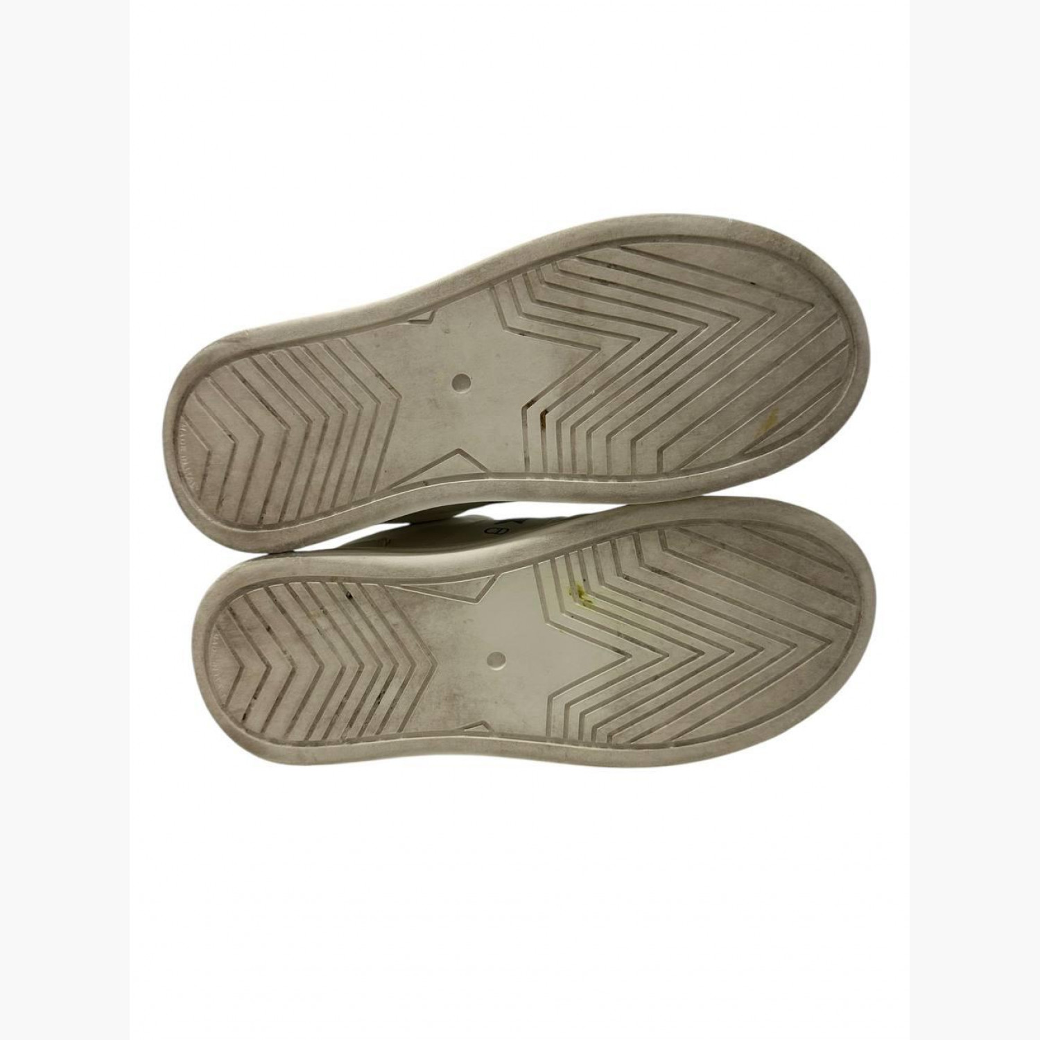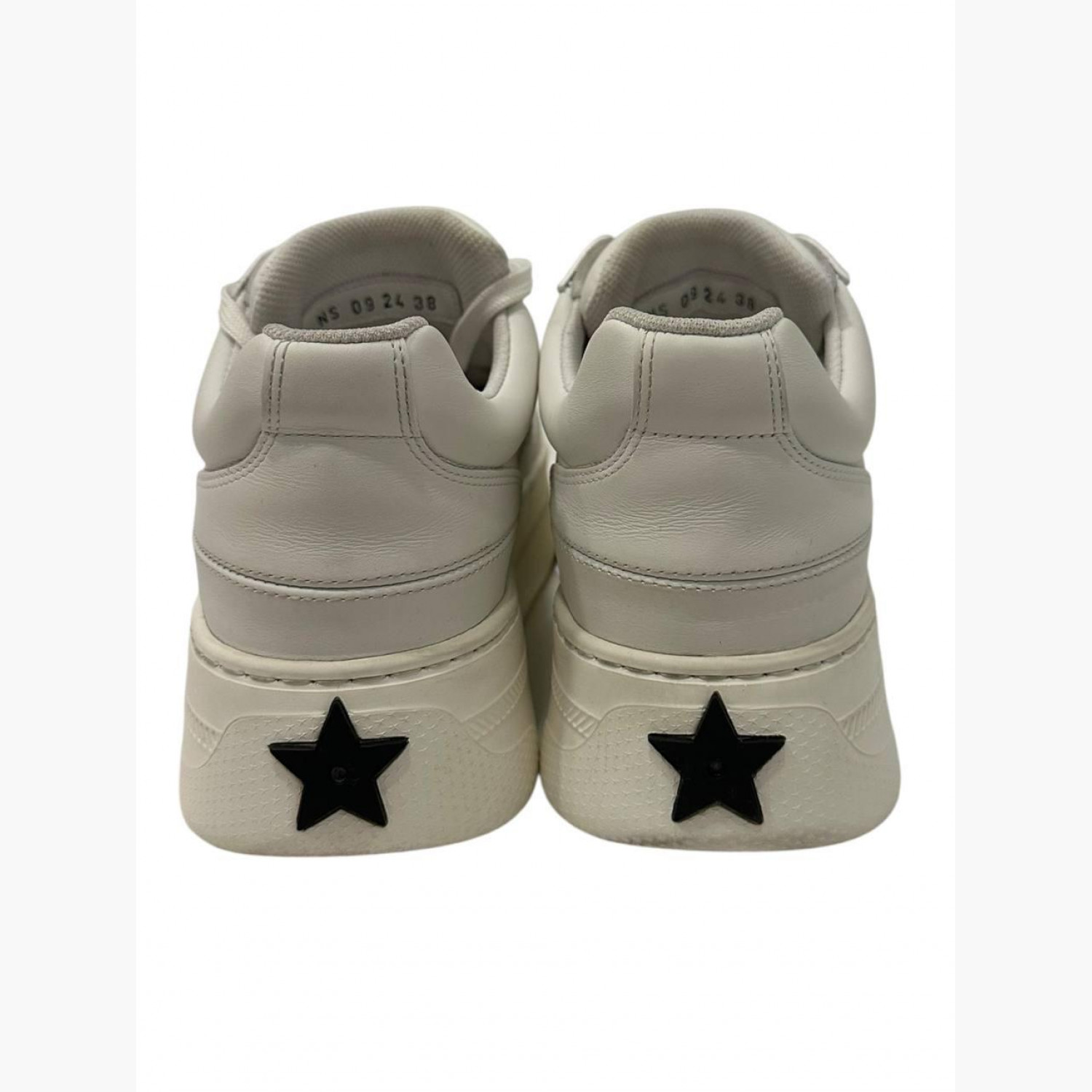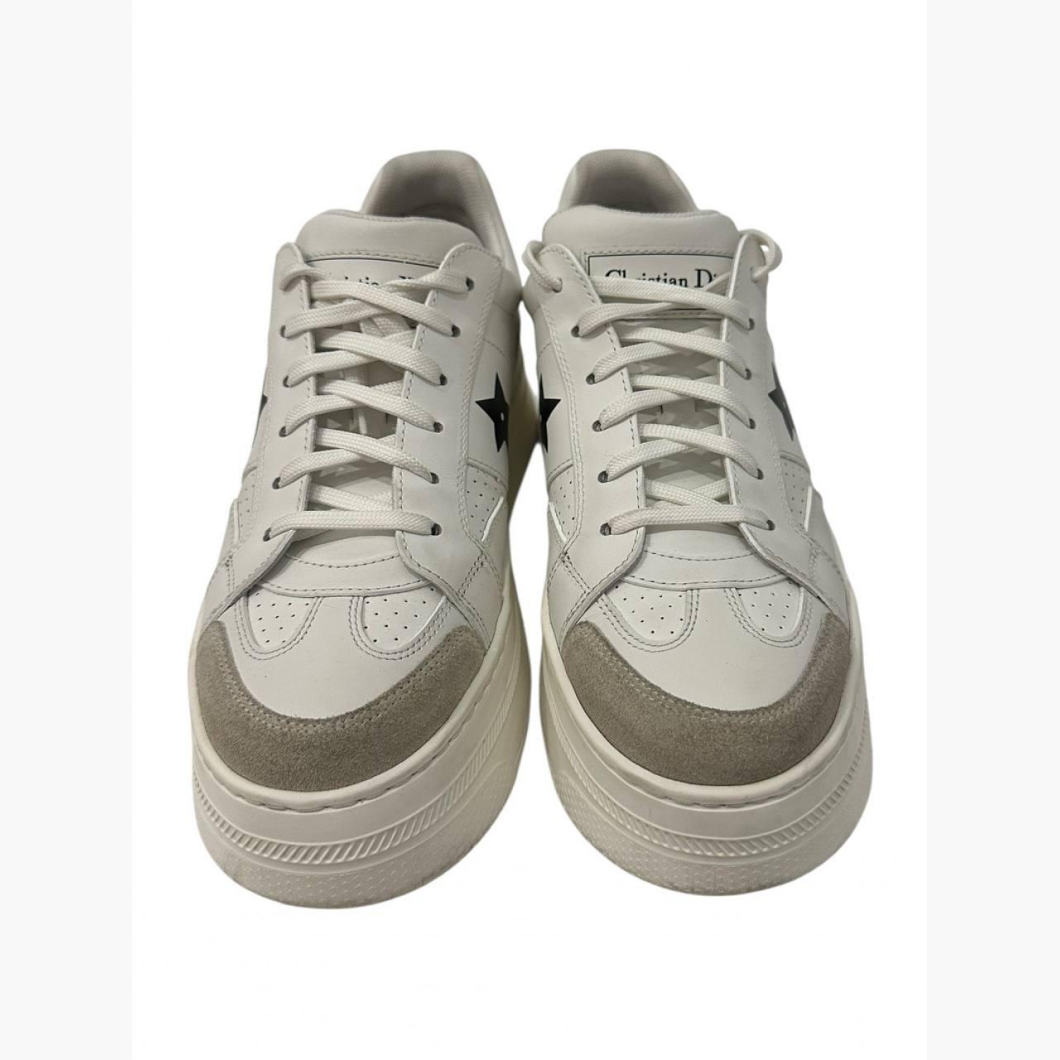 White leather sneakers with suede inserts. In good condition, with wear marks and minor scuffs.