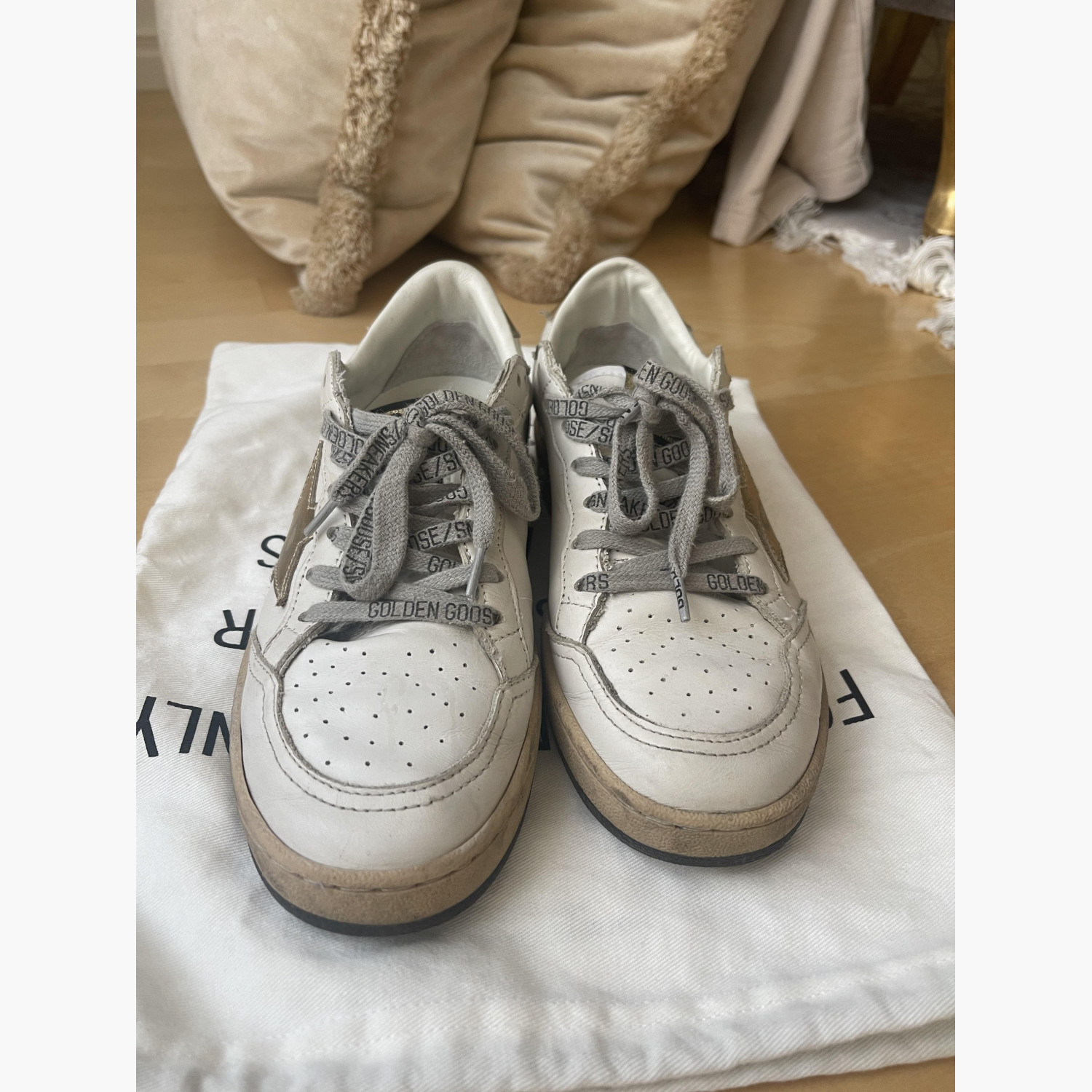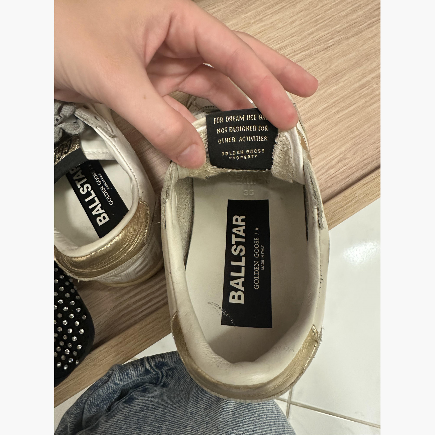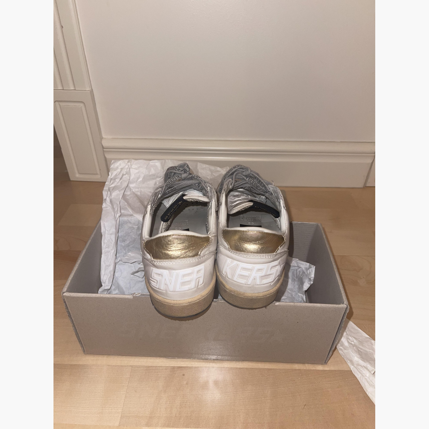 Sneakers in almost new condition. Purchased at TSUM. Size 36, may fit size 37 if foot is narrow (I wear 37). Gold heel and star detail.