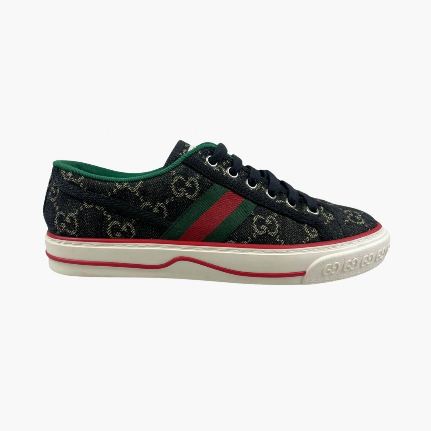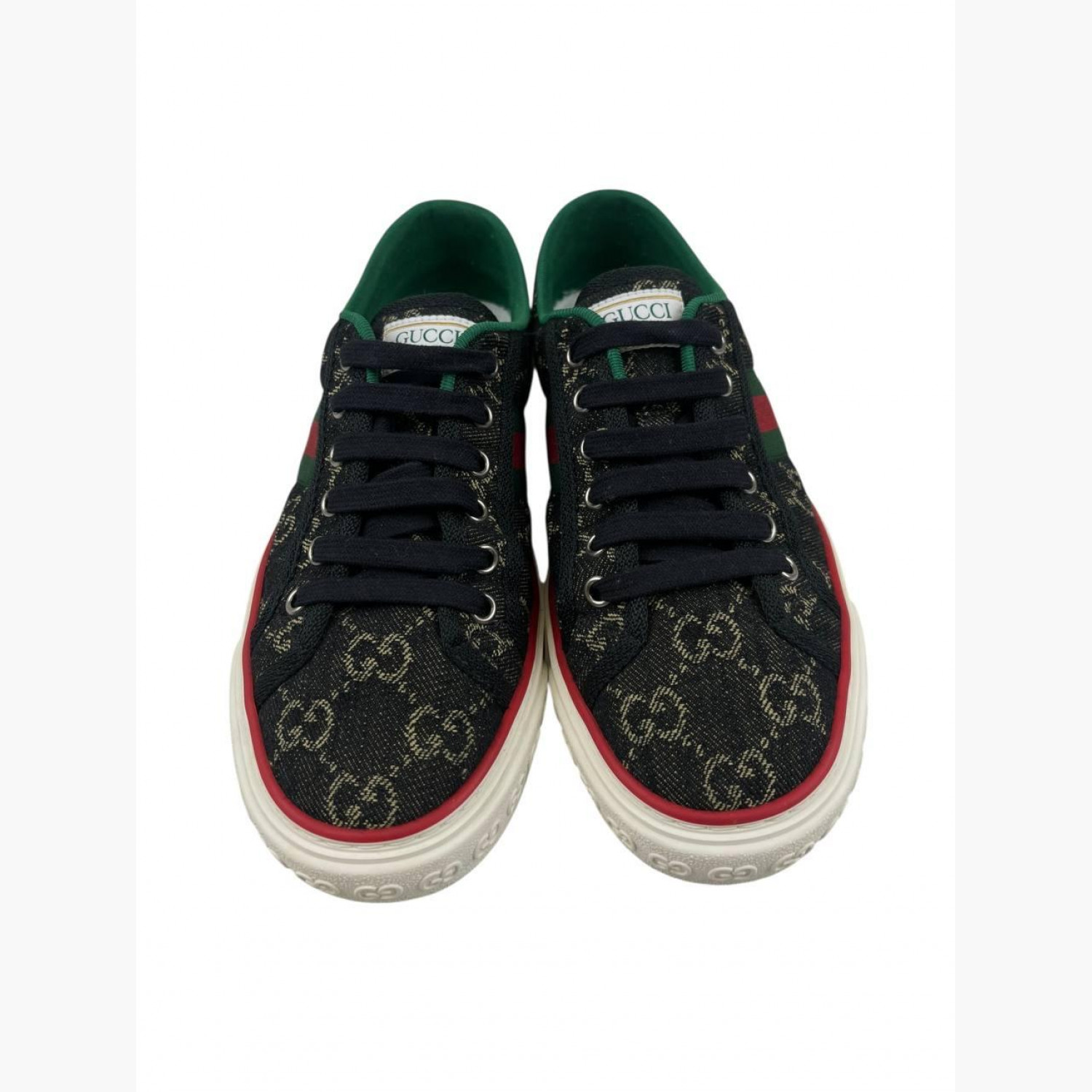 Black textile sneakers in a monogram pattern. Comes with extra black laces. In excellent condition, with wear marks.