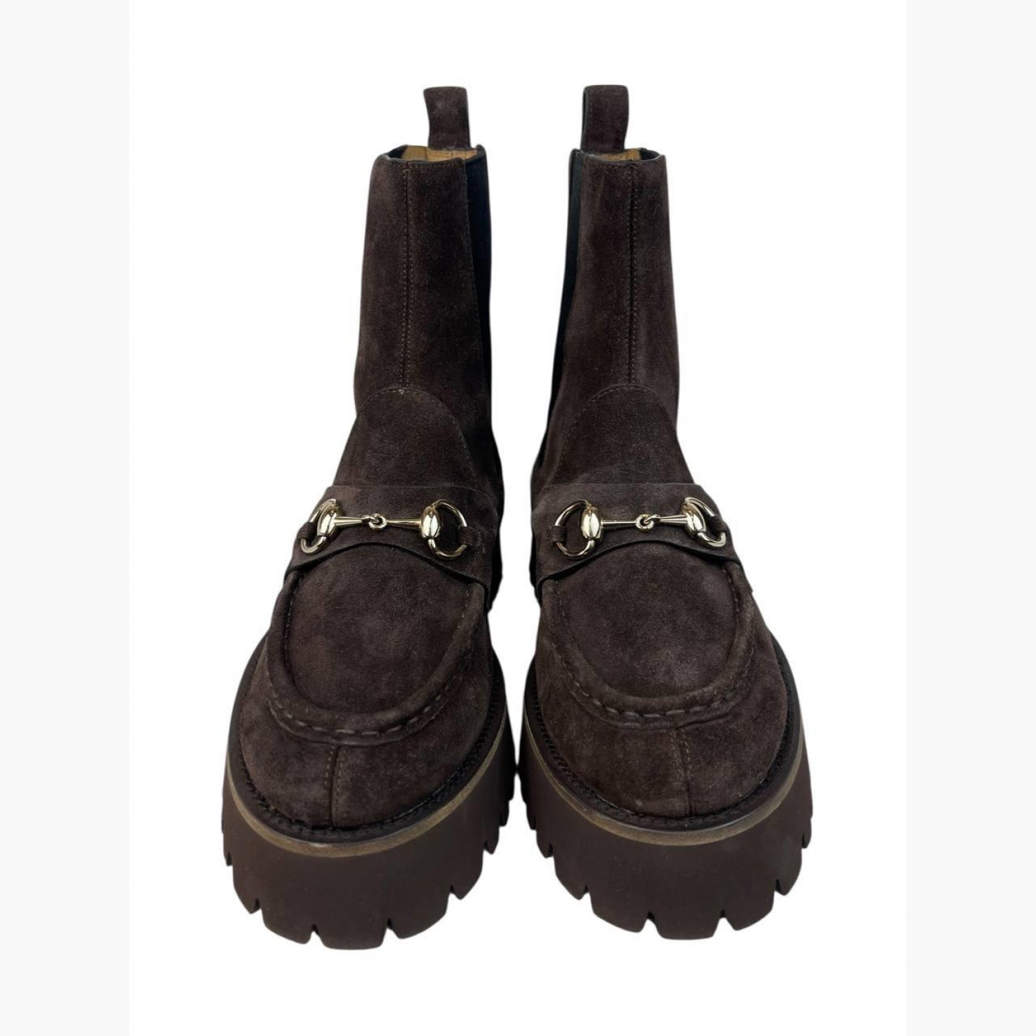 Brown suede boots with metal hardware. Absolutely new.