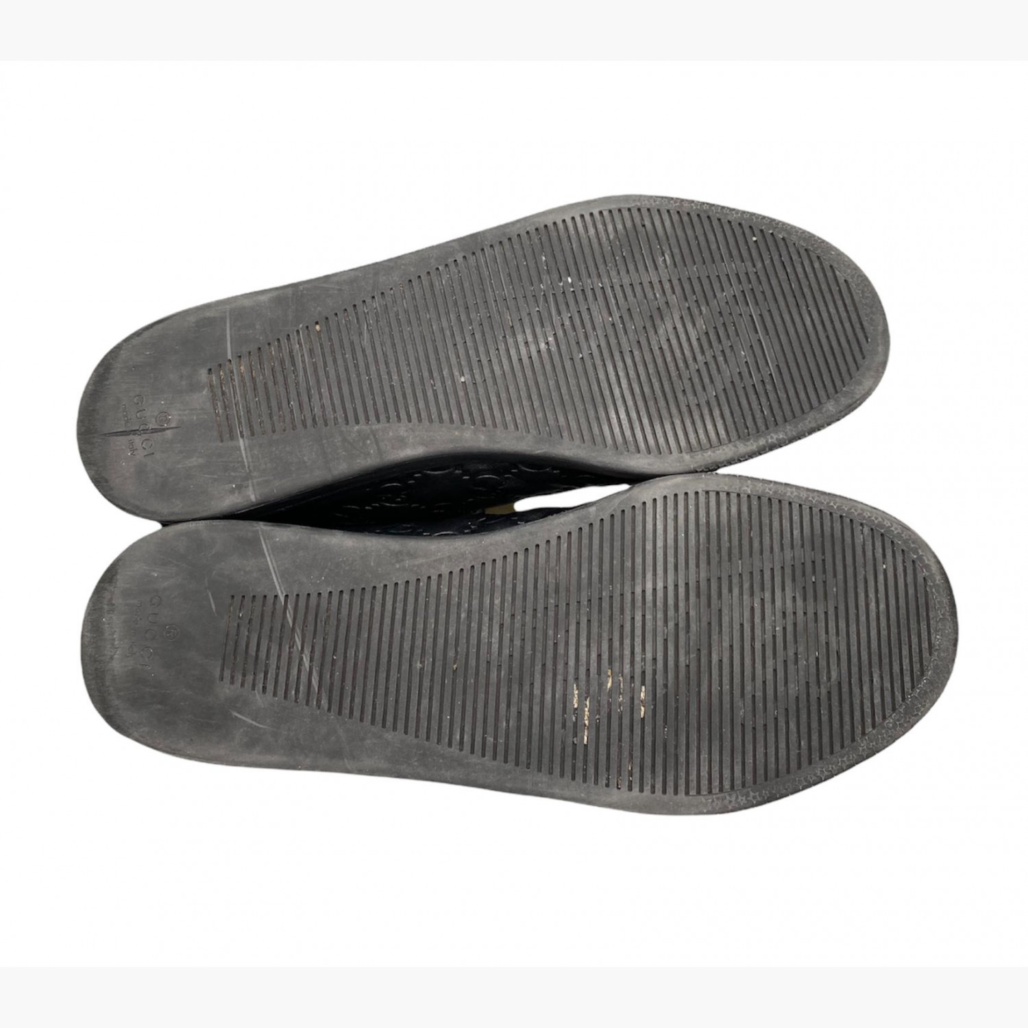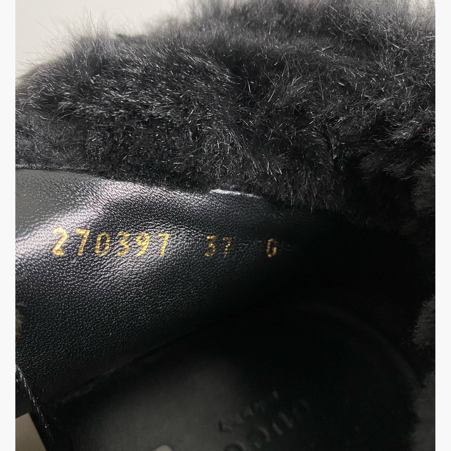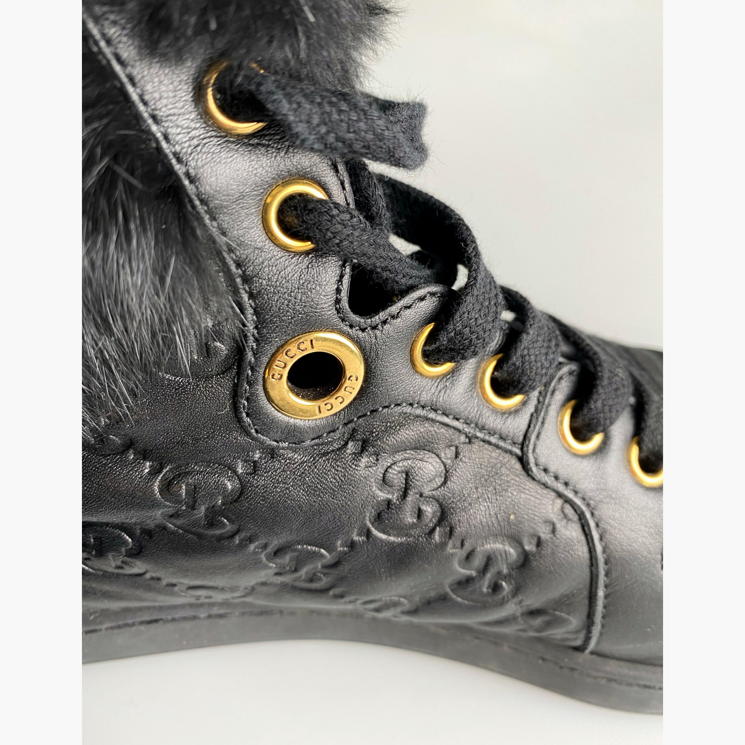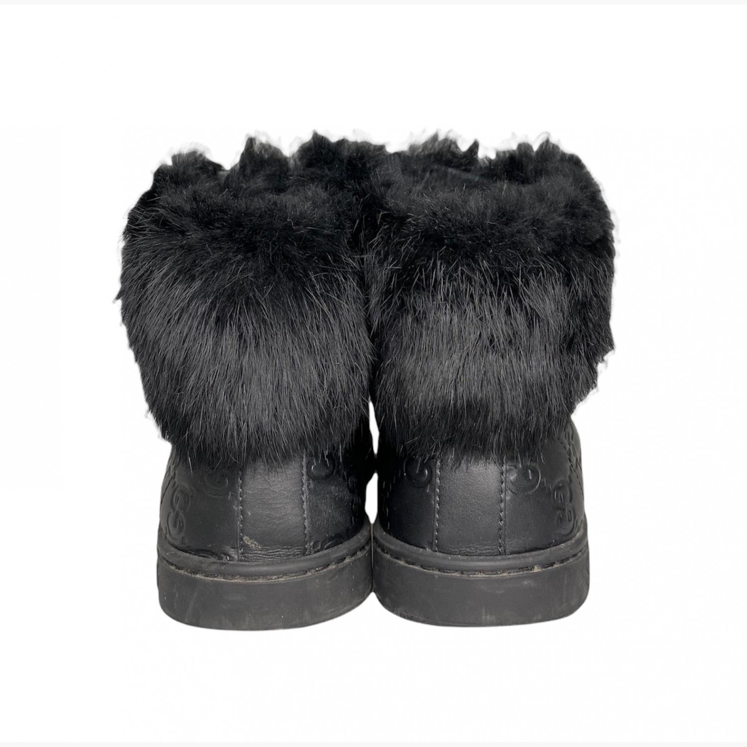 Winter leather sneakers in black color. The brand's signature print is stamped on the leather. Gold-colored hardware. Lined with fur. In very good condition, slight wear marks on the sole.
