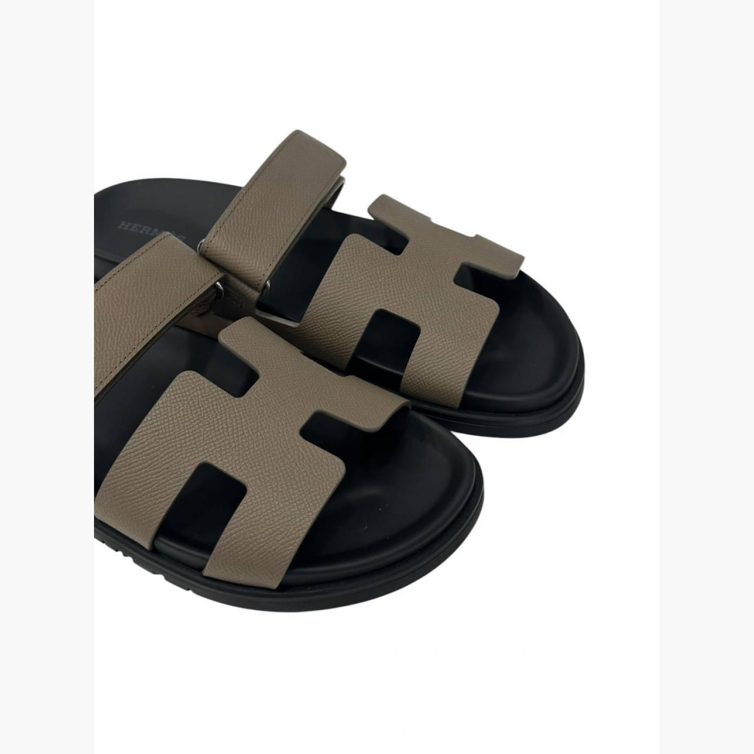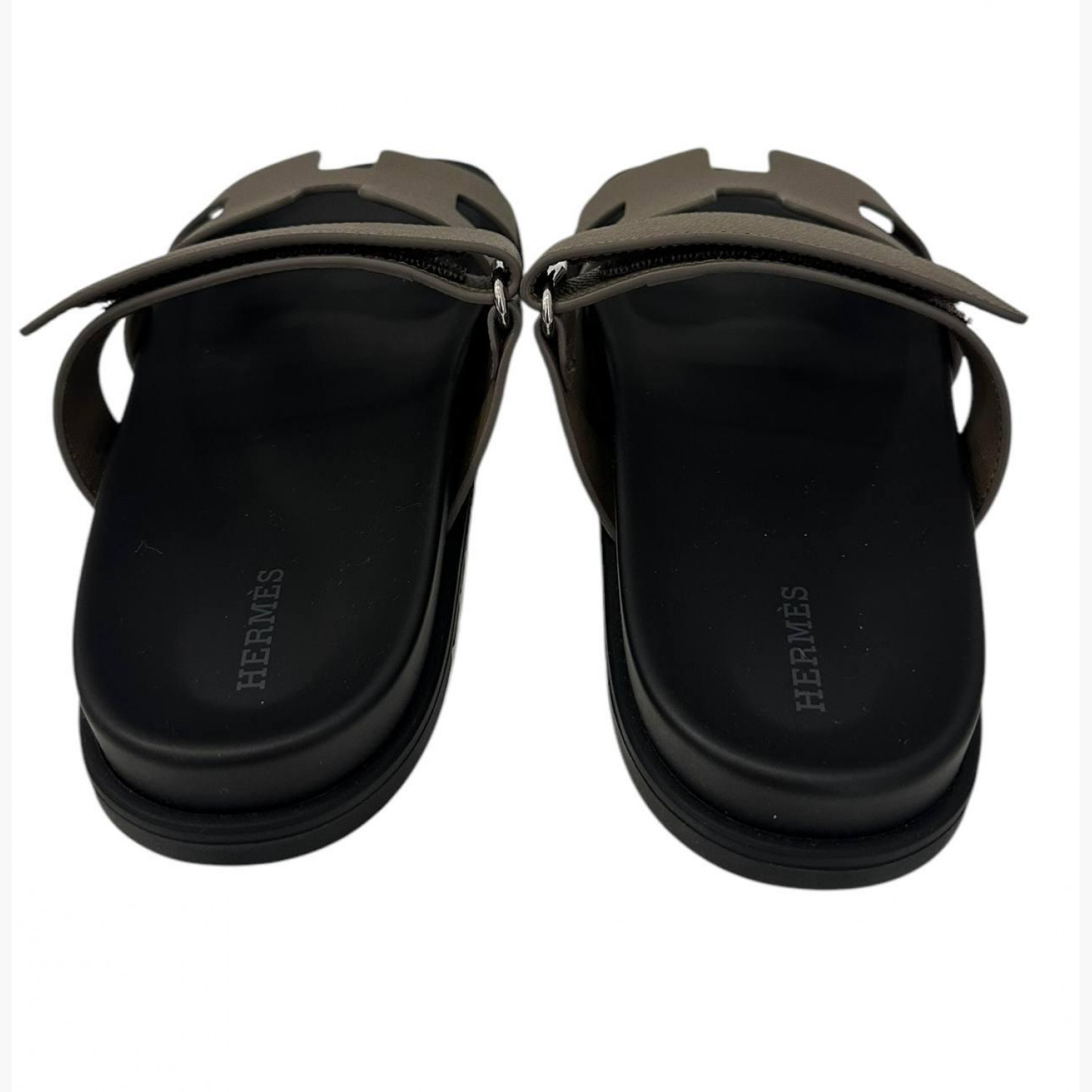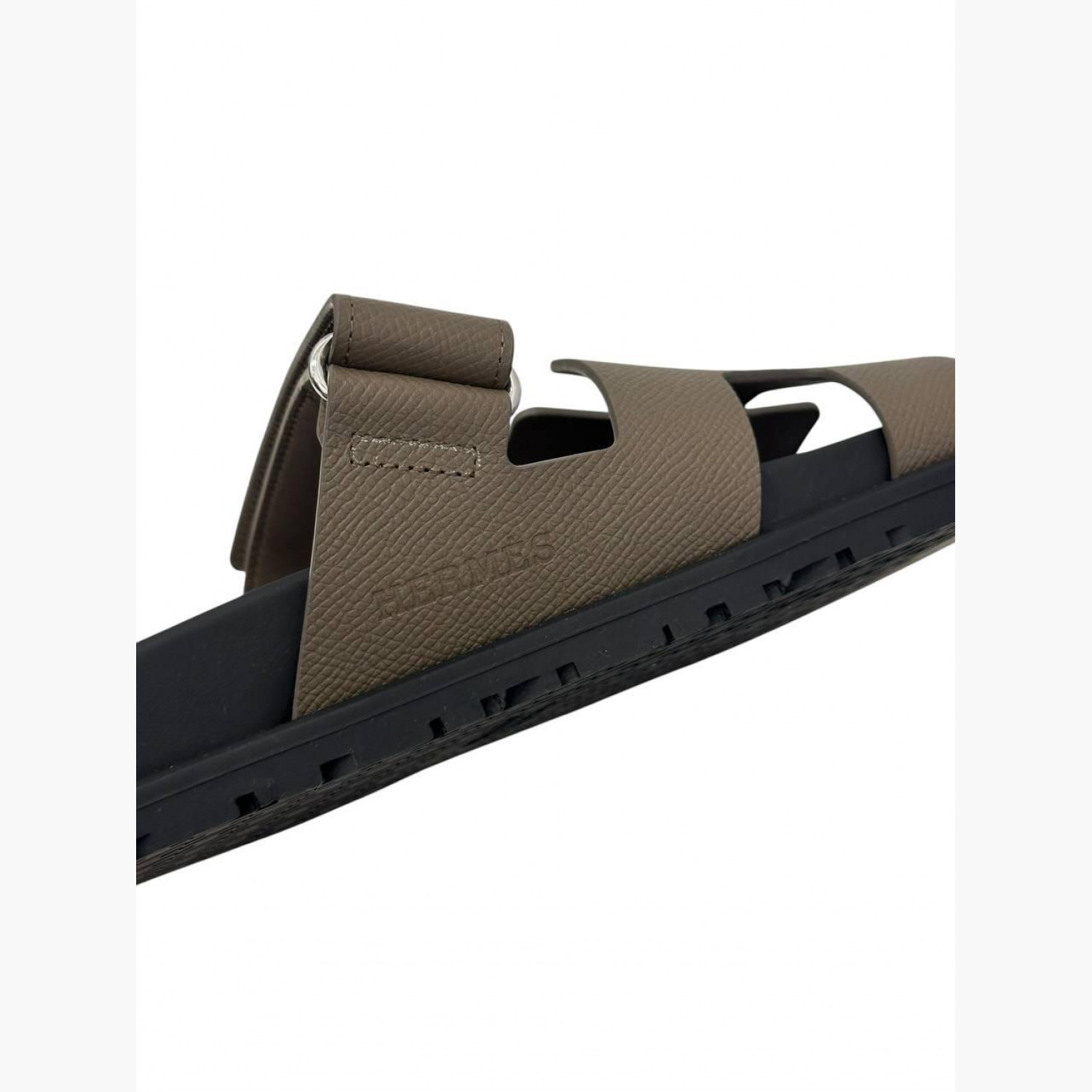 Gray leather flip-flops with velcro. Absolutely new, no wear marks.