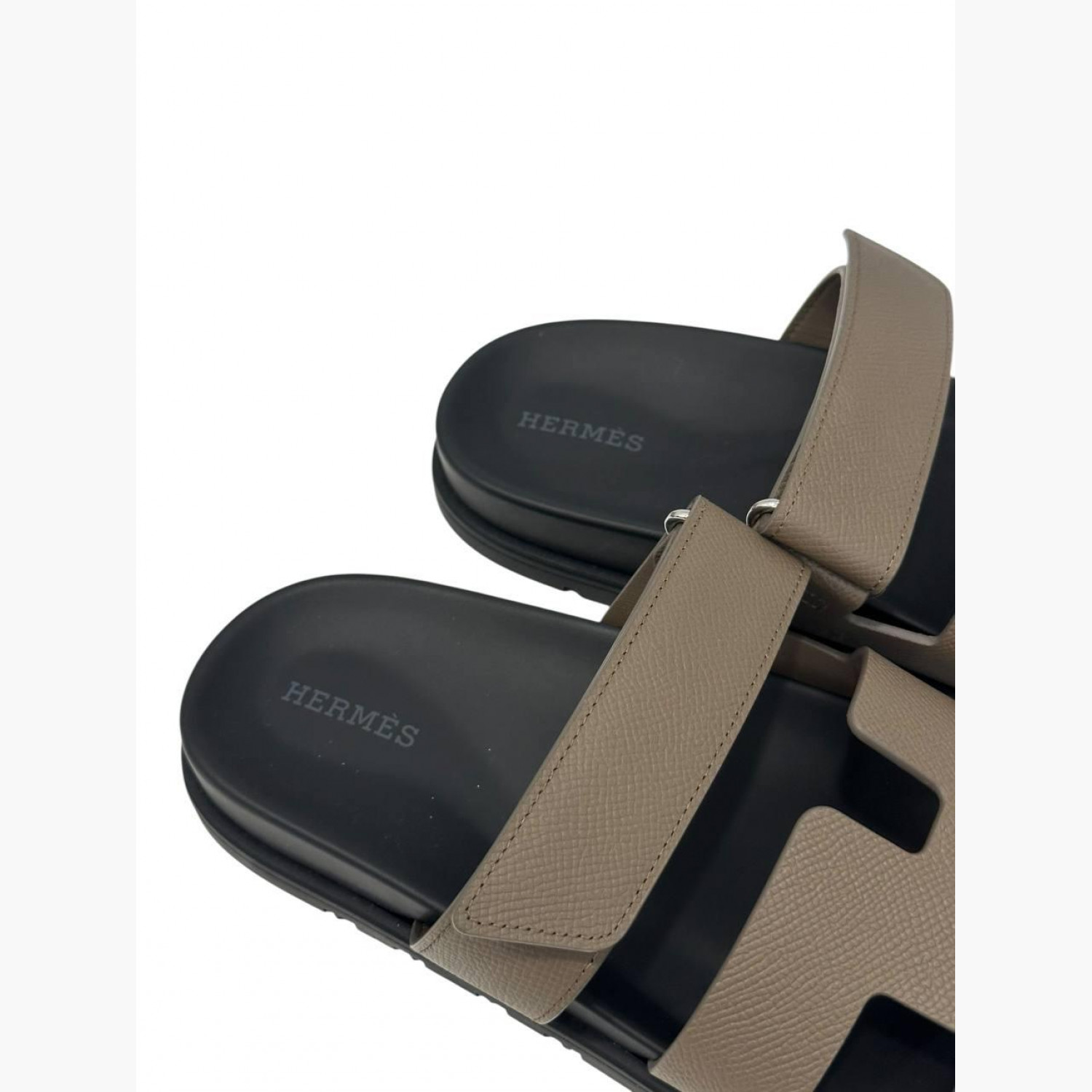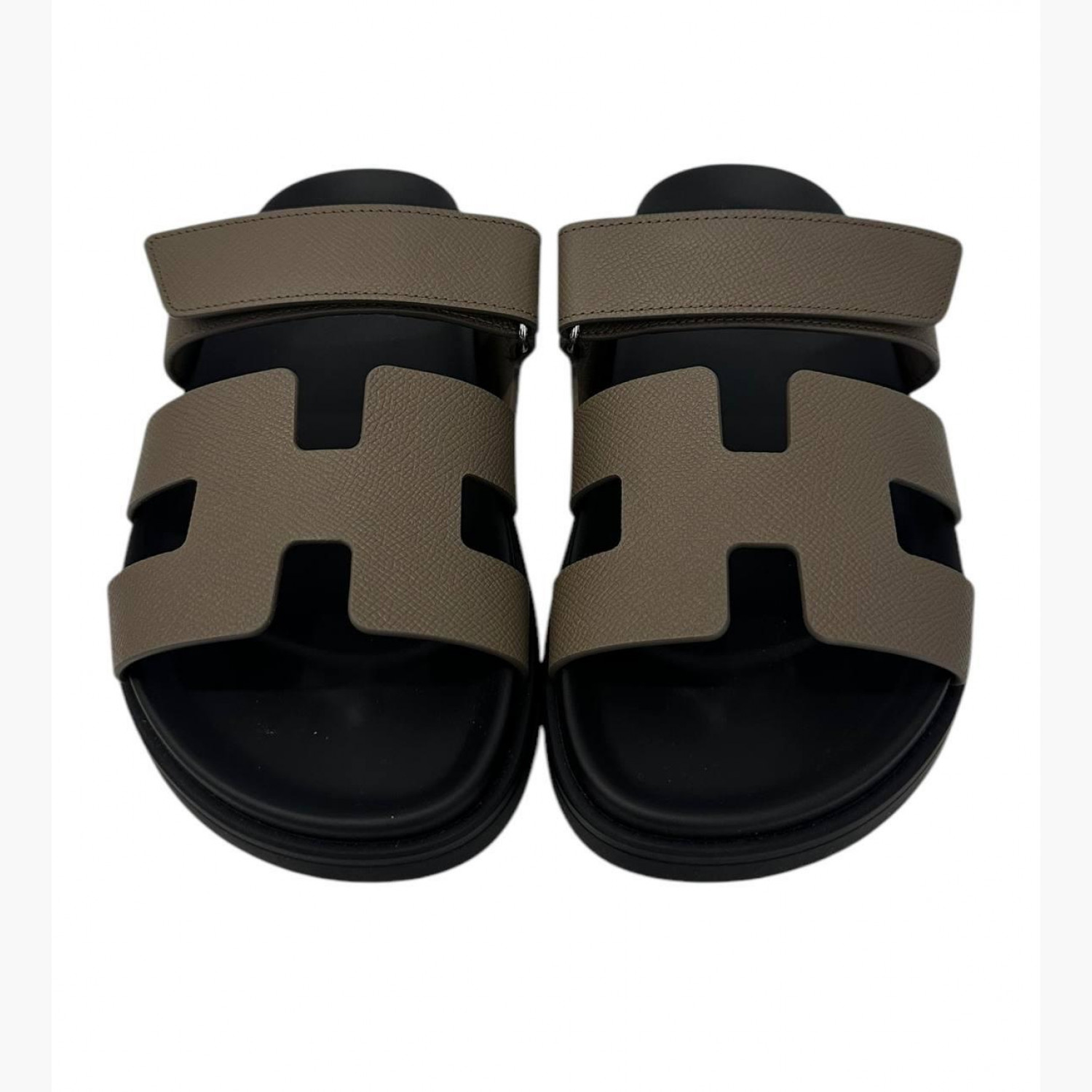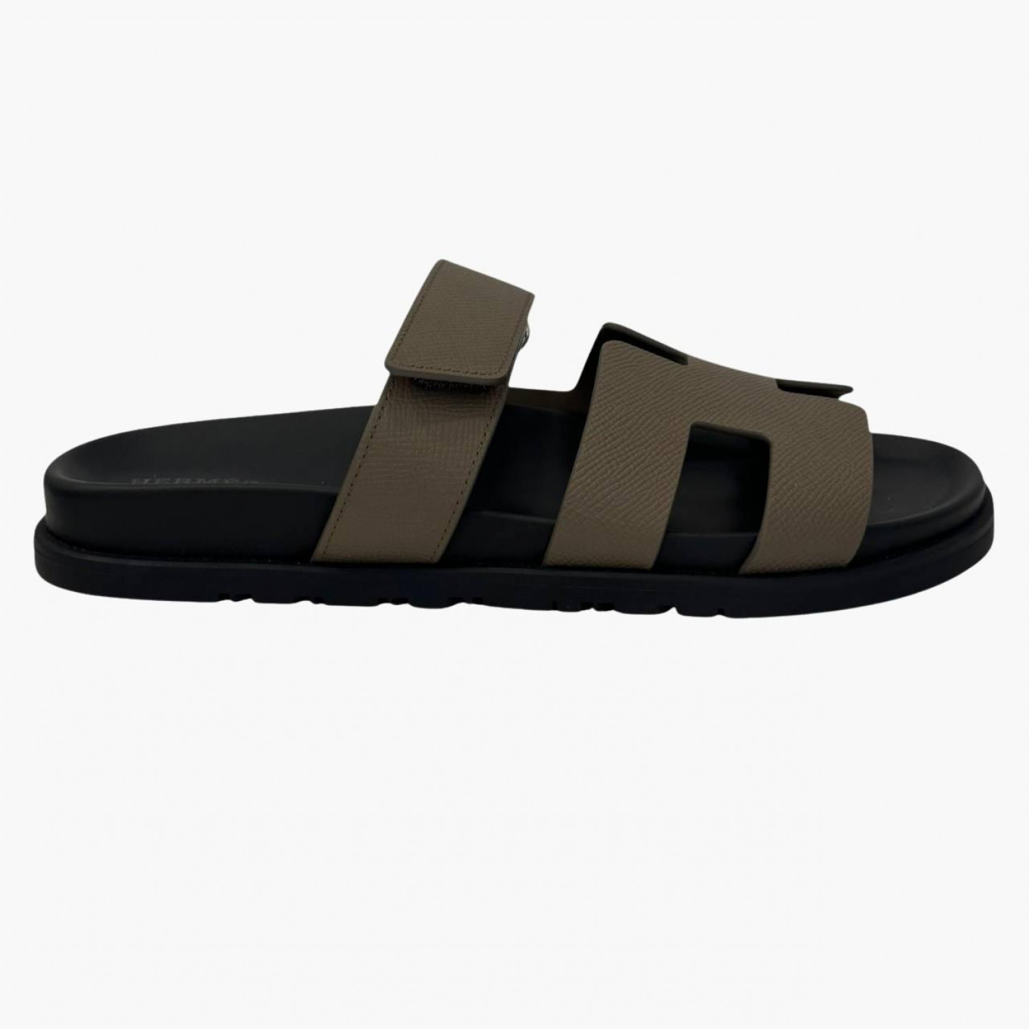 Gray leather flip-flops with velcro. Absolutely new, no wear marks.