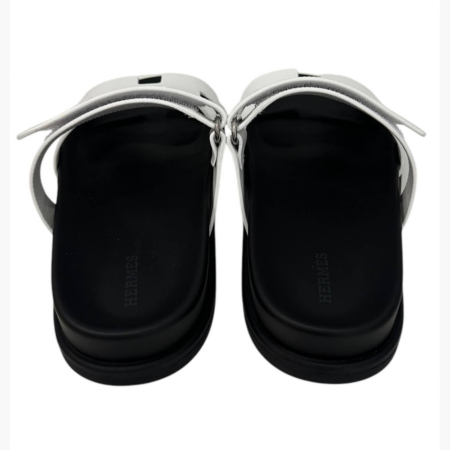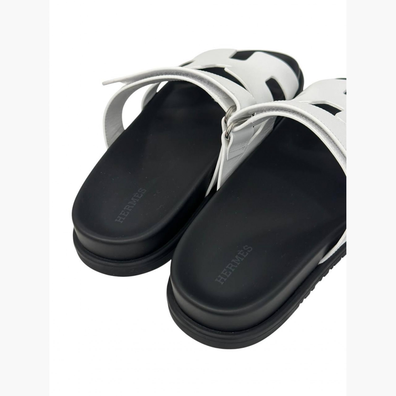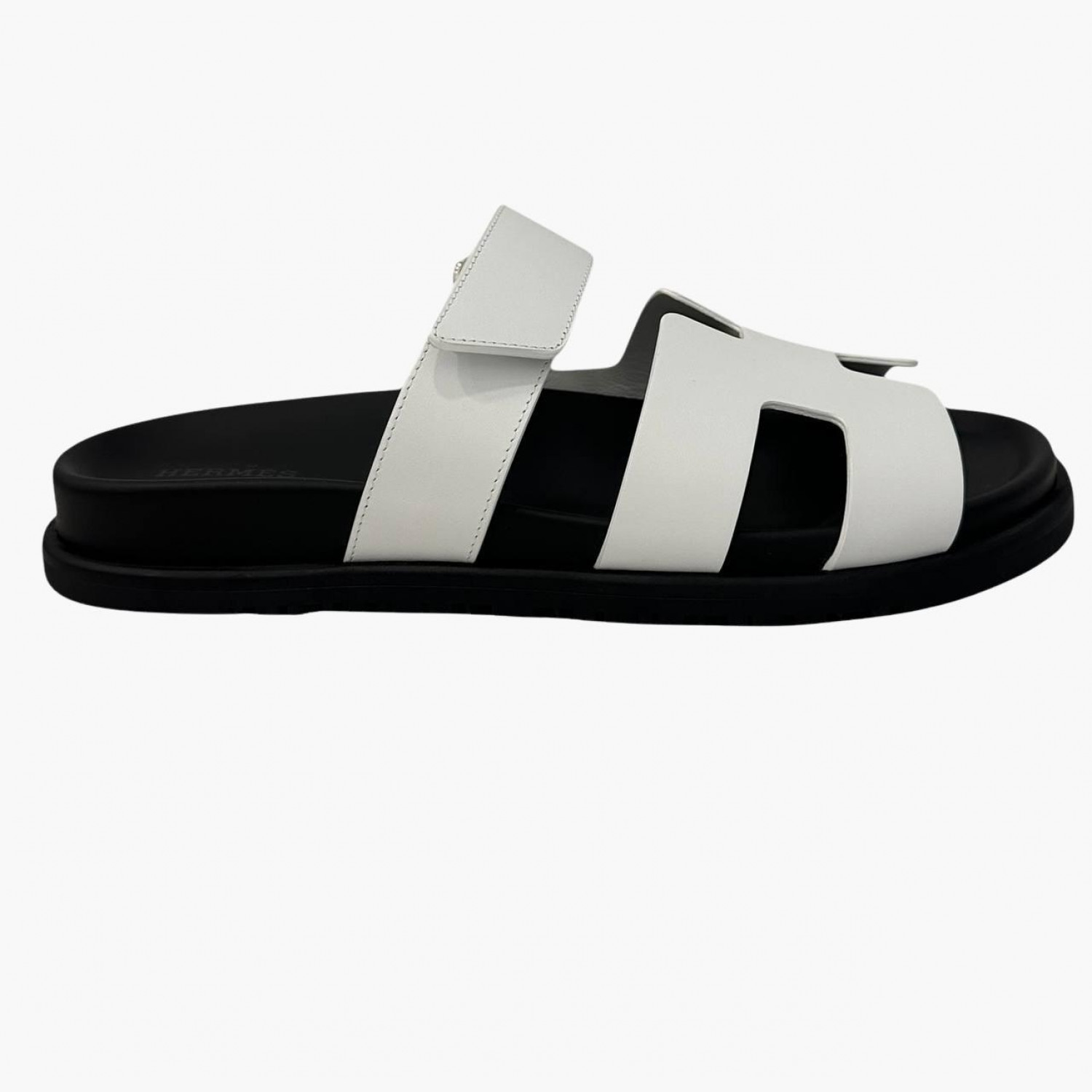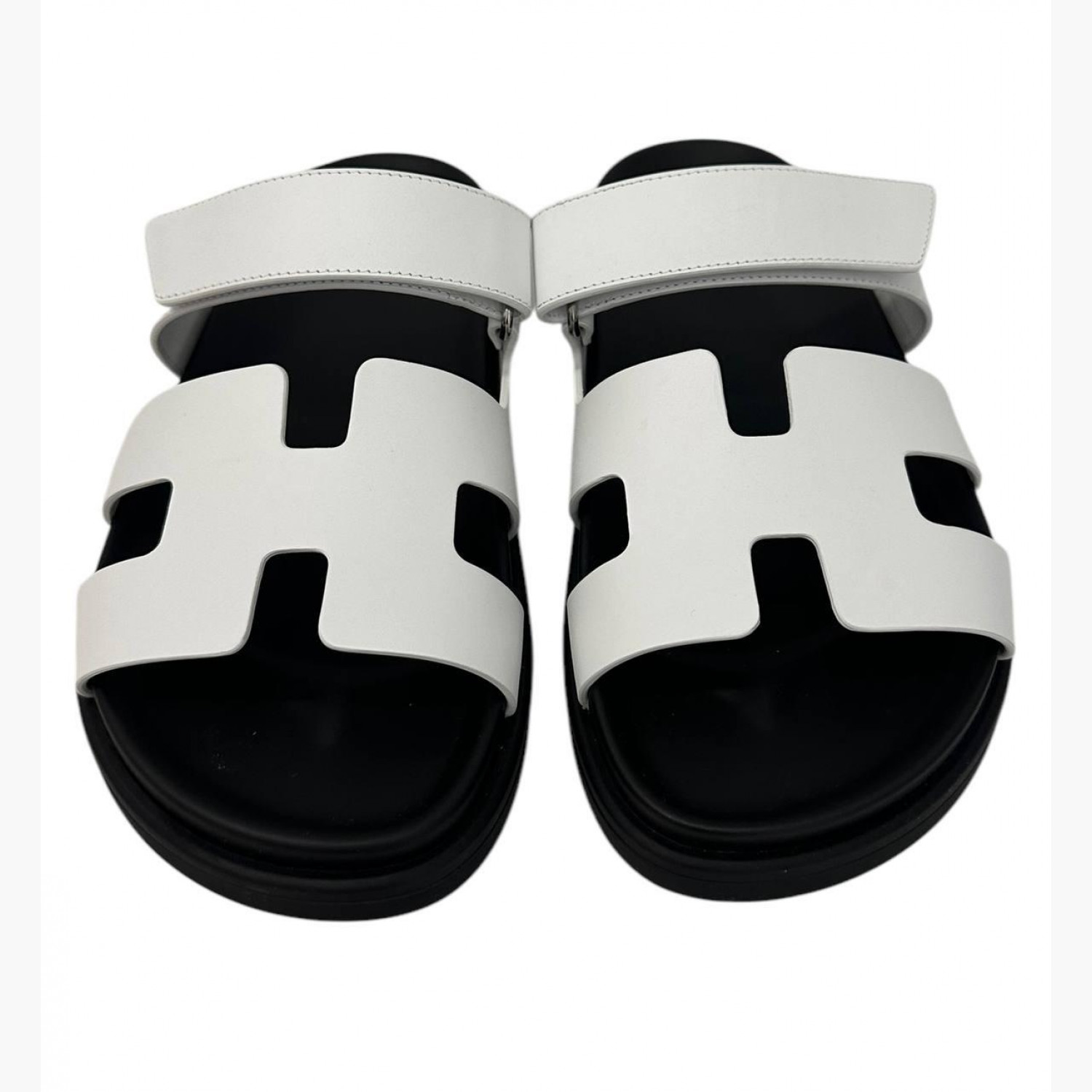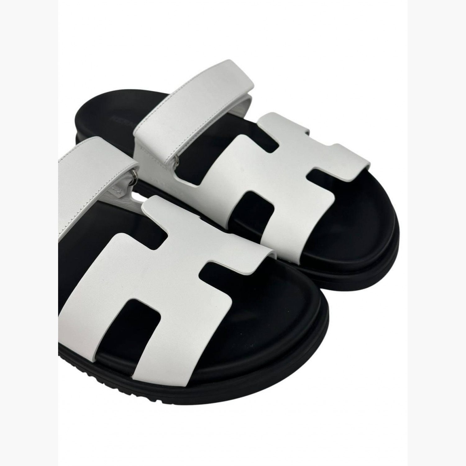 White leather flip-flops with velcro. Absolutely new, no wear marks.