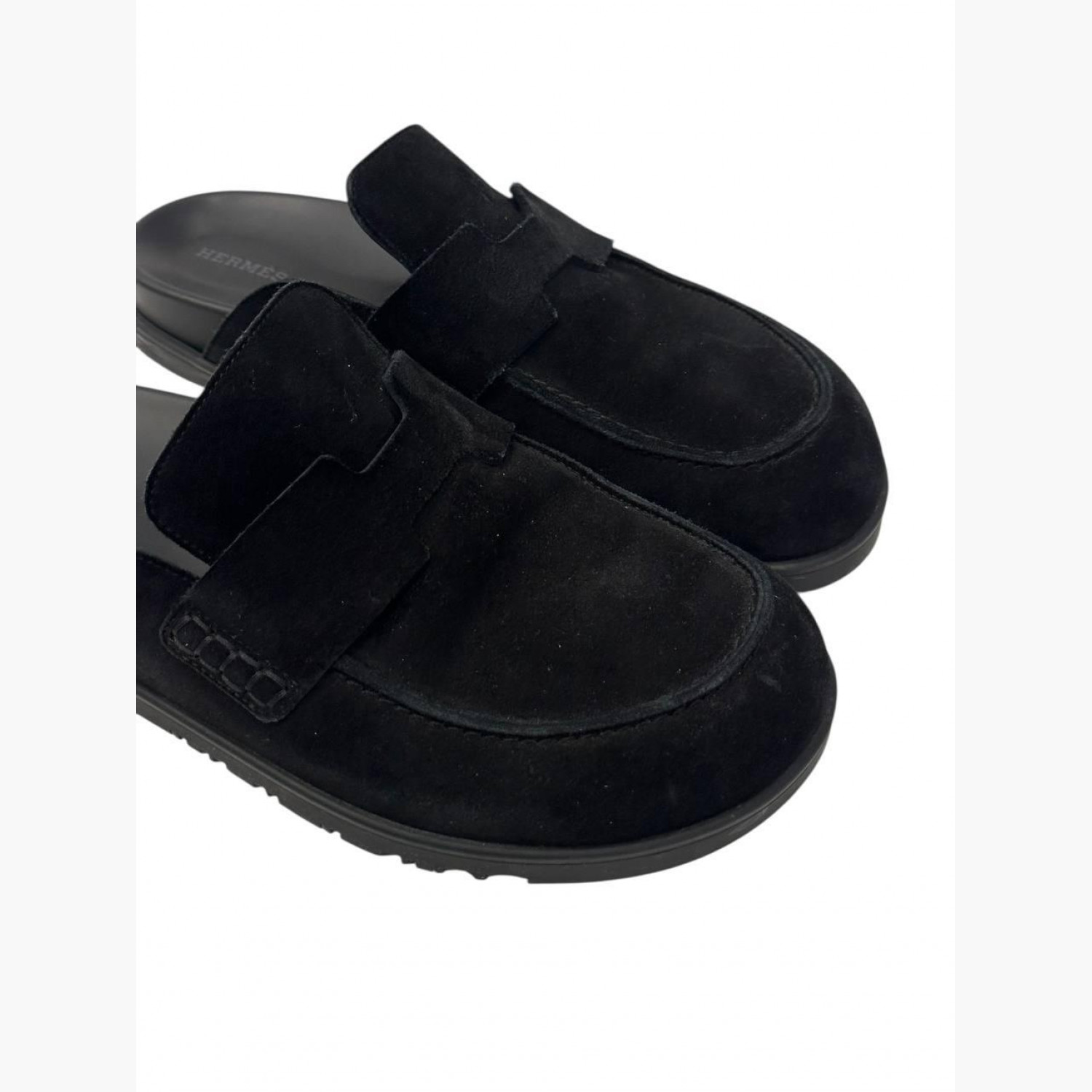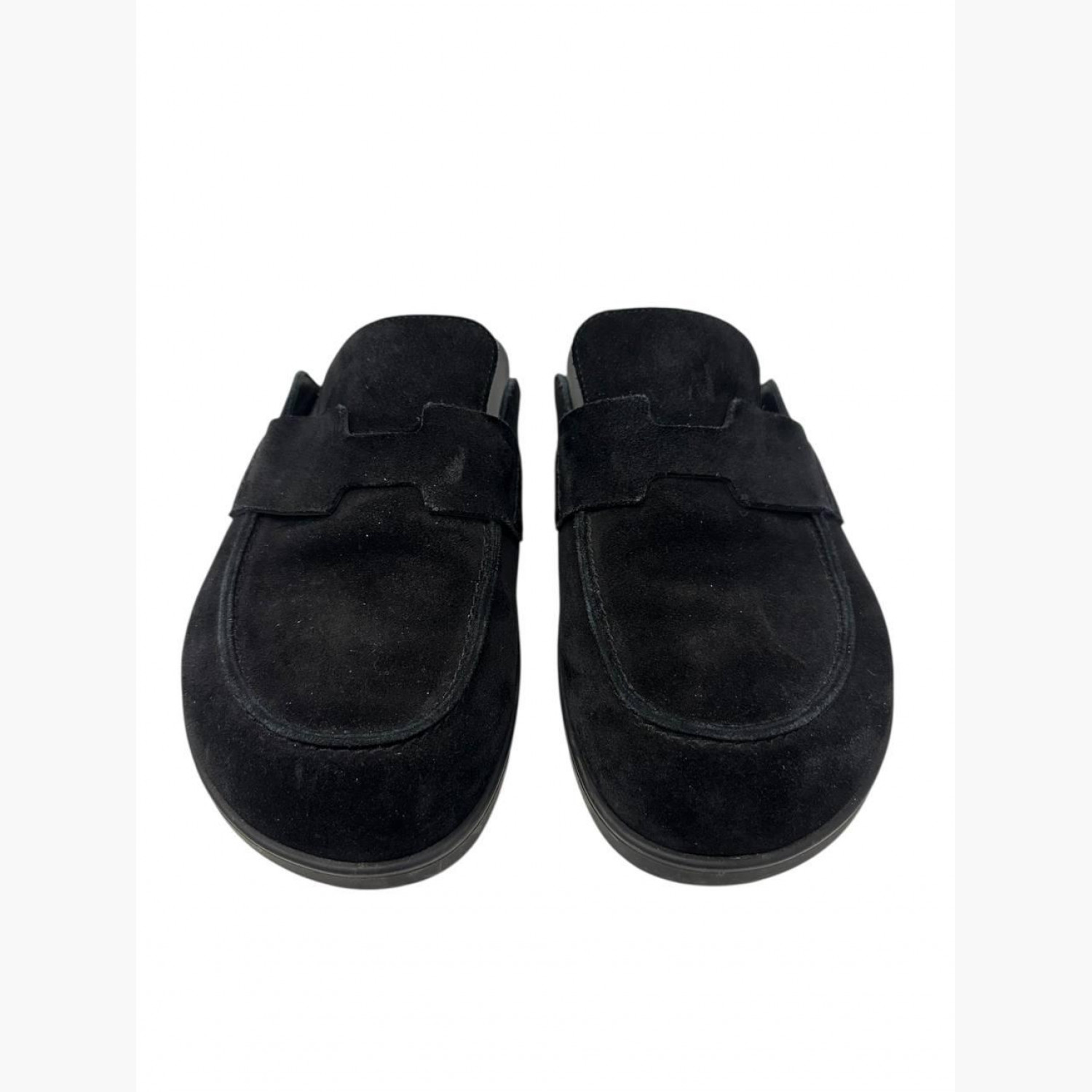 Black suede mules. In excellent condition with minor scuffs on the sole.
