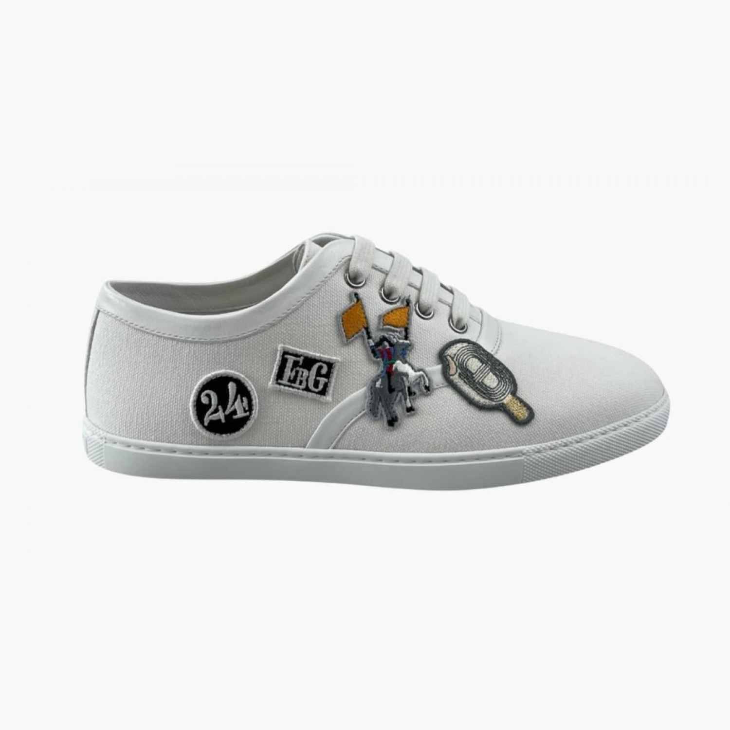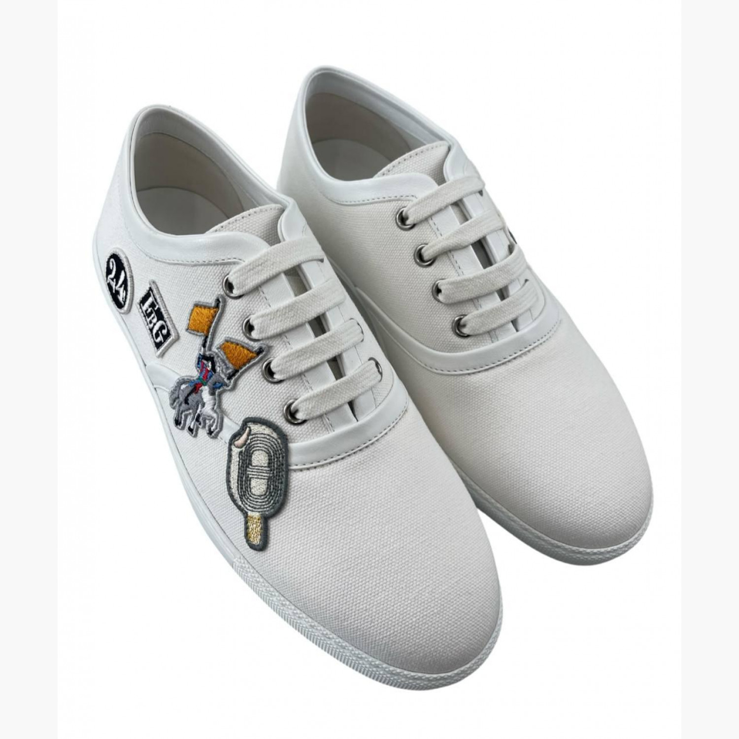 White textile sneakers. In excellent condition with minor wear marks. Laces included.