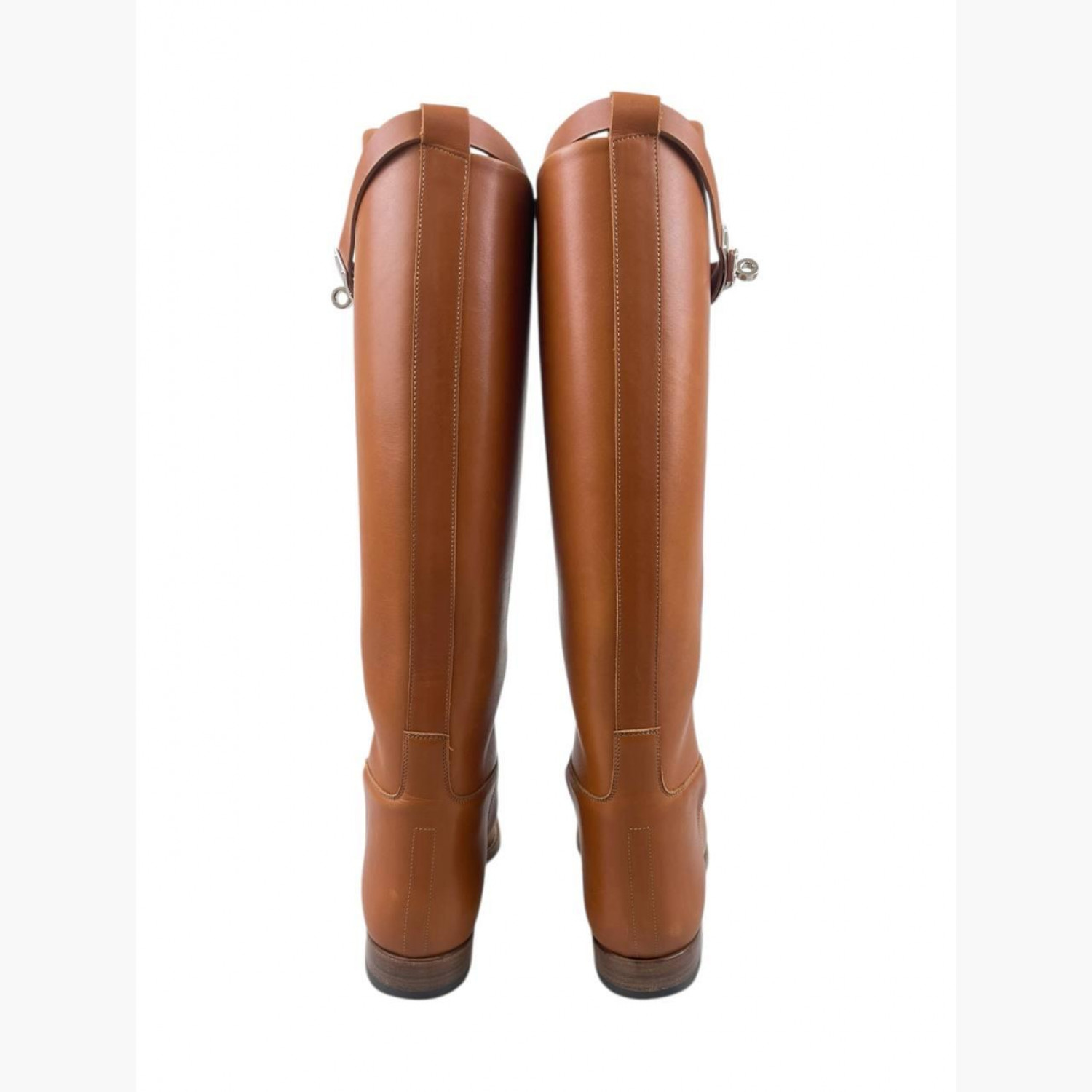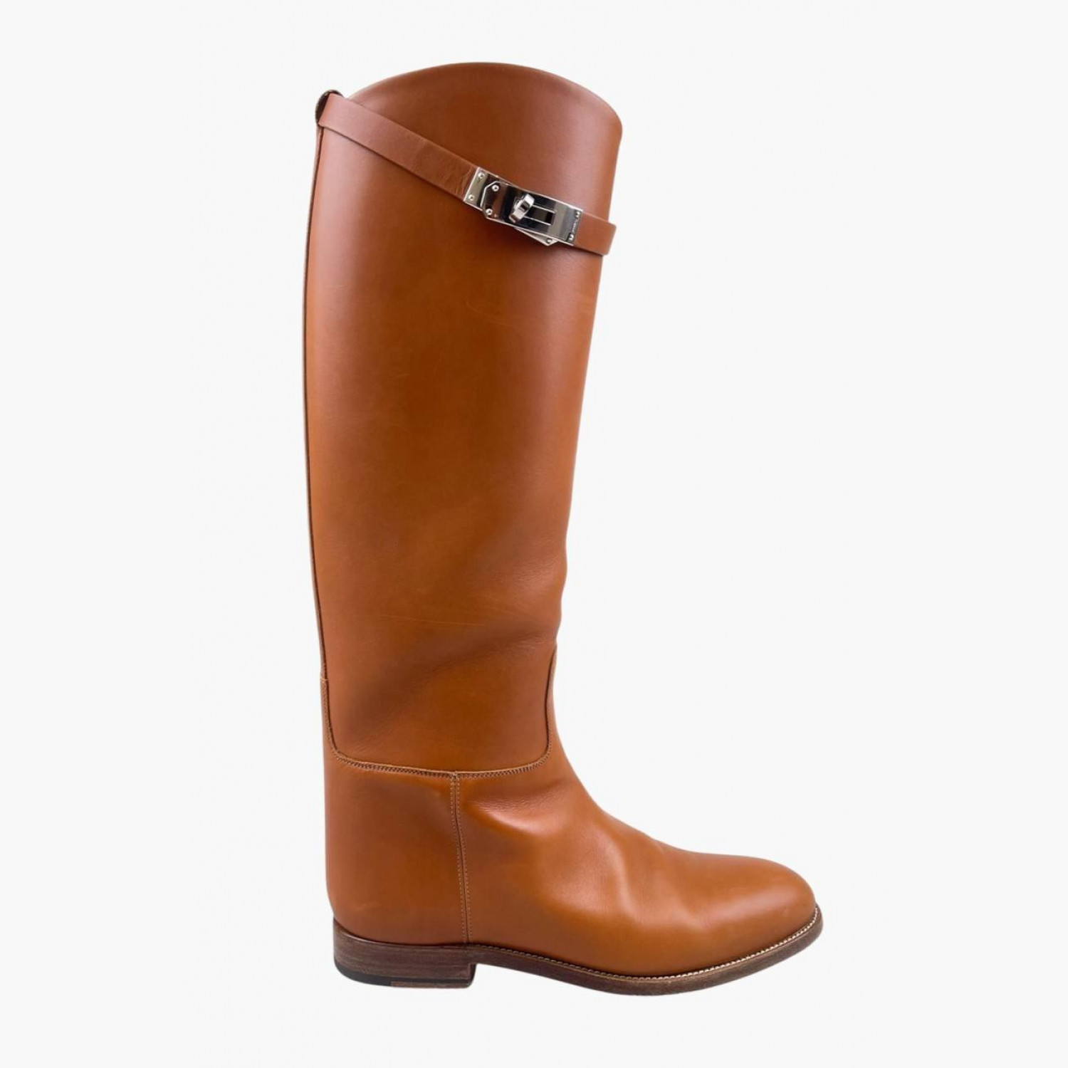 Ginger leather high boots with a strap and Kelly lock. In excellent condition, with wear marks.