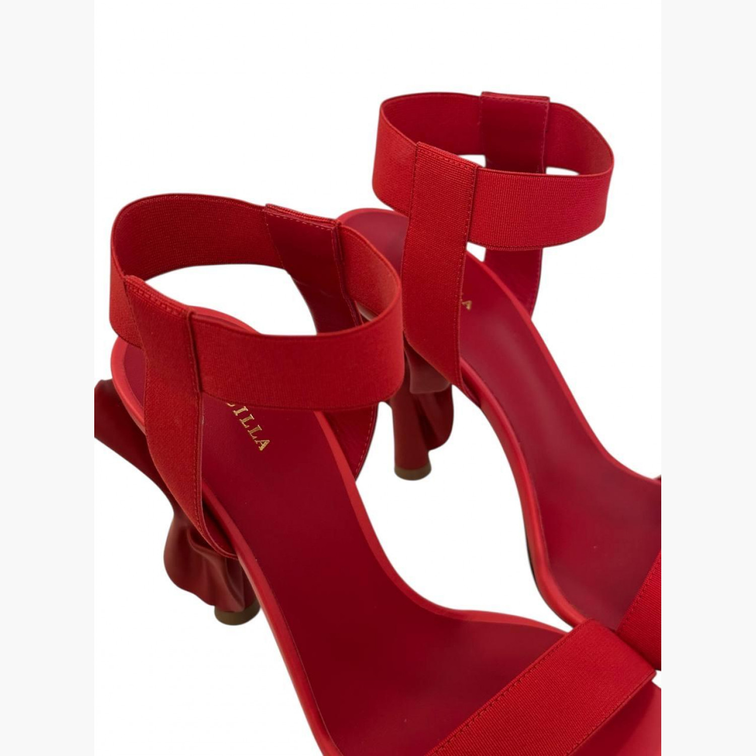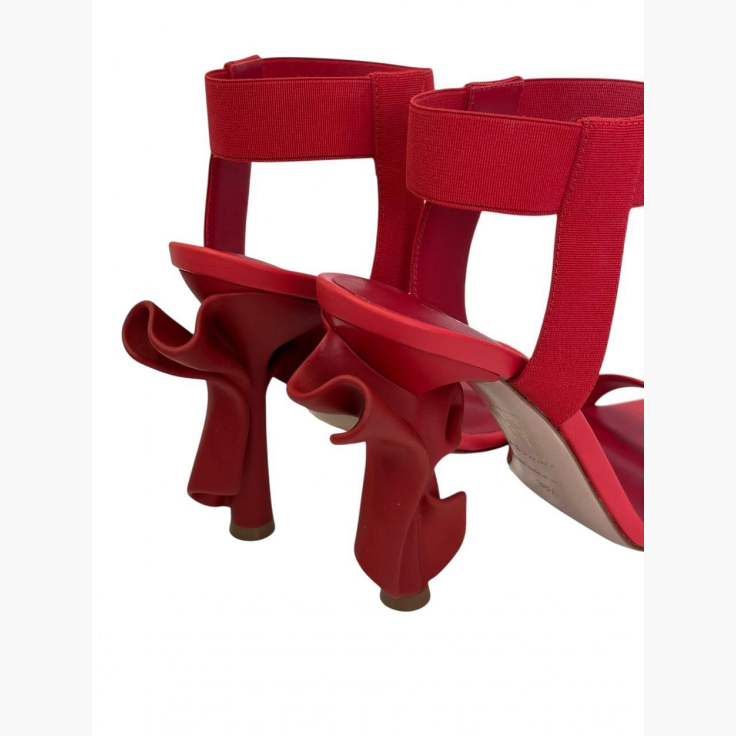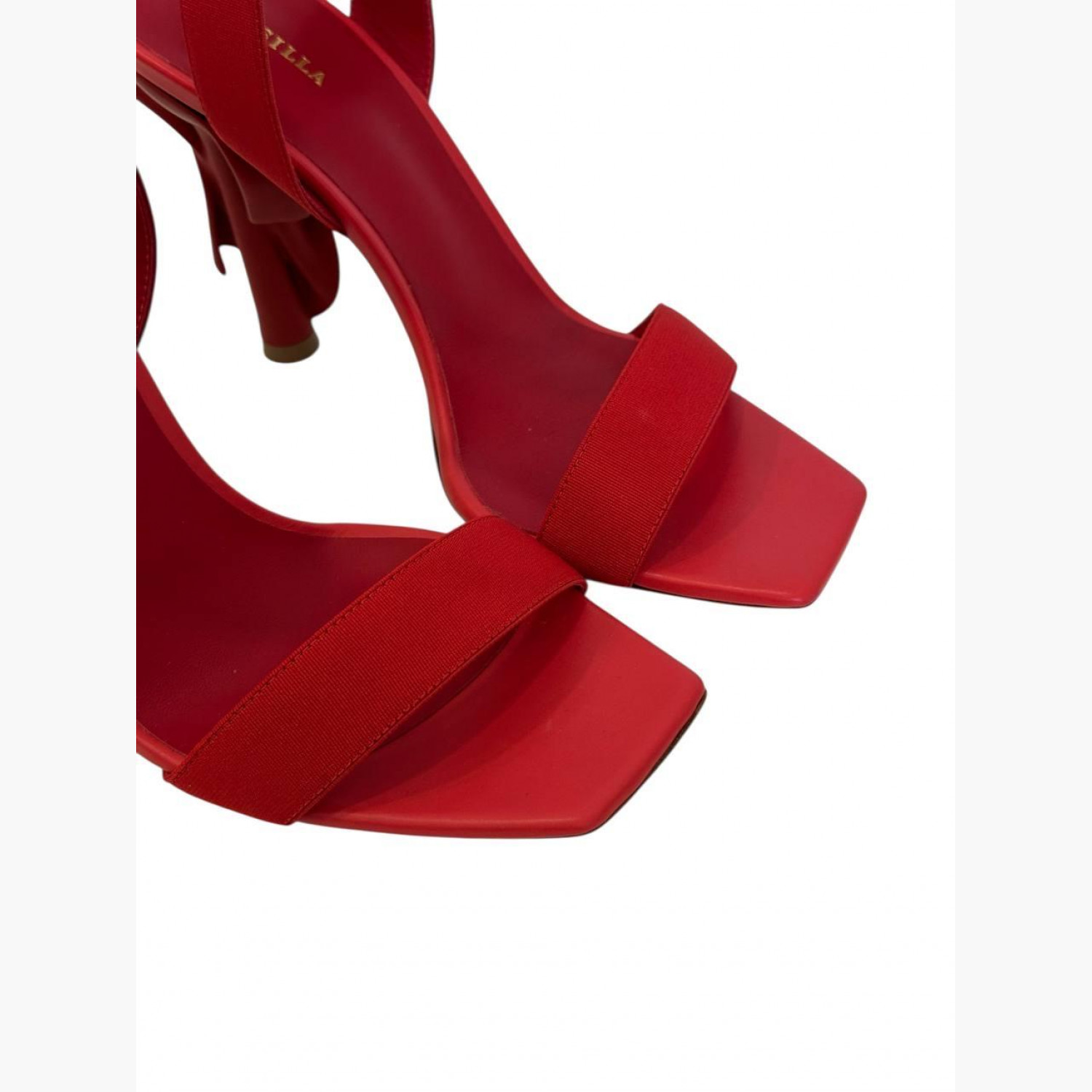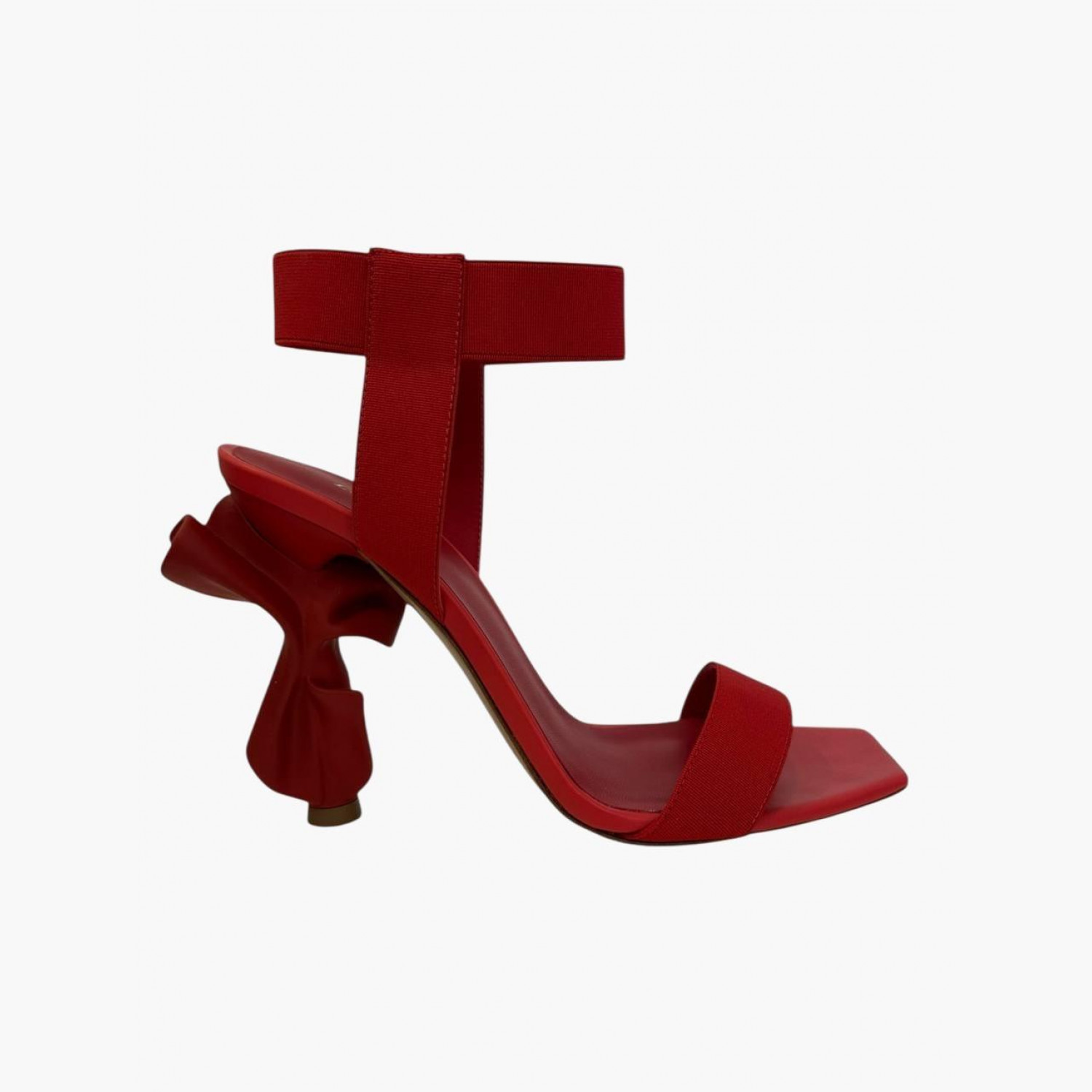 Red leather heeled sandals with sculpted heels. Absolutely new, no wear marks.