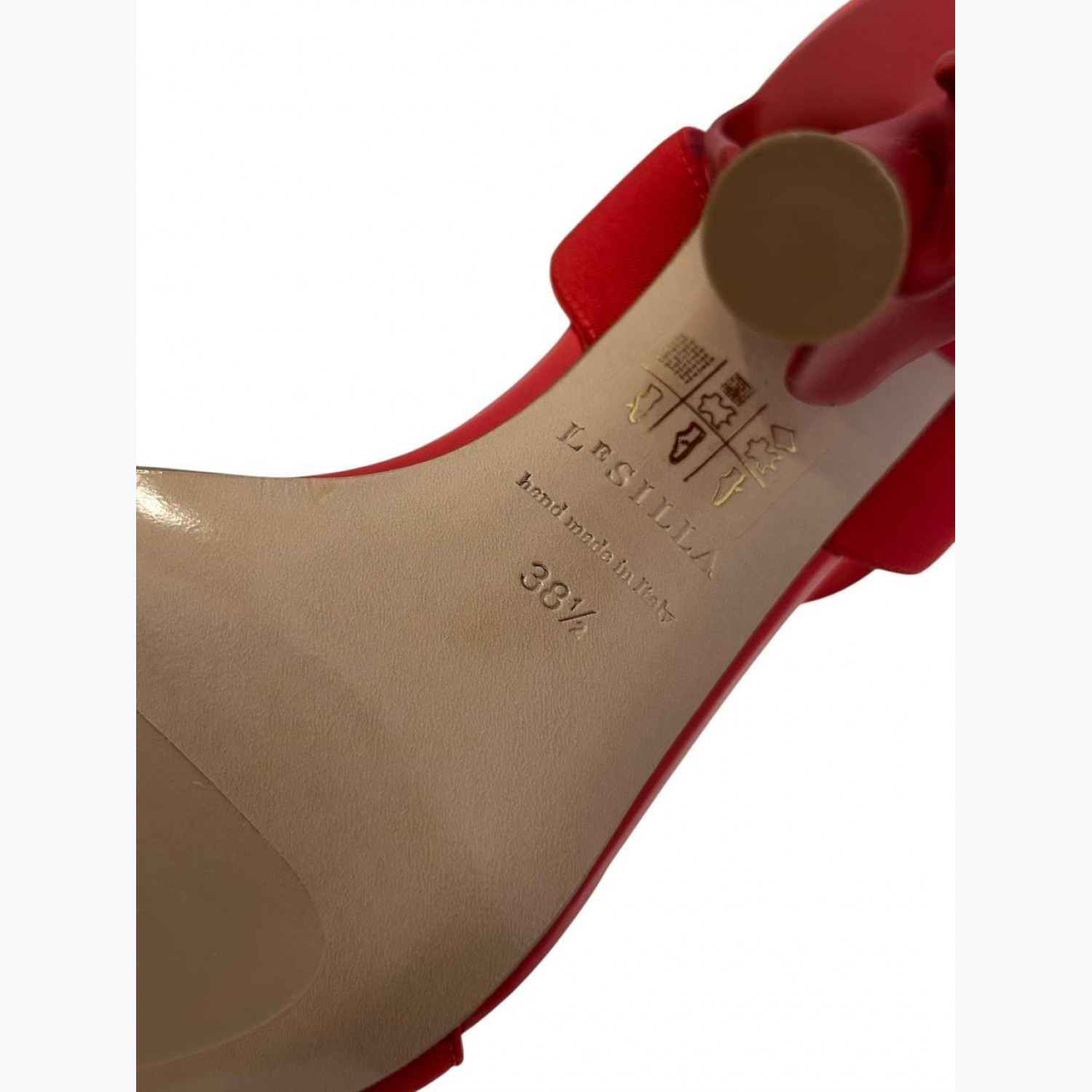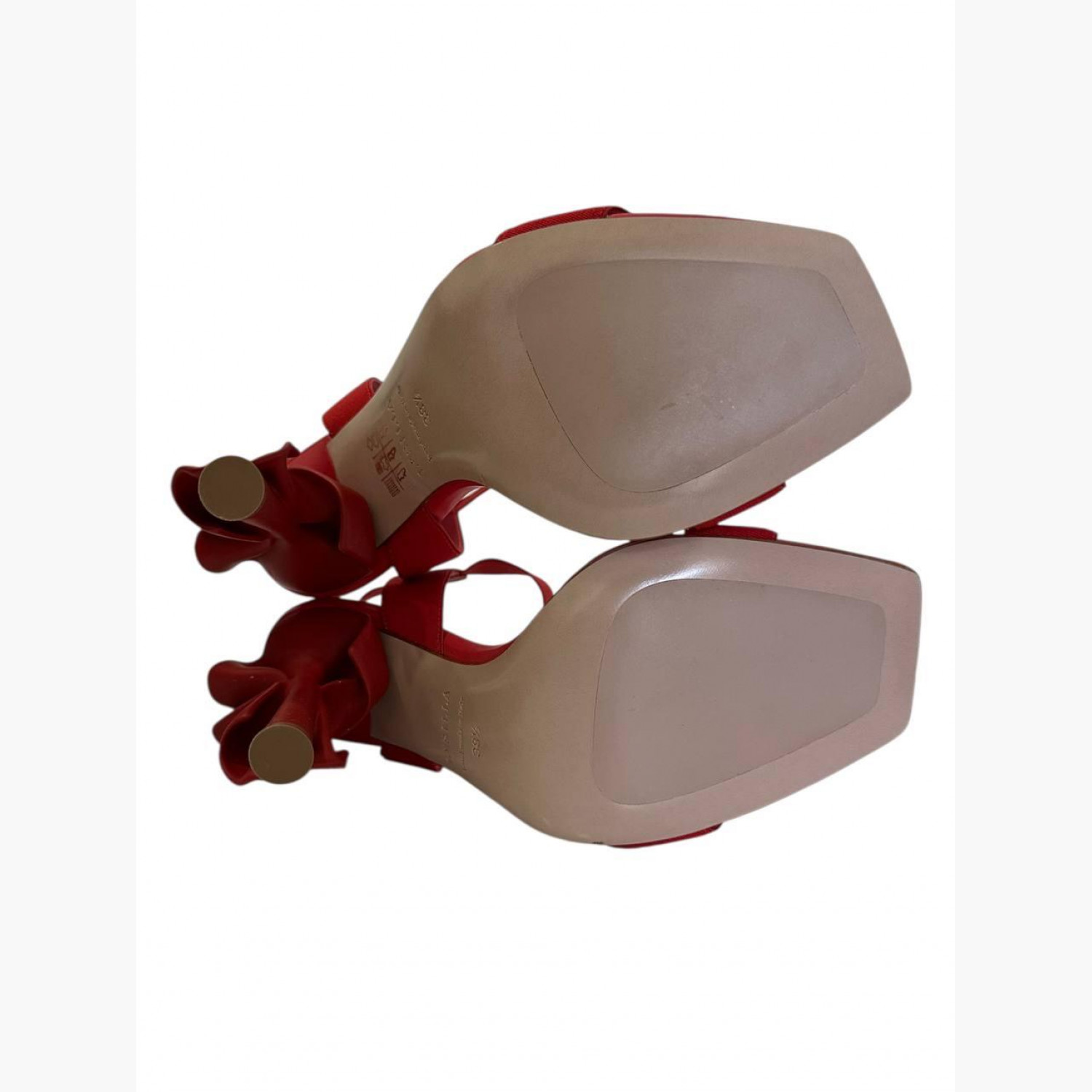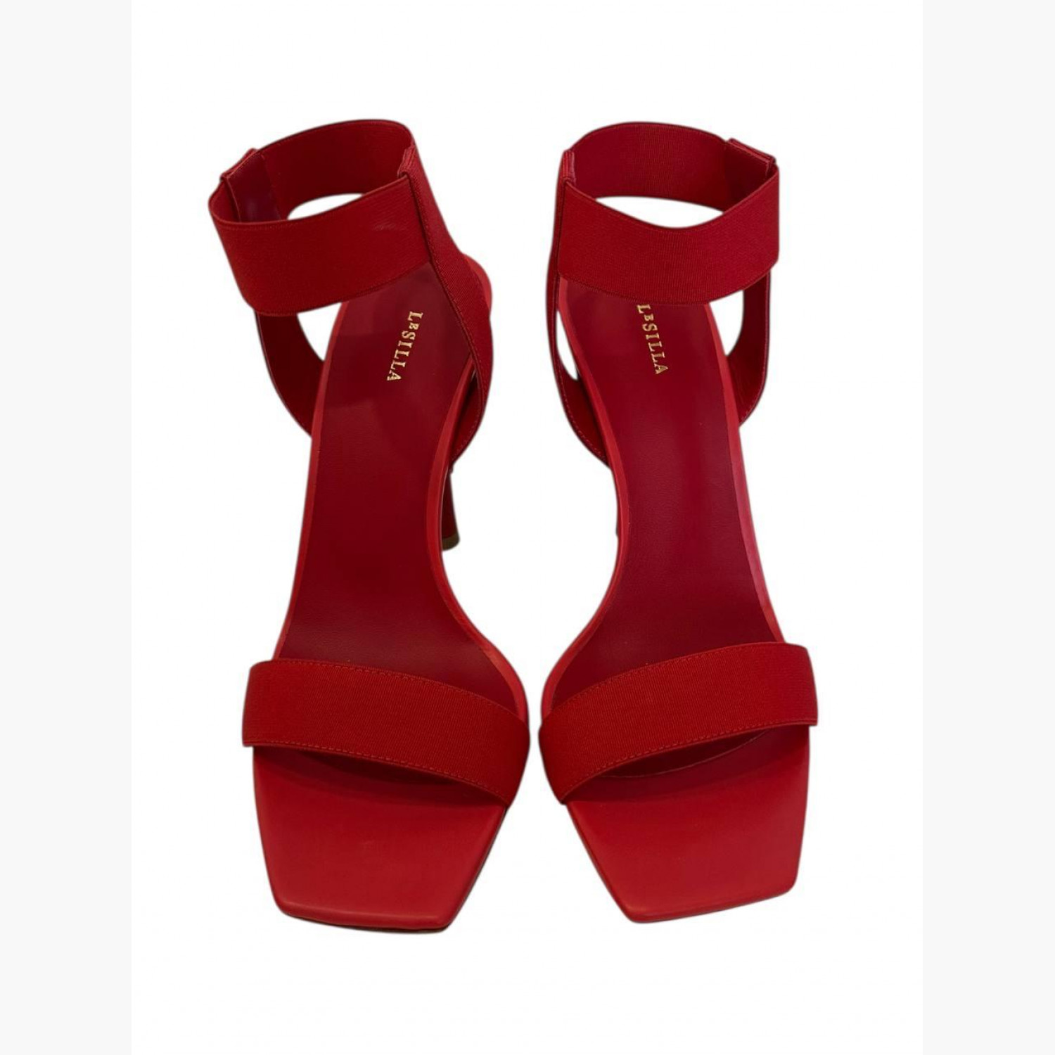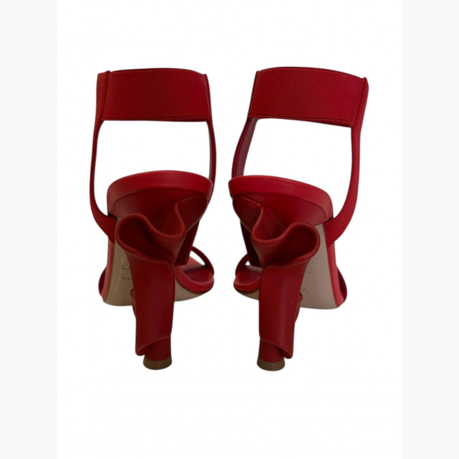 Red leather heeled sandals with sculpted heels. Absolutely new, no wear marks.