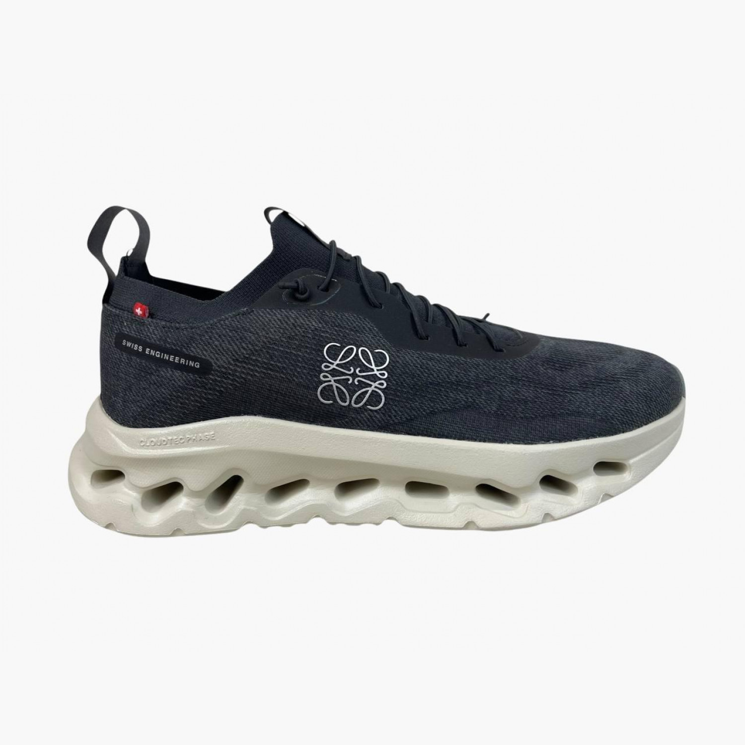 Gray textile sneakers with a rubber sole and a tag. Comes with extra laces. Absolutely new.