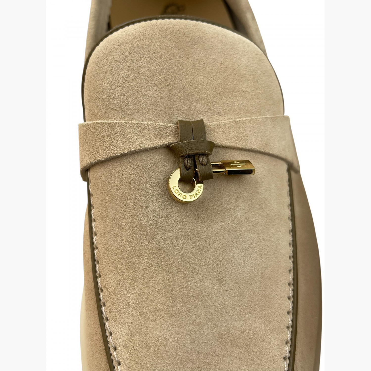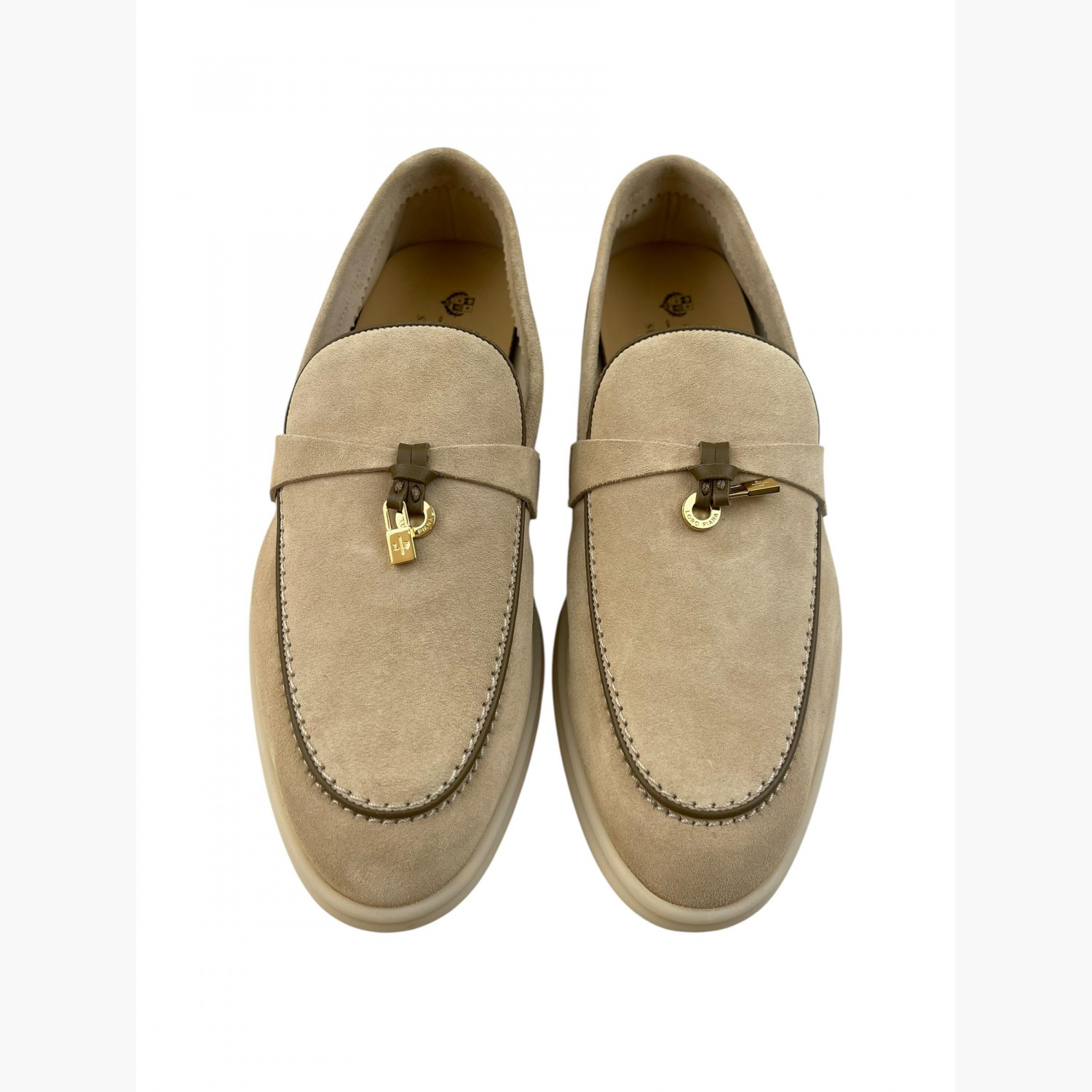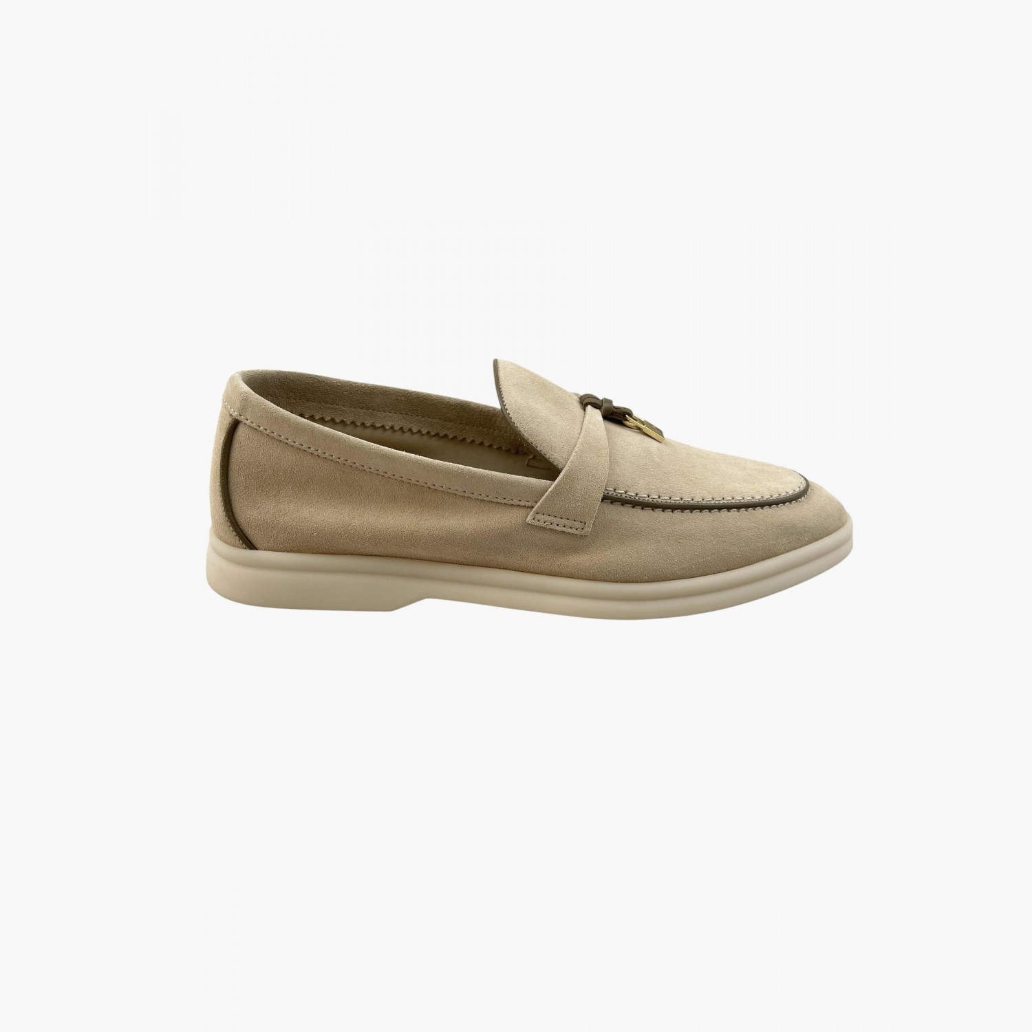 Beige suede loafers with gold hardware. Absolutely new.