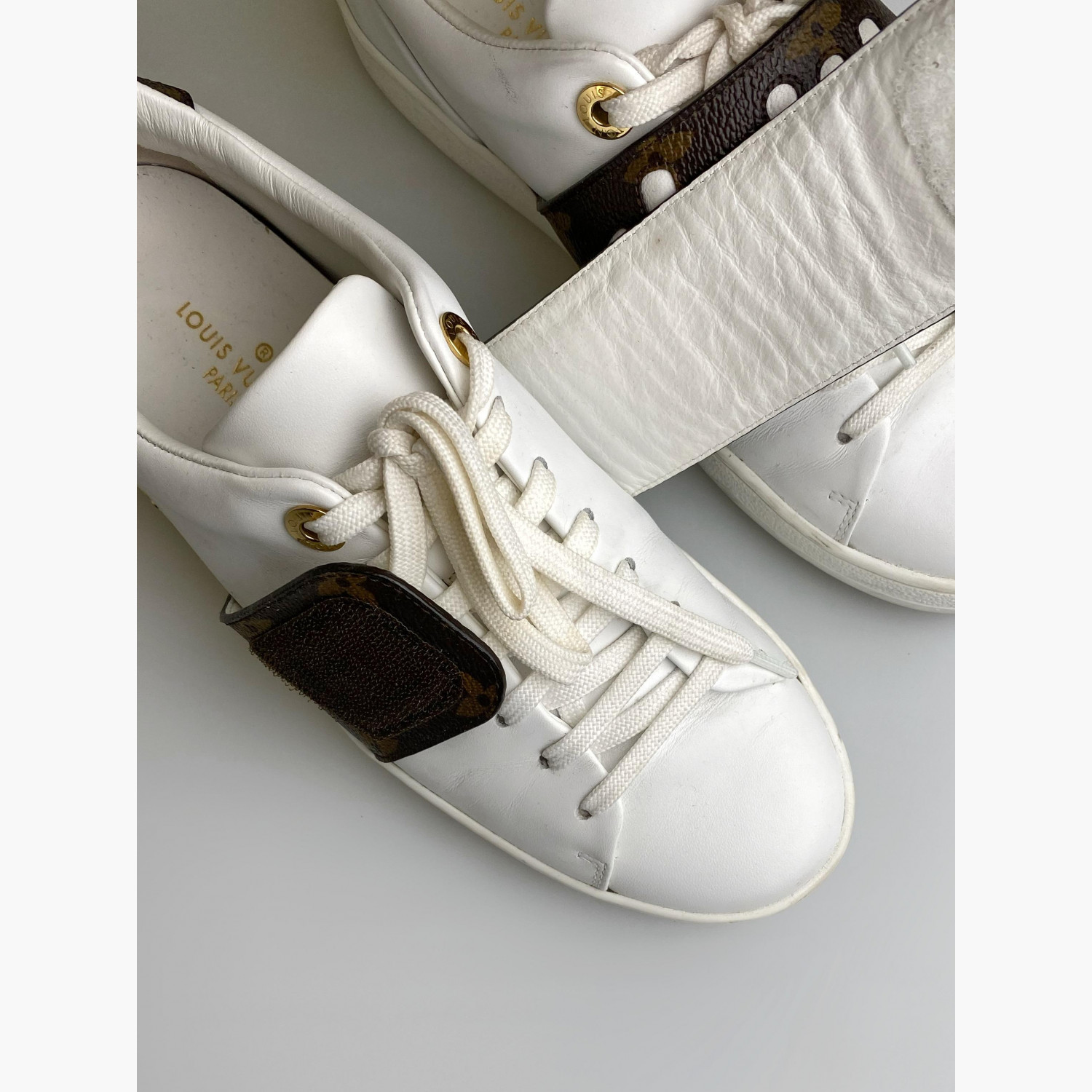 Sneakers are in very goodcondition, there are slight wear marks. Made of leather, details - canvas, leather inside. Stylish and comfortable option.