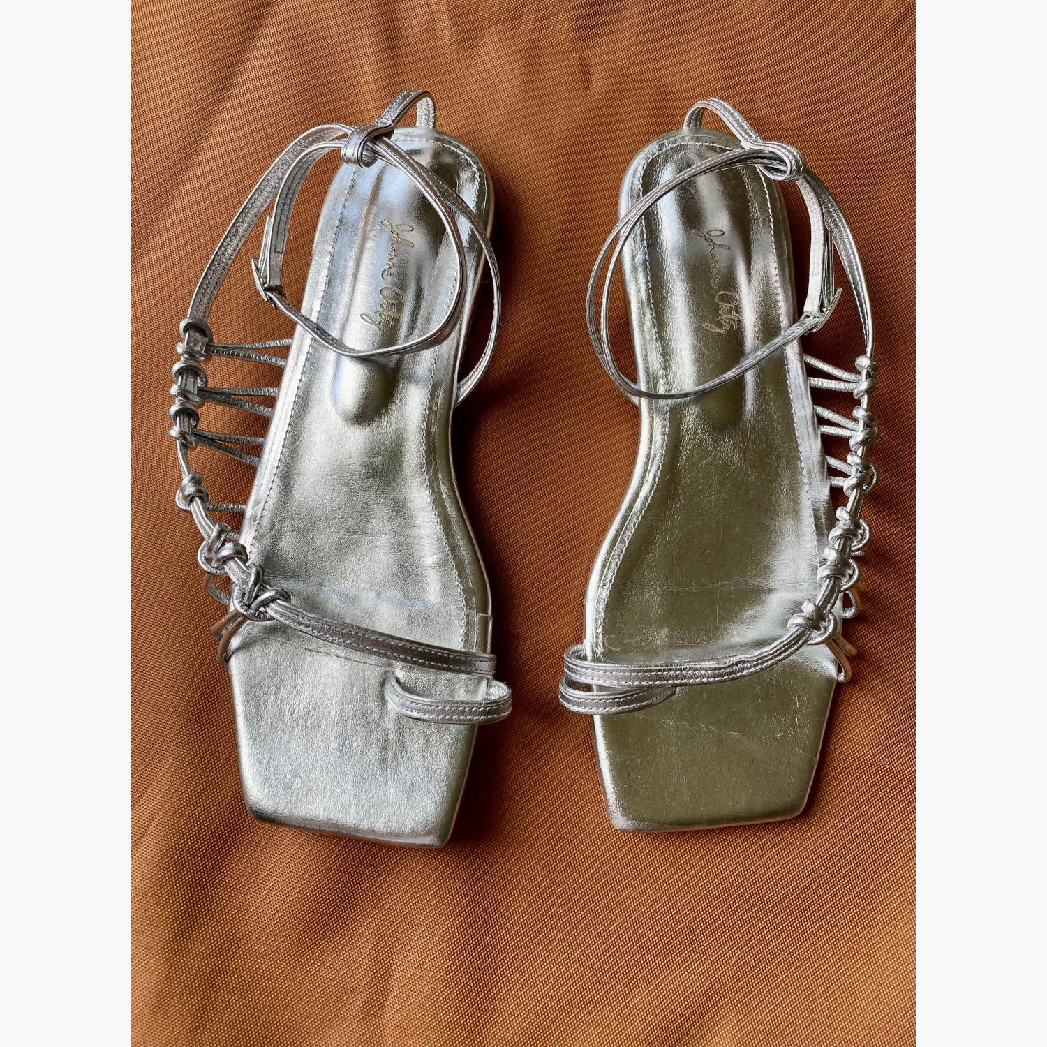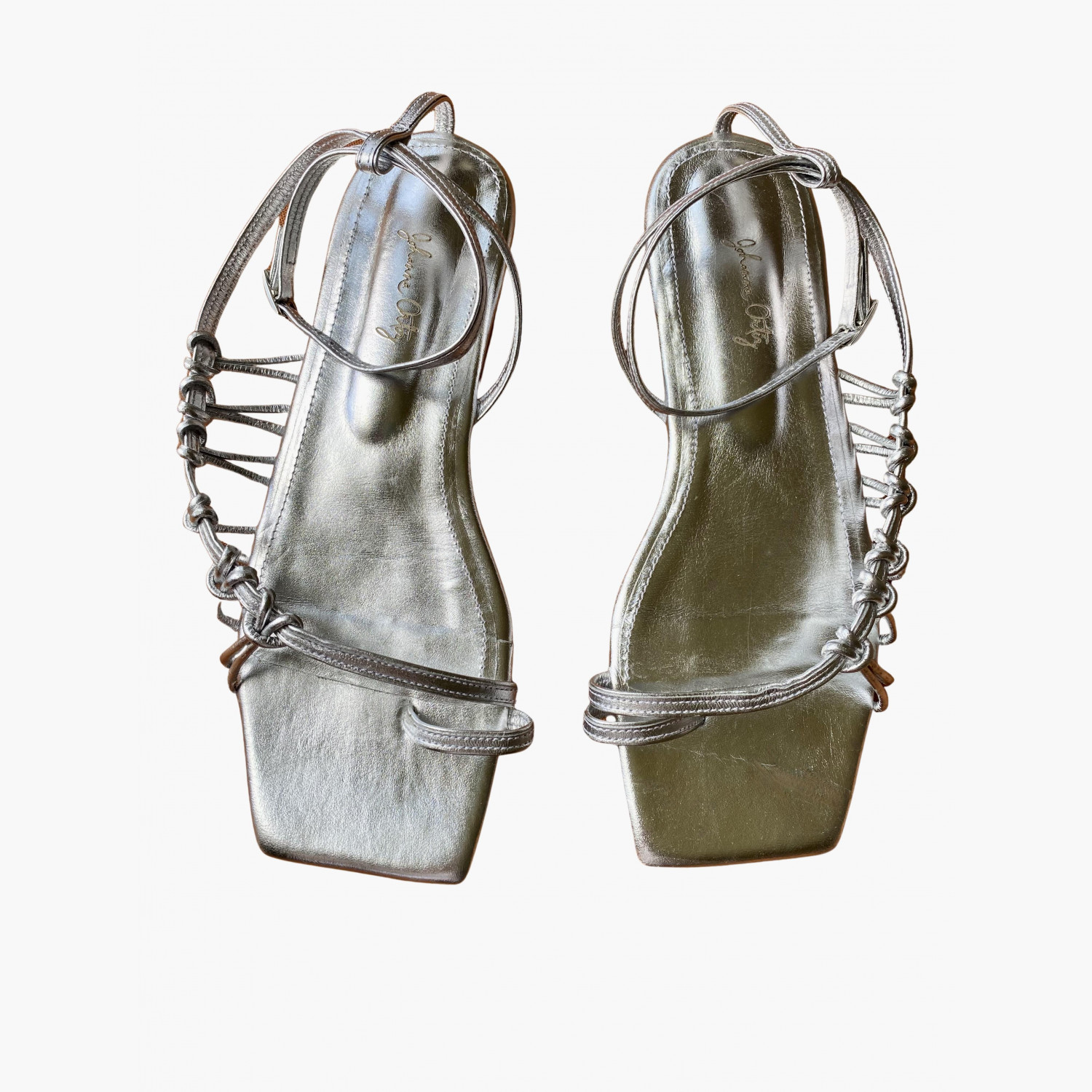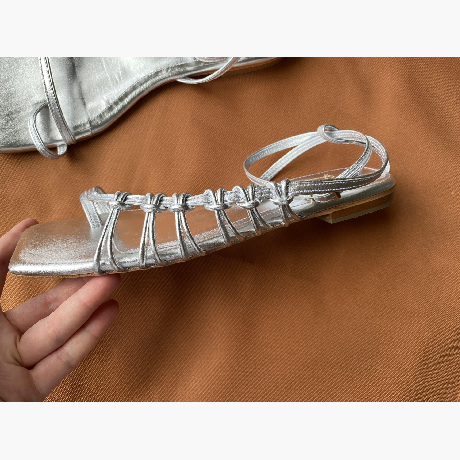 Silver sandals made of genuine leather. Cushioned insole under the heel. New, not used.