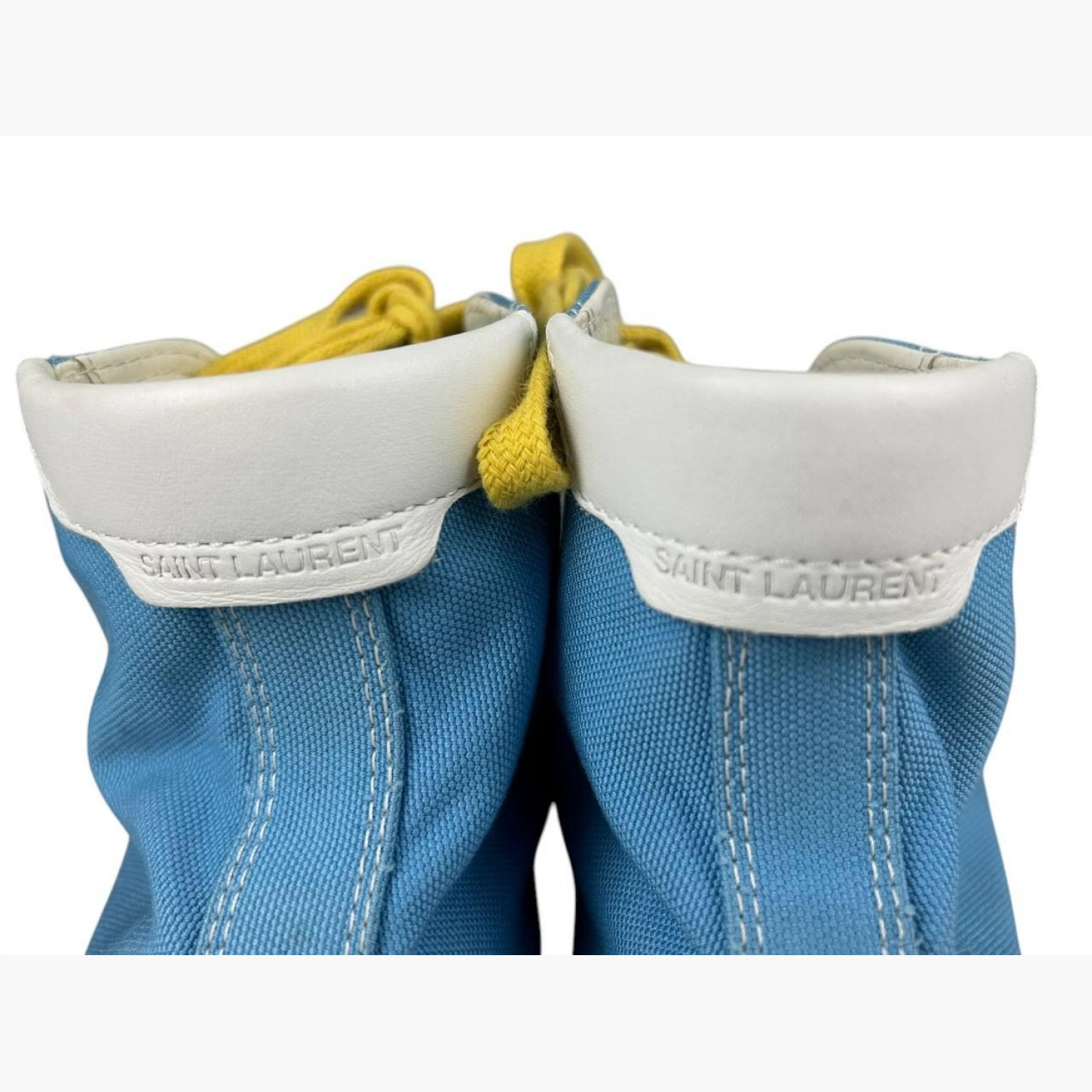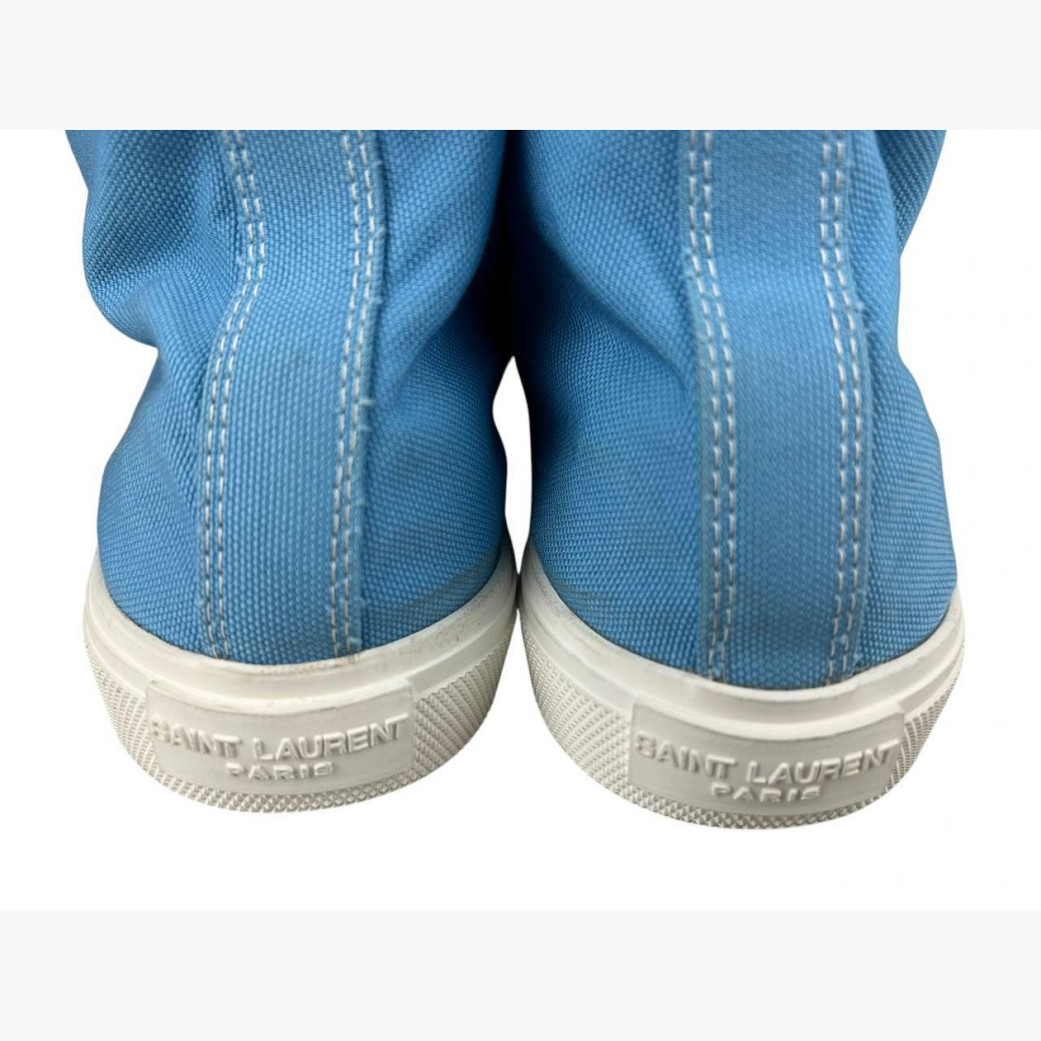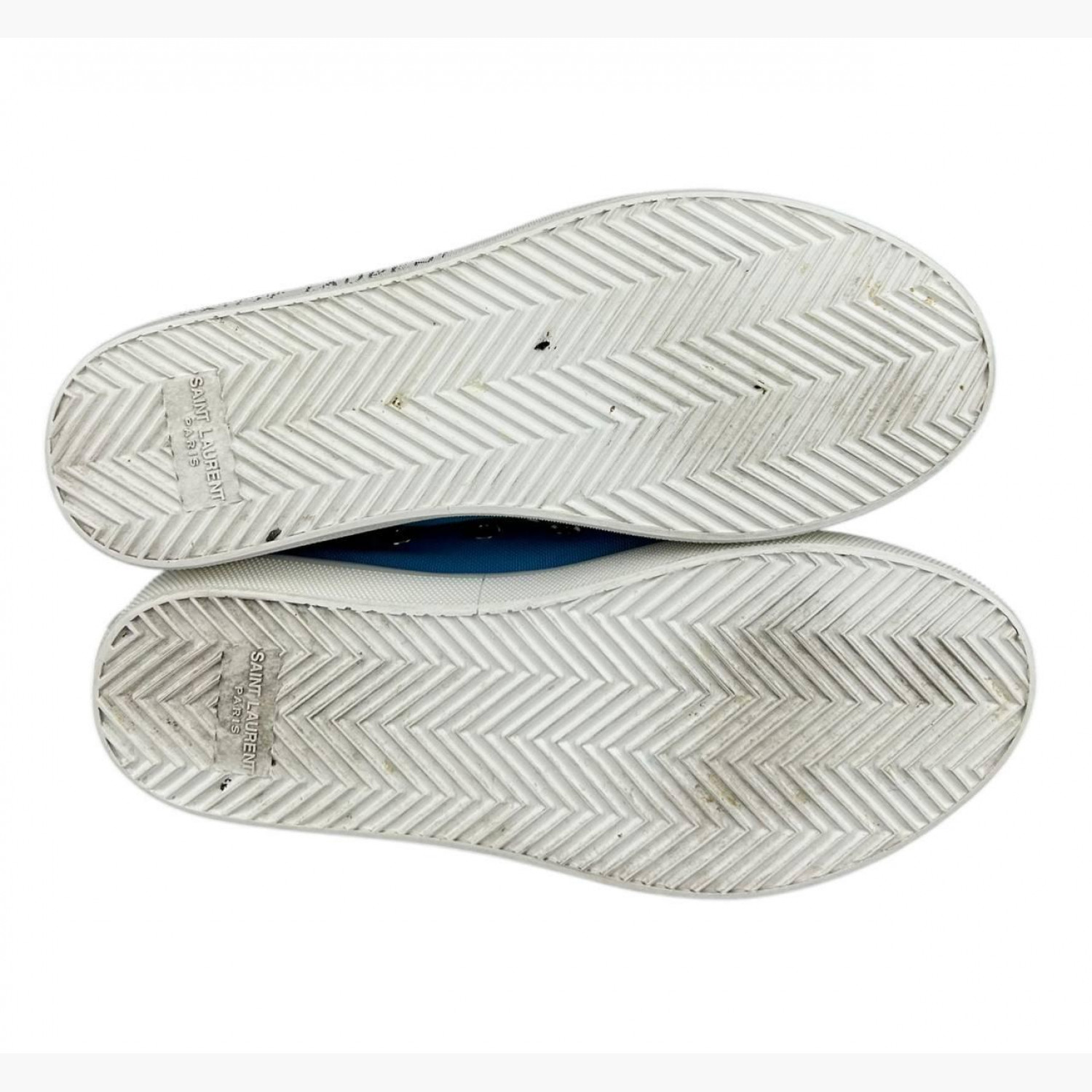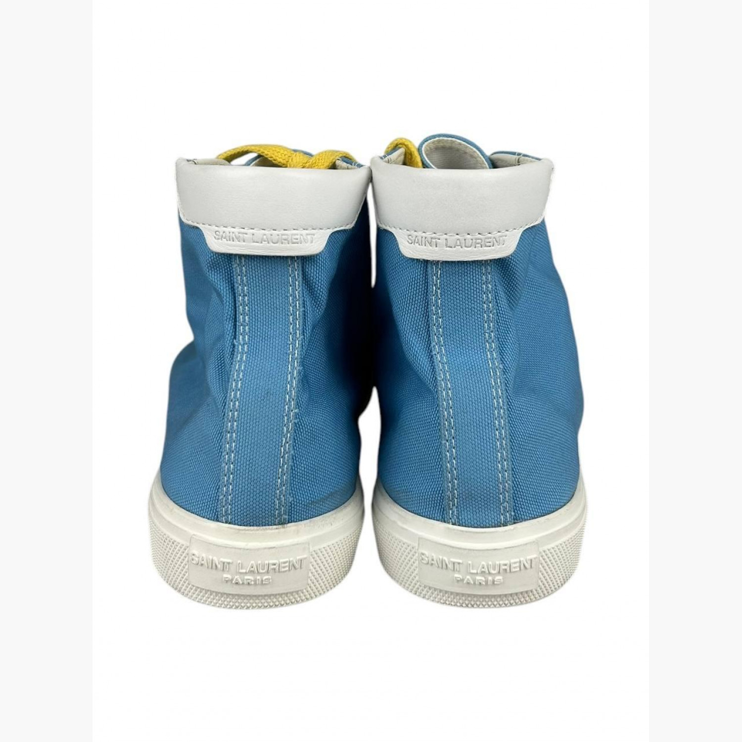 Blue textile sneakers in perfect condition, visible wear marks. Additional white laces are included.