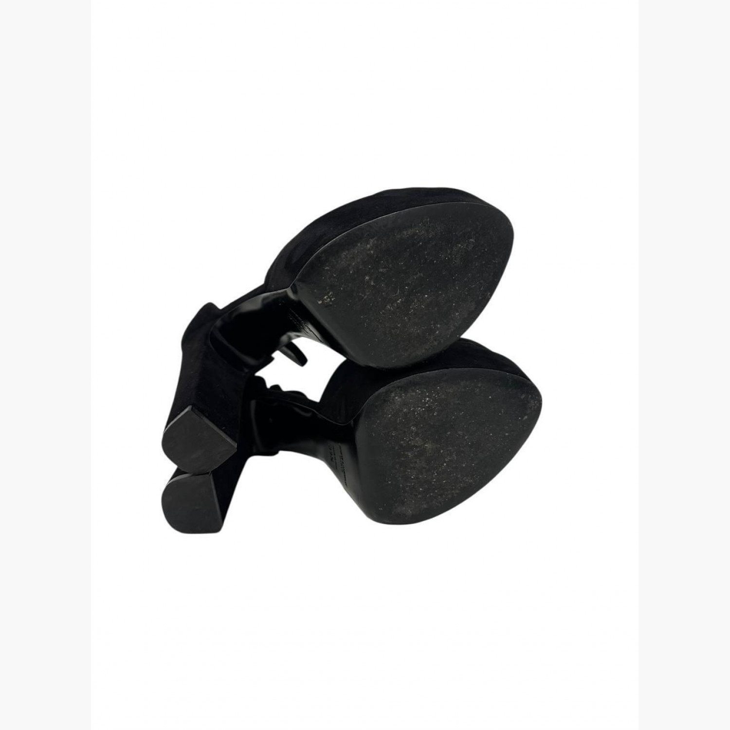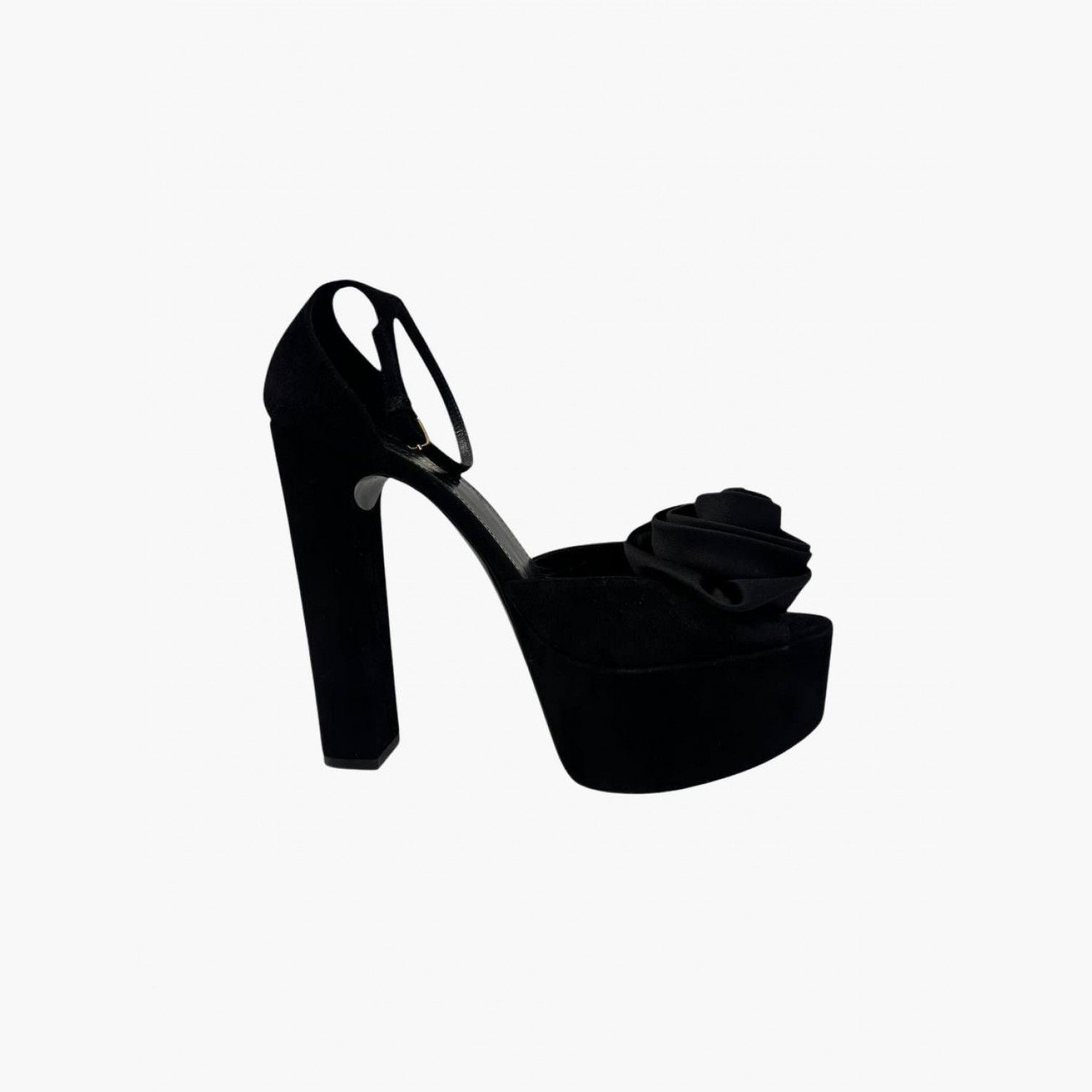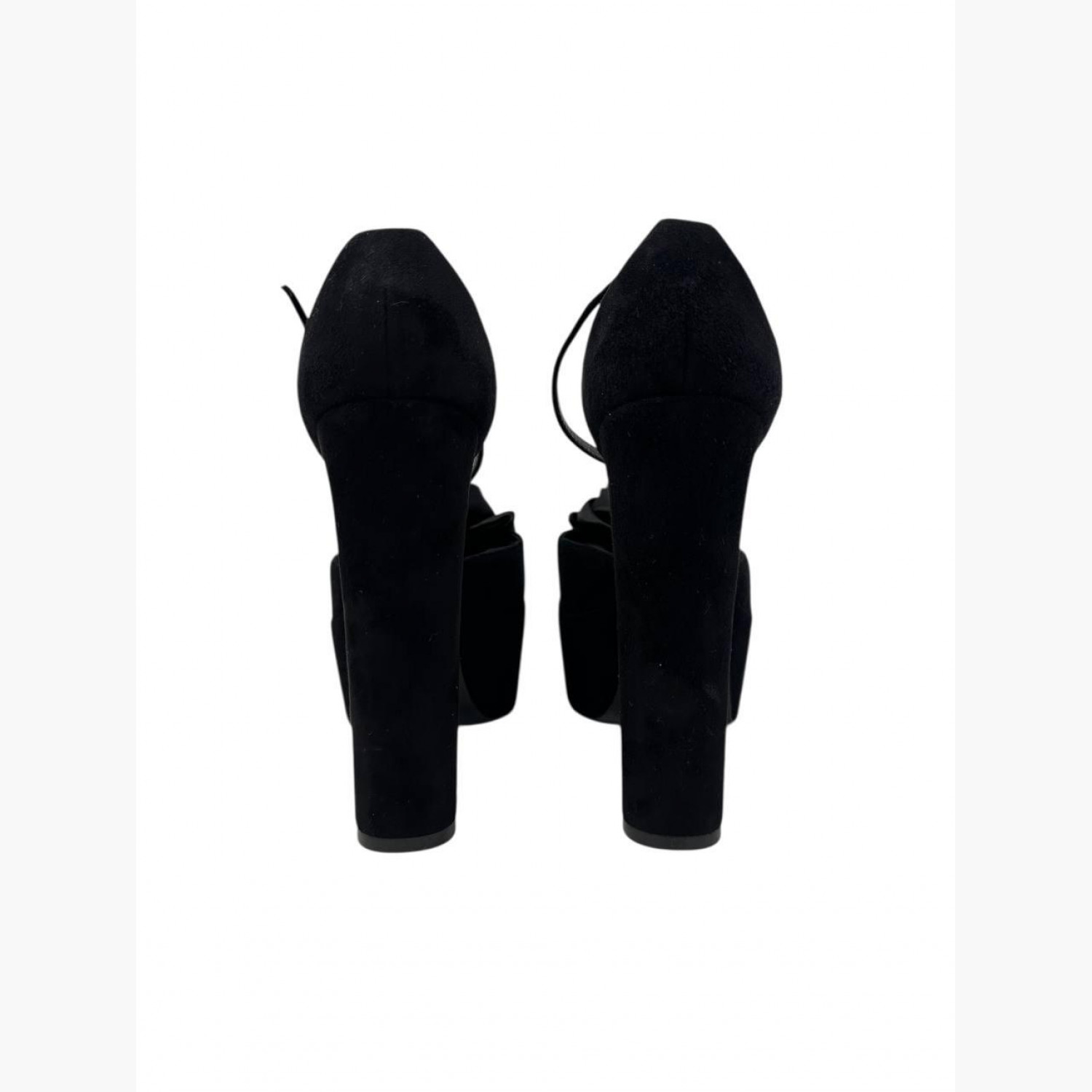 Black suede high-heeled sandals. In perfect condition, with minor scuffs.