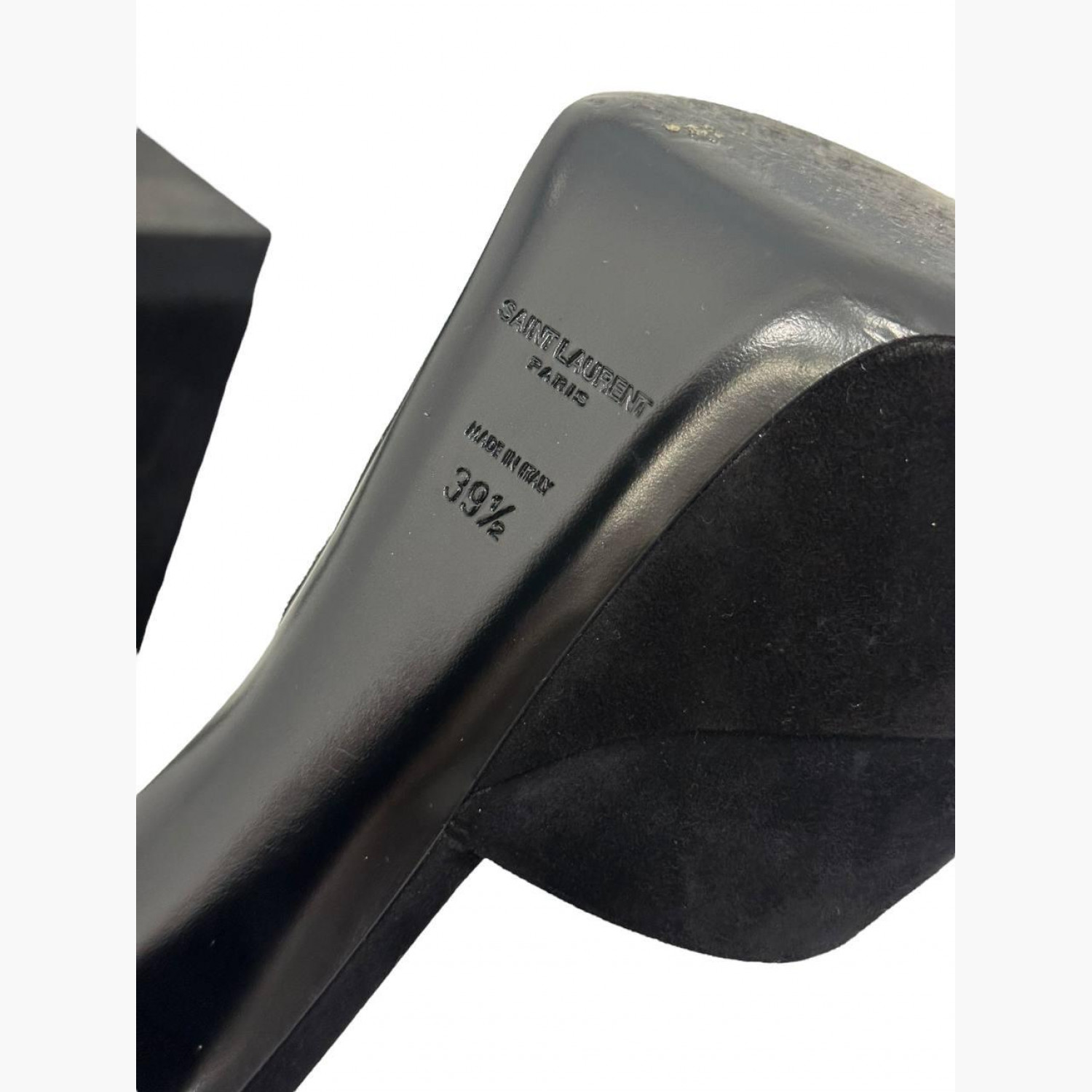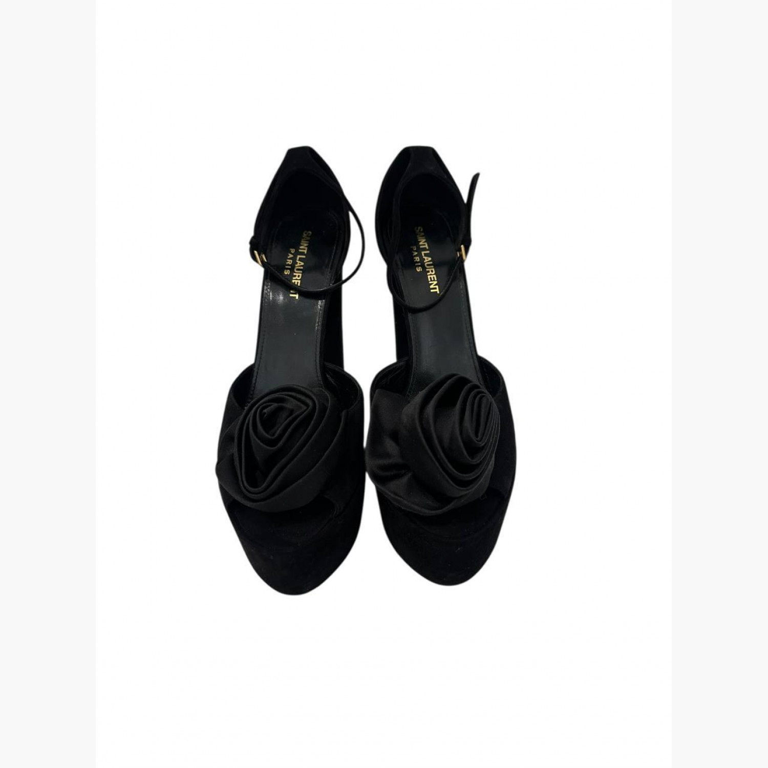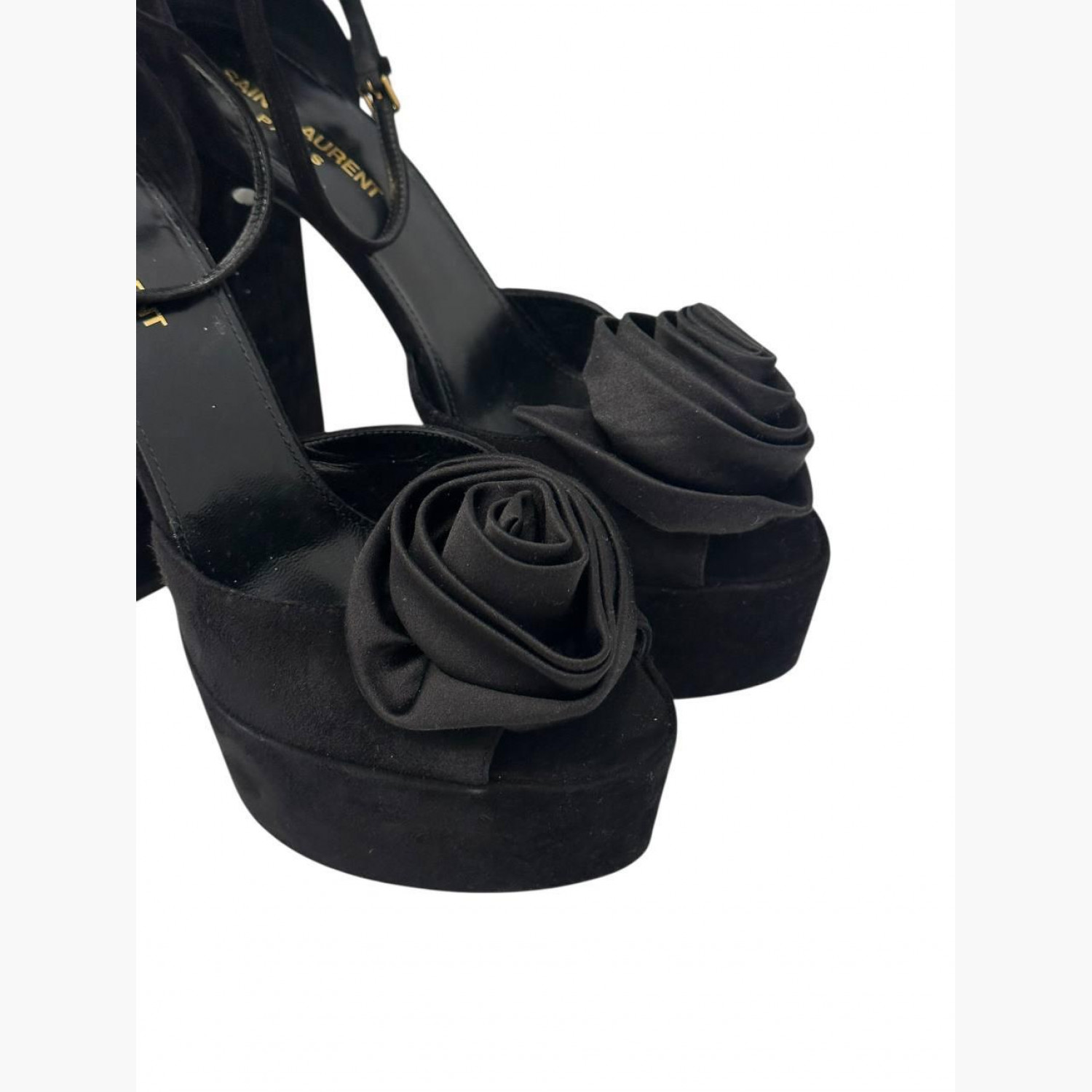 Black suede high-heeled sandals. In perfect condition, with minor scuffs.