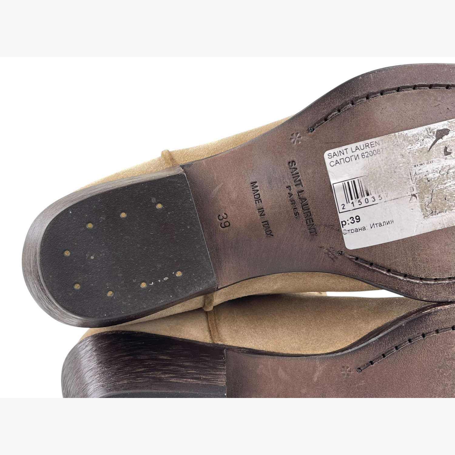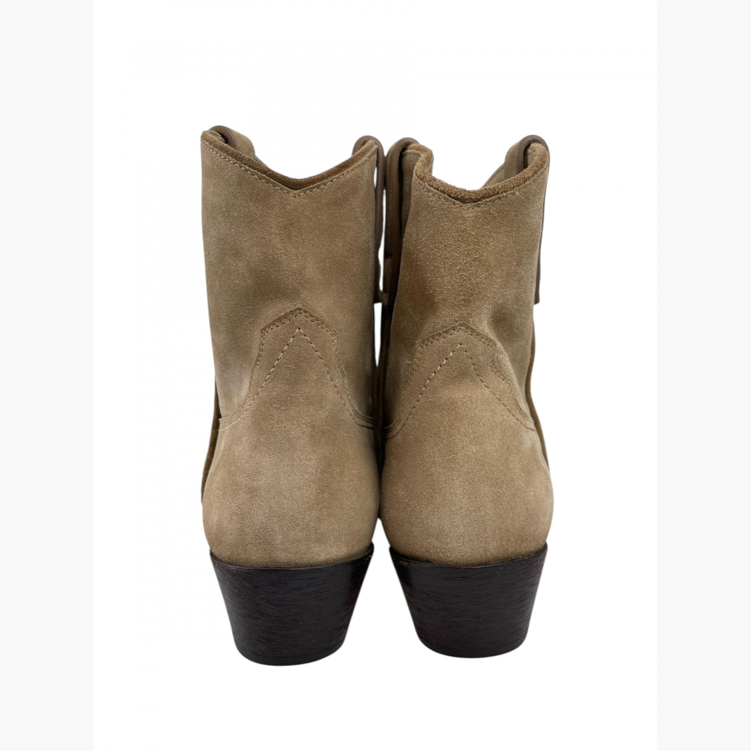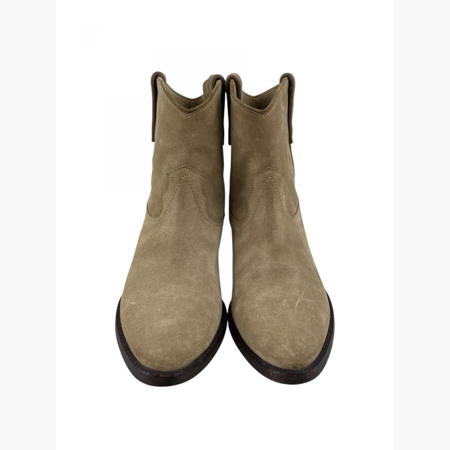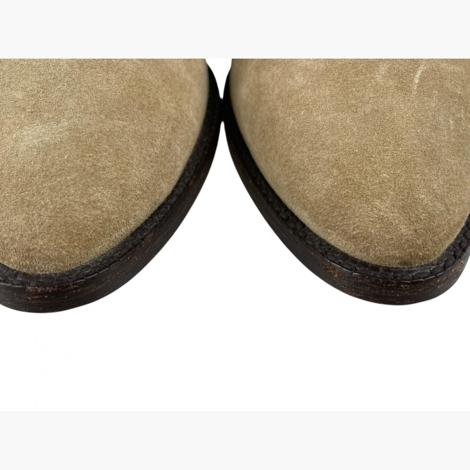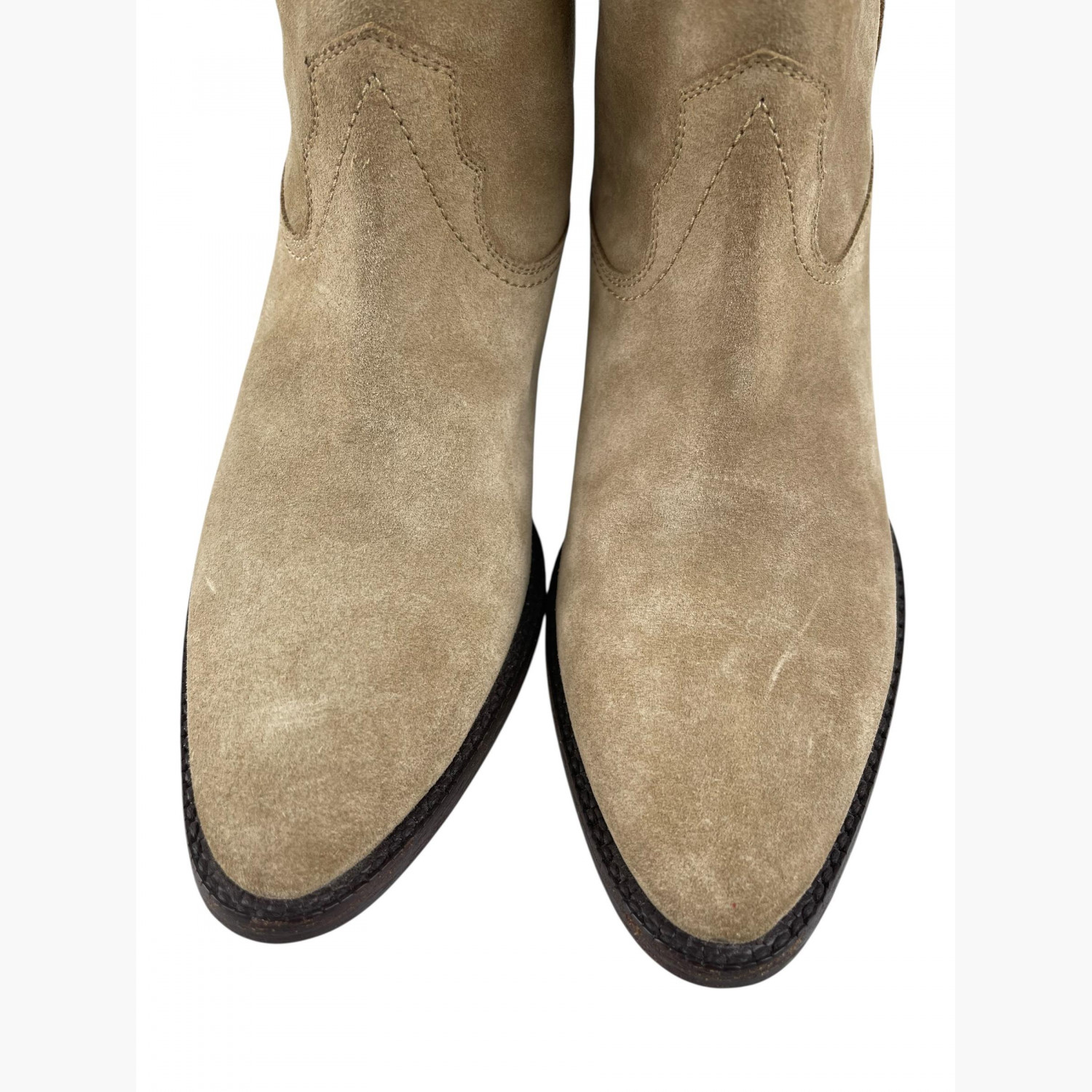 Beige suede cowboy boots. In good condition, with minor wear marks.