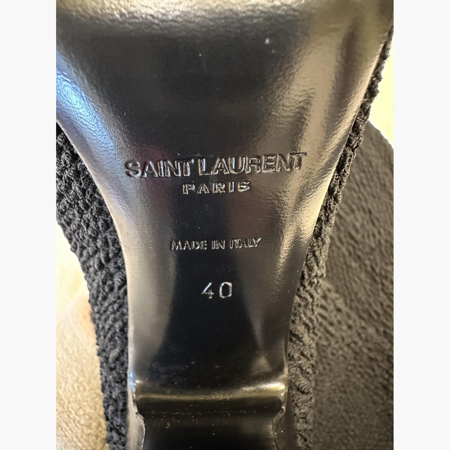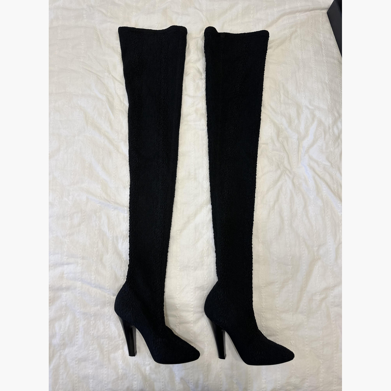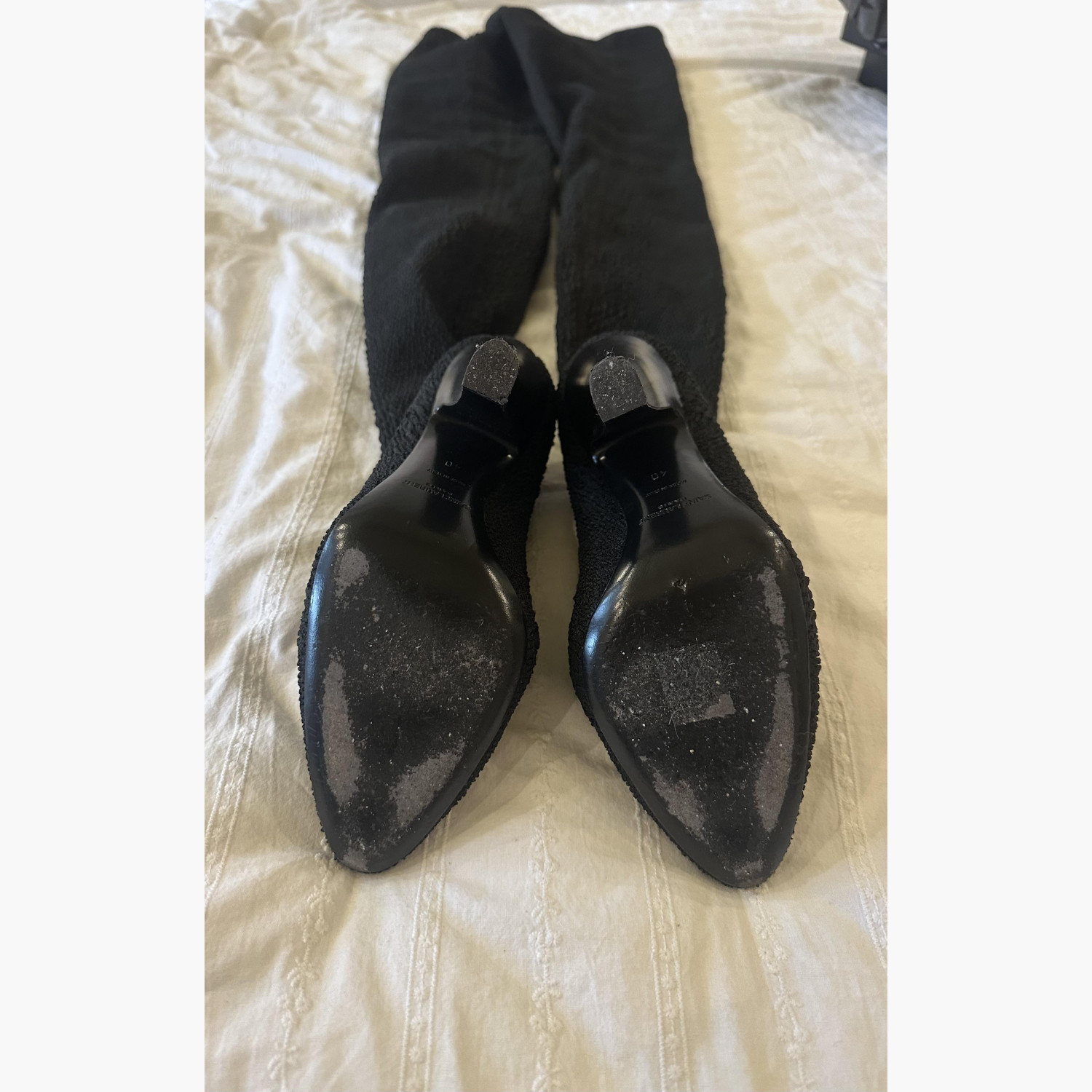 Black patent leather boots with a rounded toe.In good condition, with signs of wear.