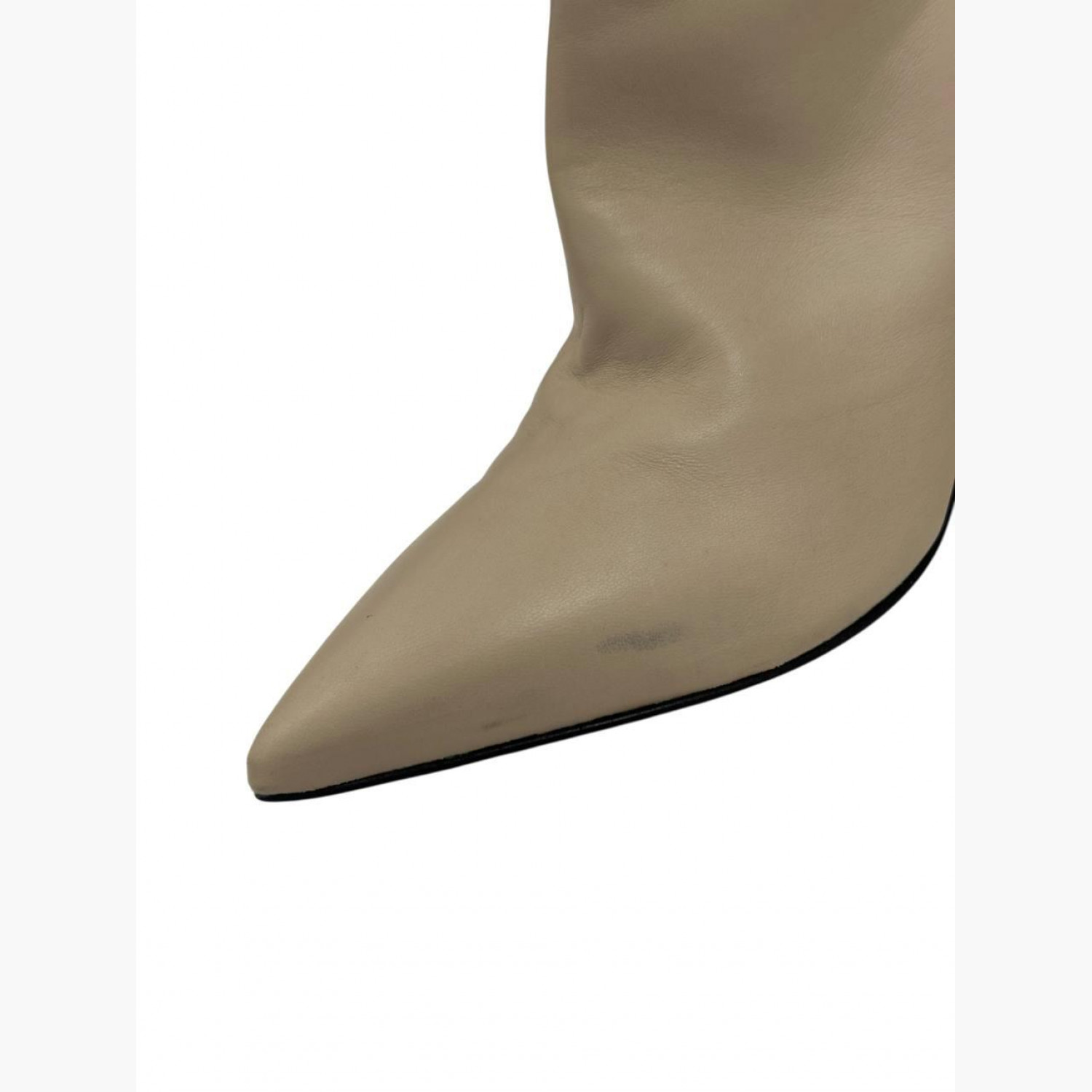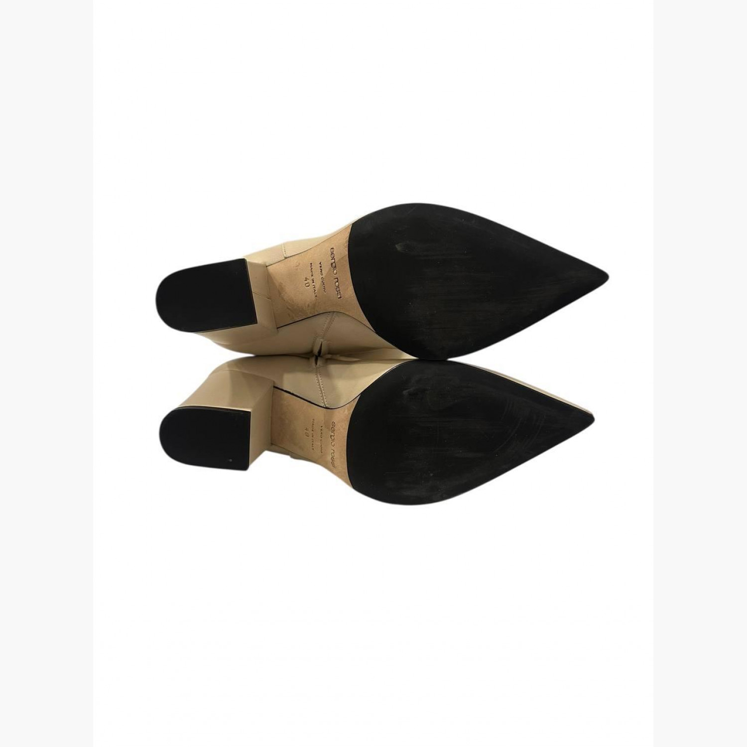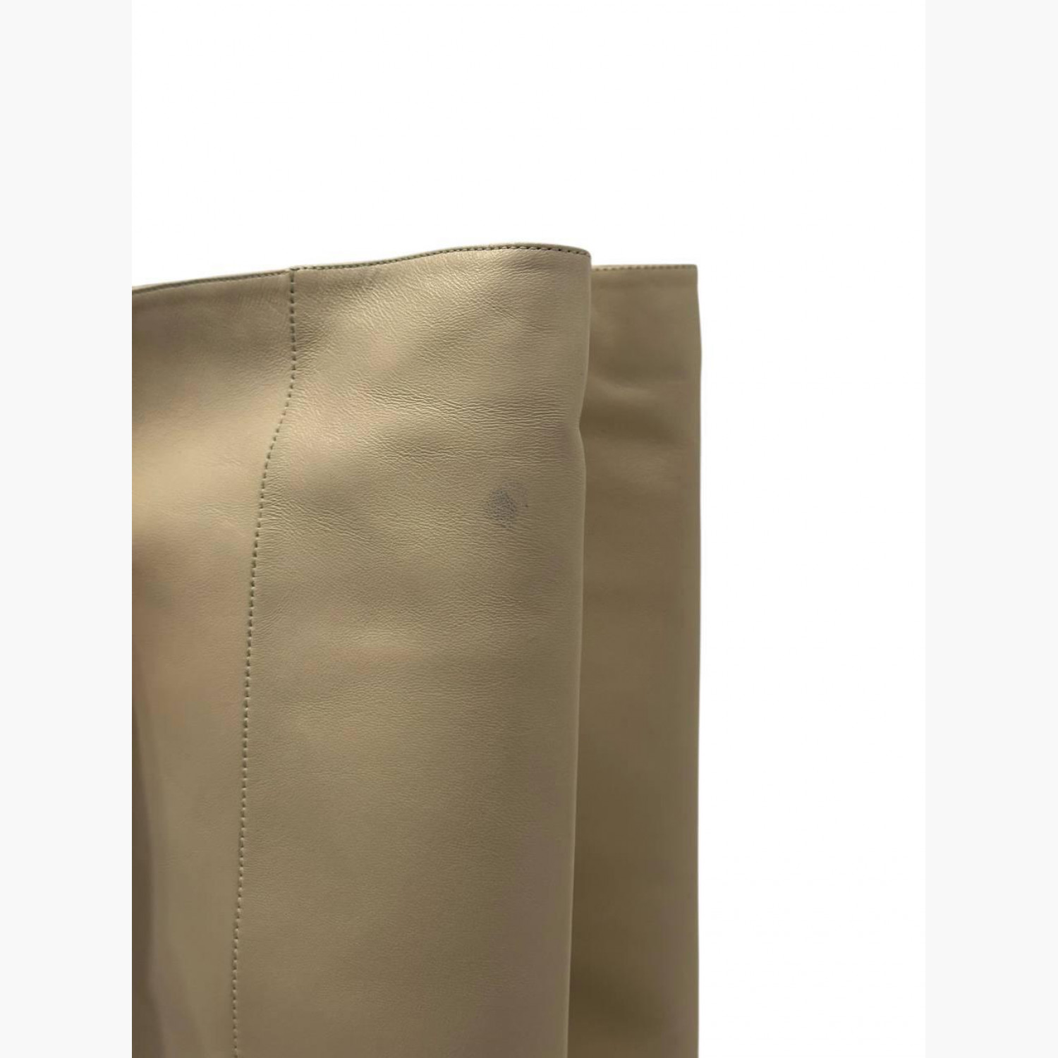 Beige leather heeled boots. In good condition with scuff marks.