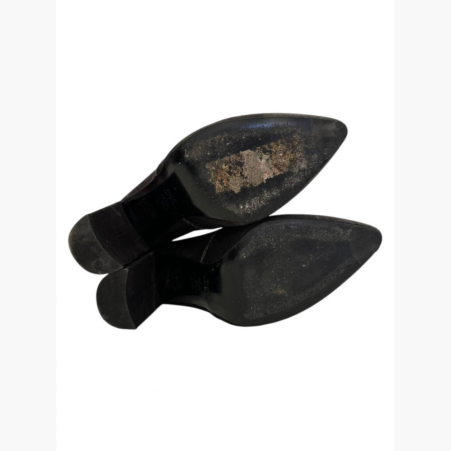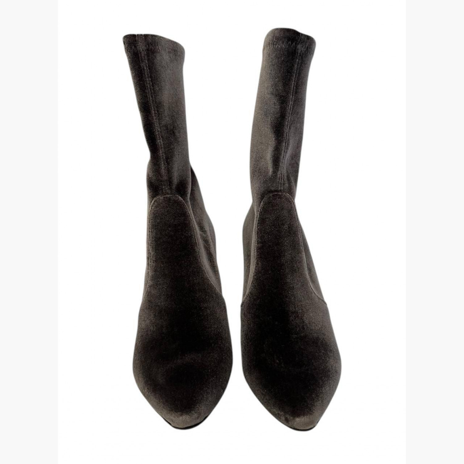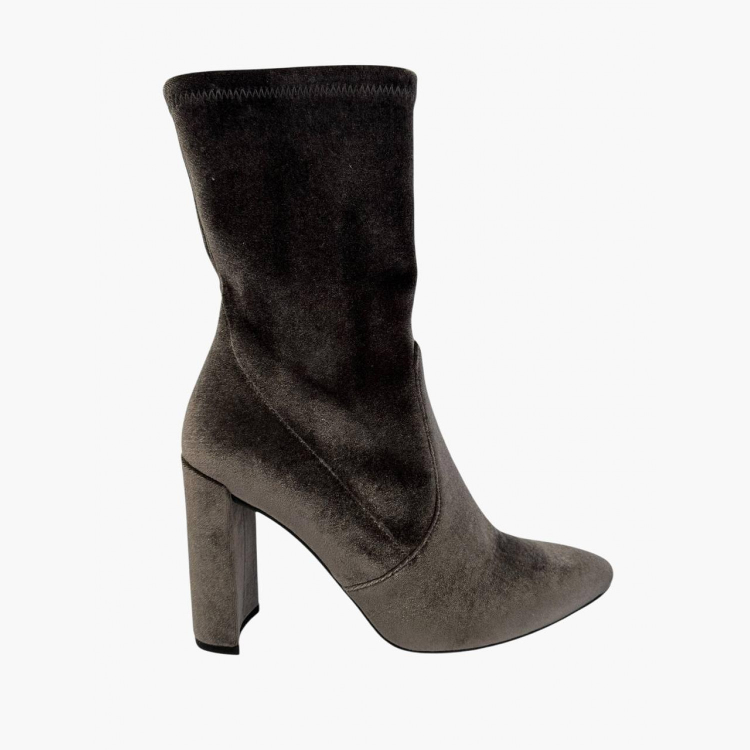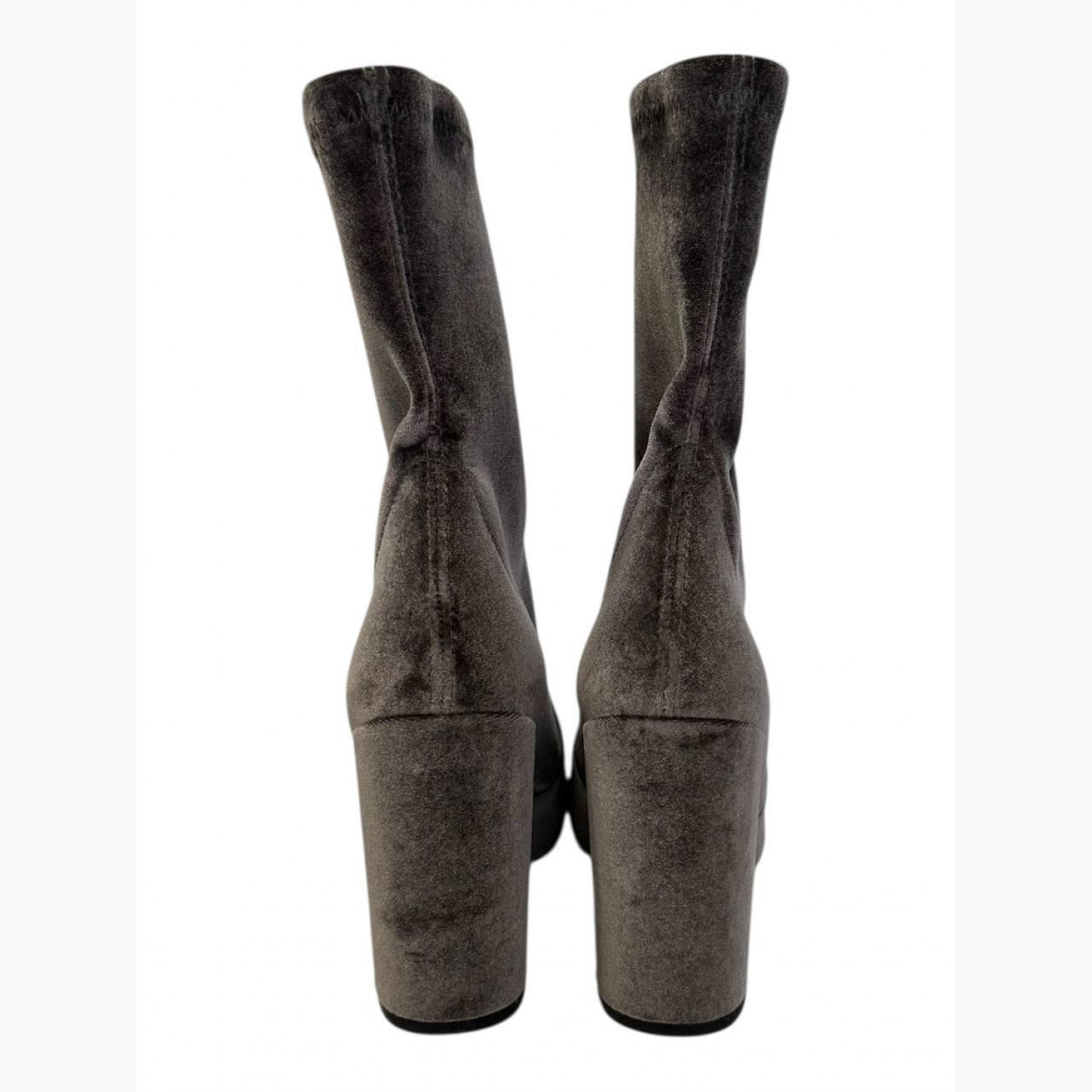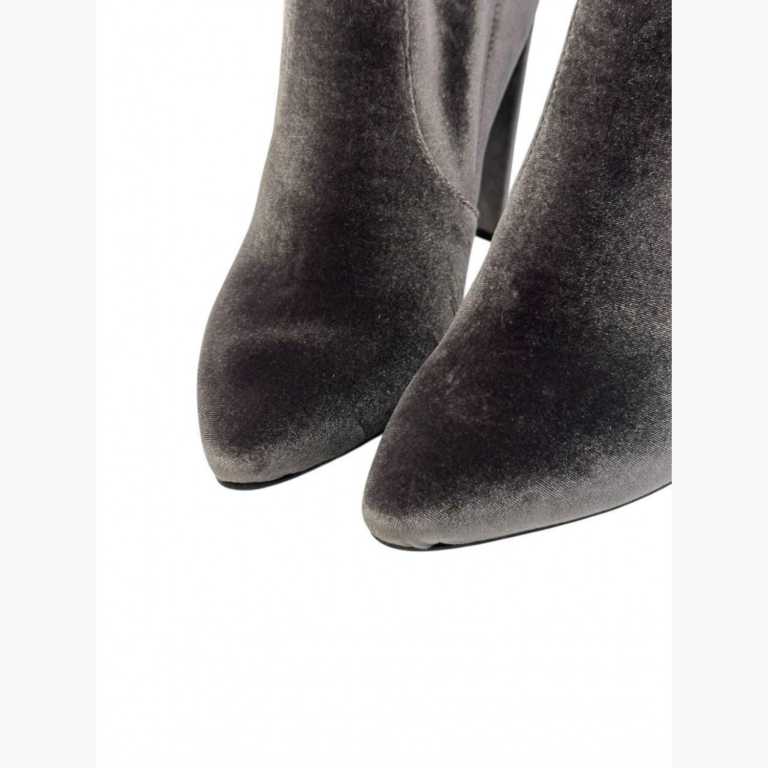 Gray velour ankle boots with heels. In perfect condition, with scuffs on the sole.