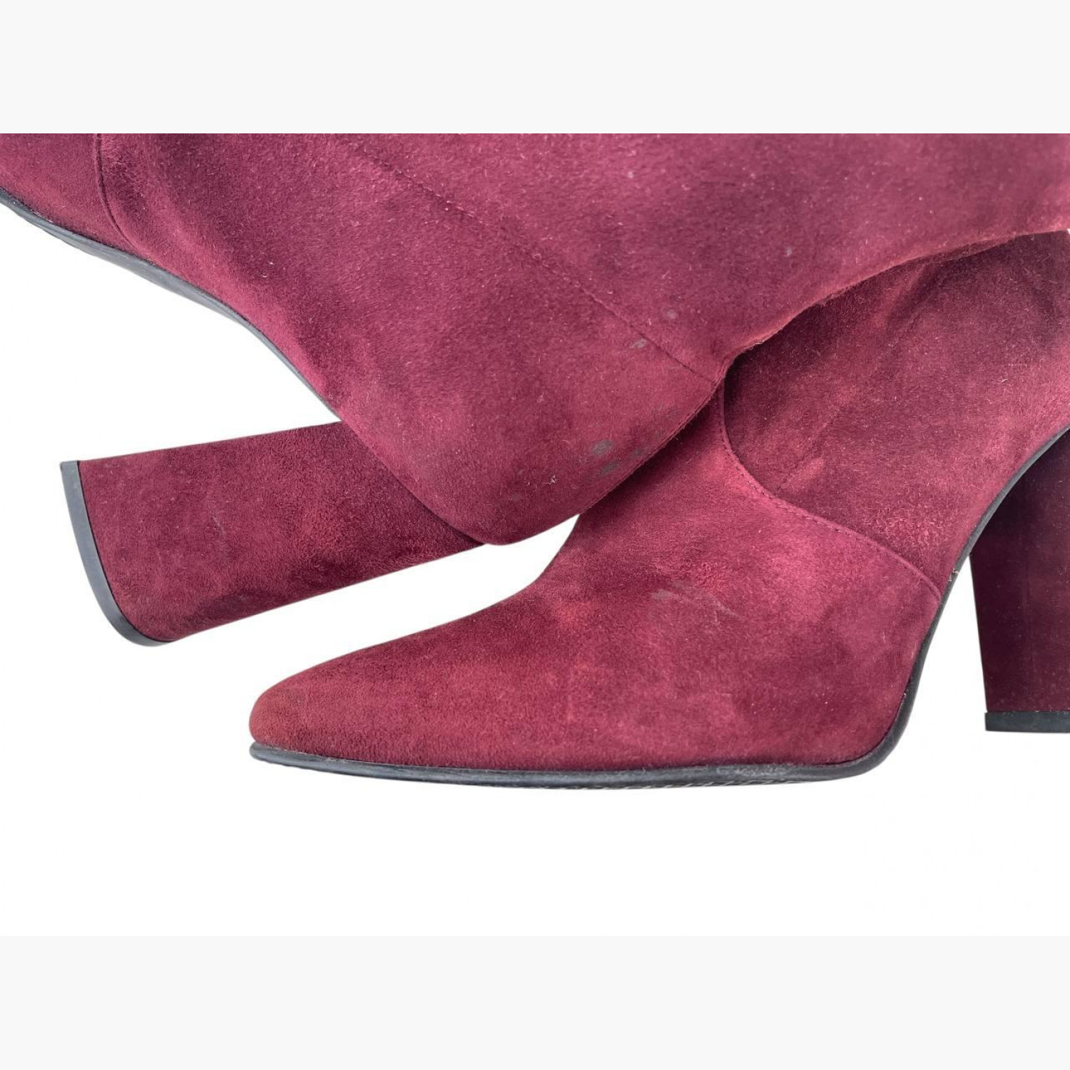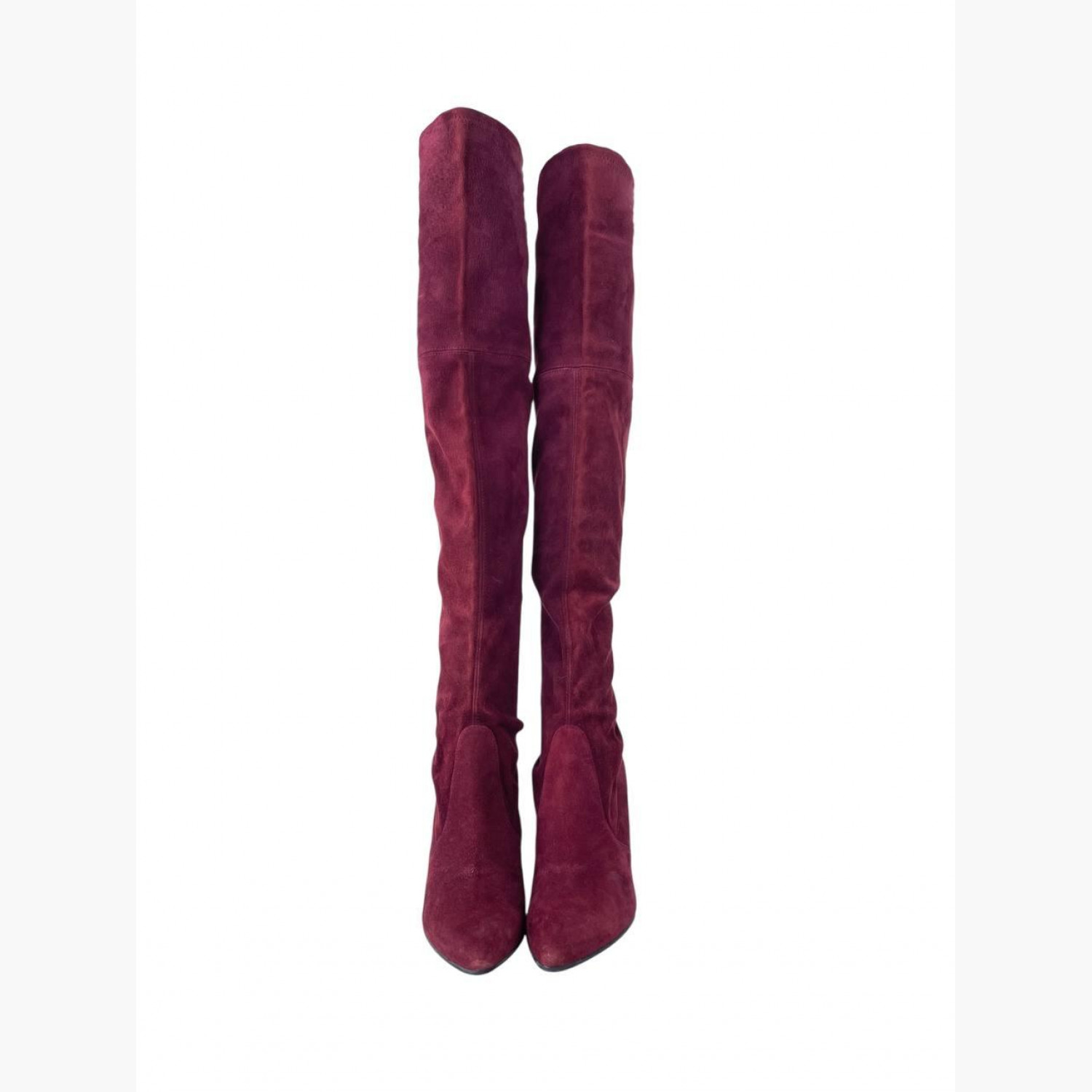 Bordeaux suede over-the-knee boots in good condition. With wear marks and scuffing.