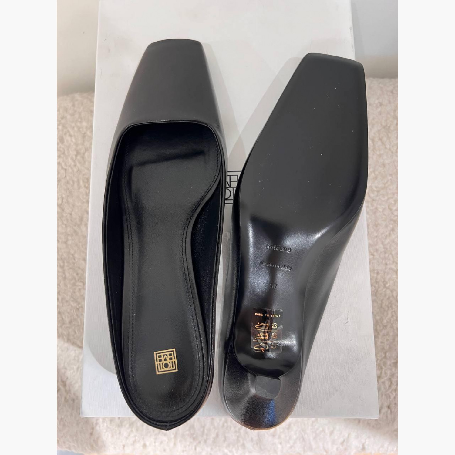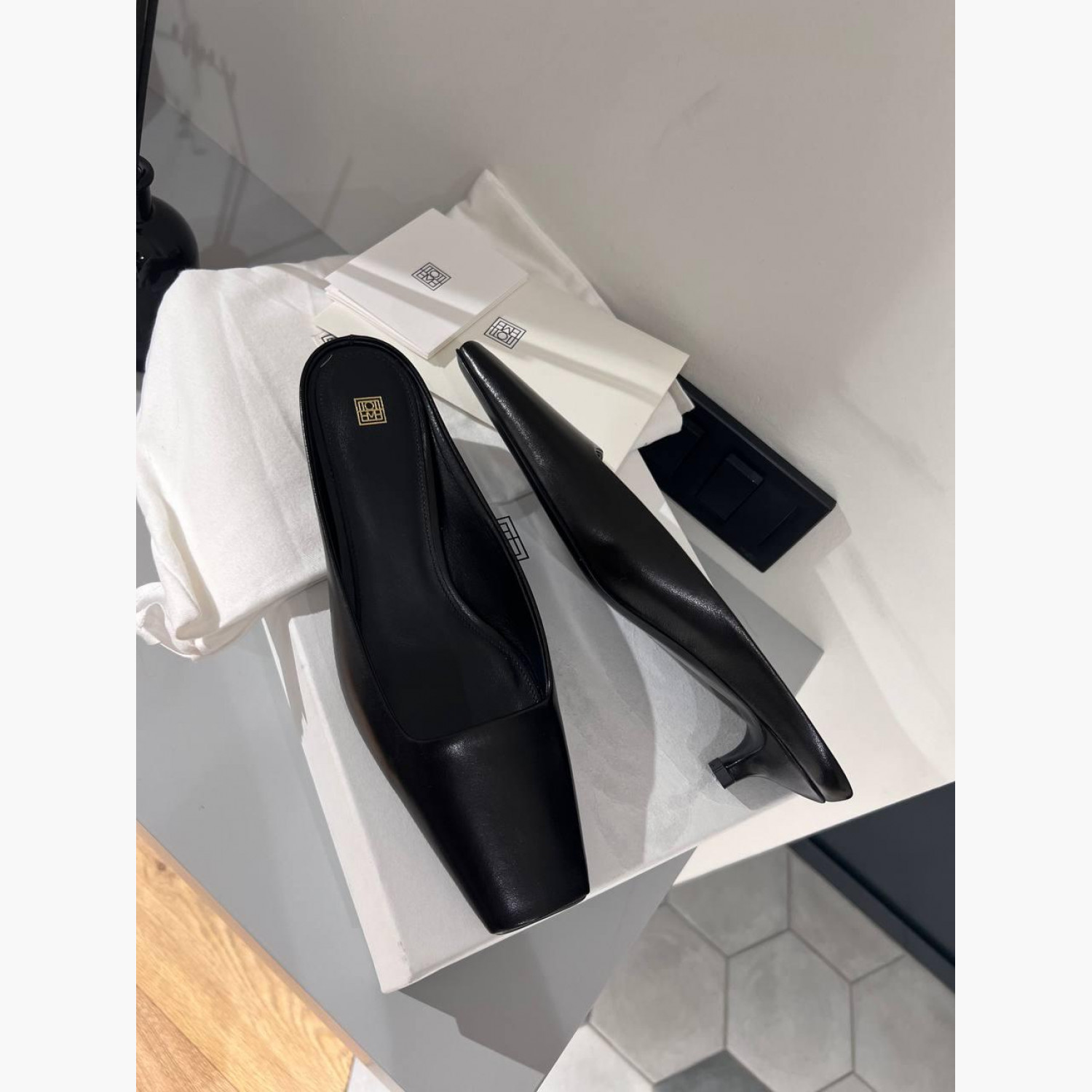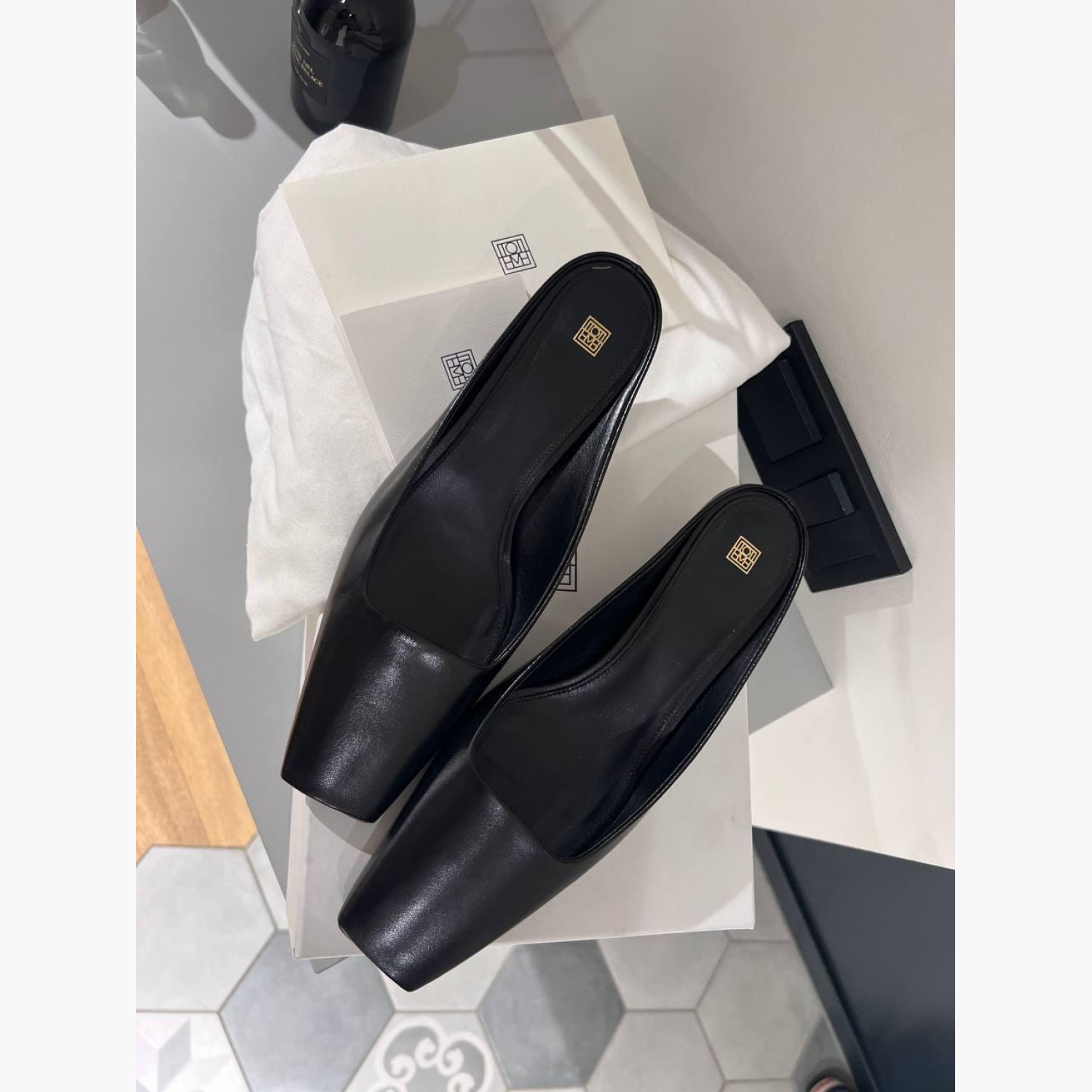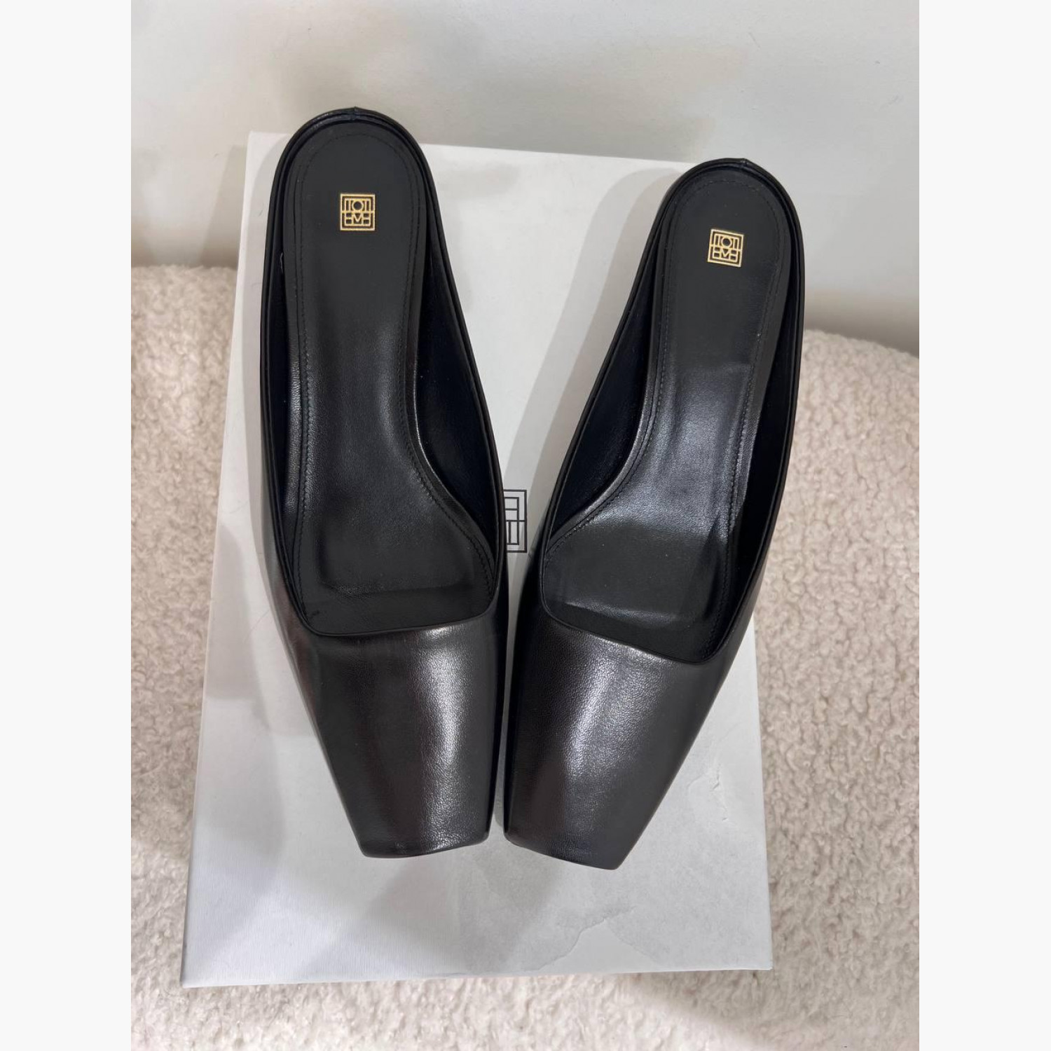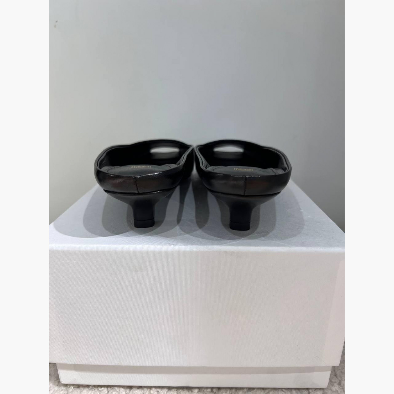 Black leather mules in very good condition.