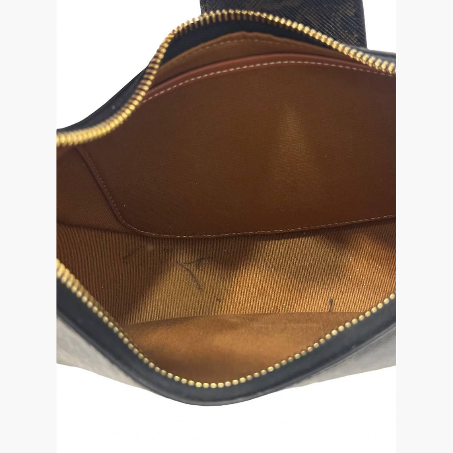 Brown canvas and leather bag. One main compartment and a pocket. In perfect condition, the lining inside the bag is stained.