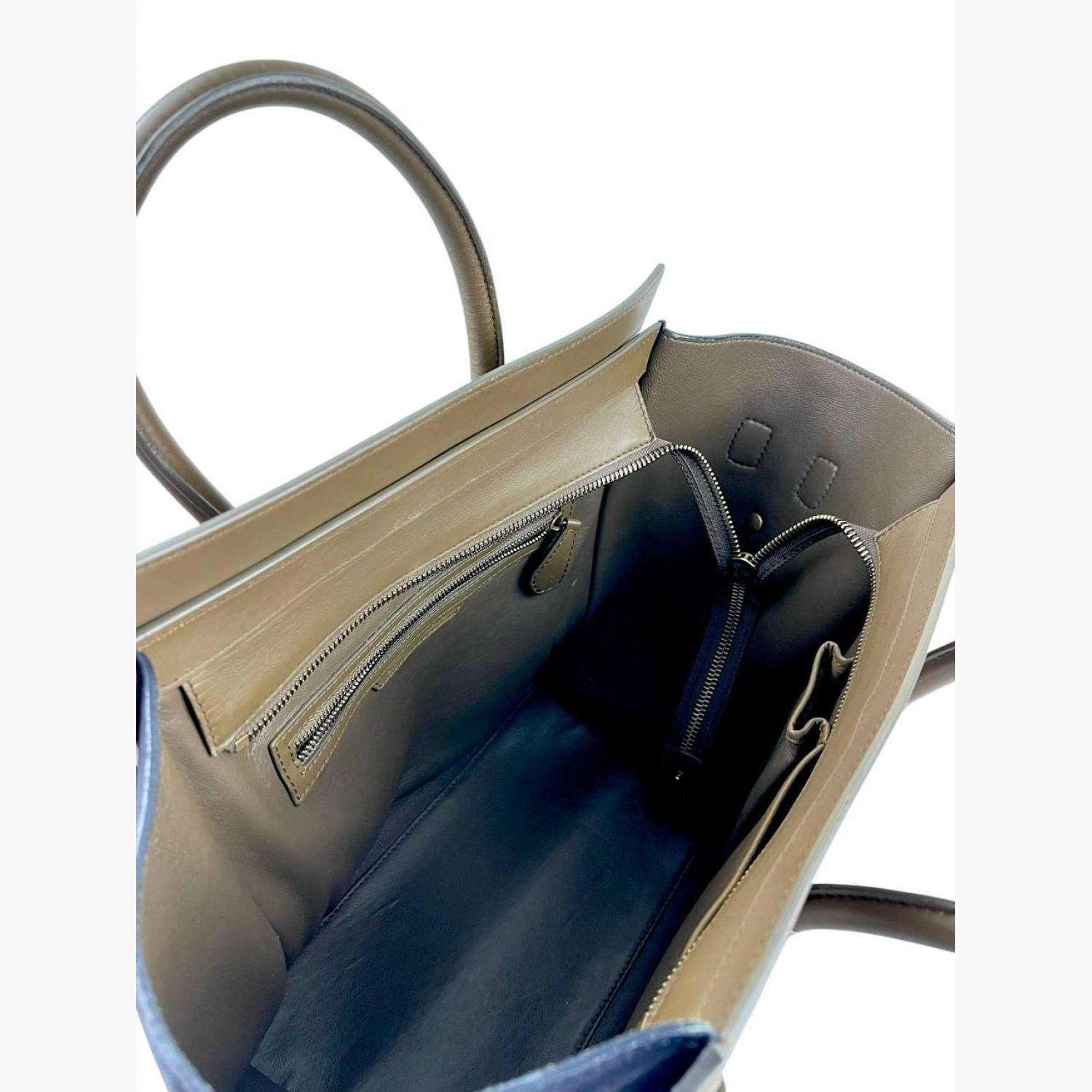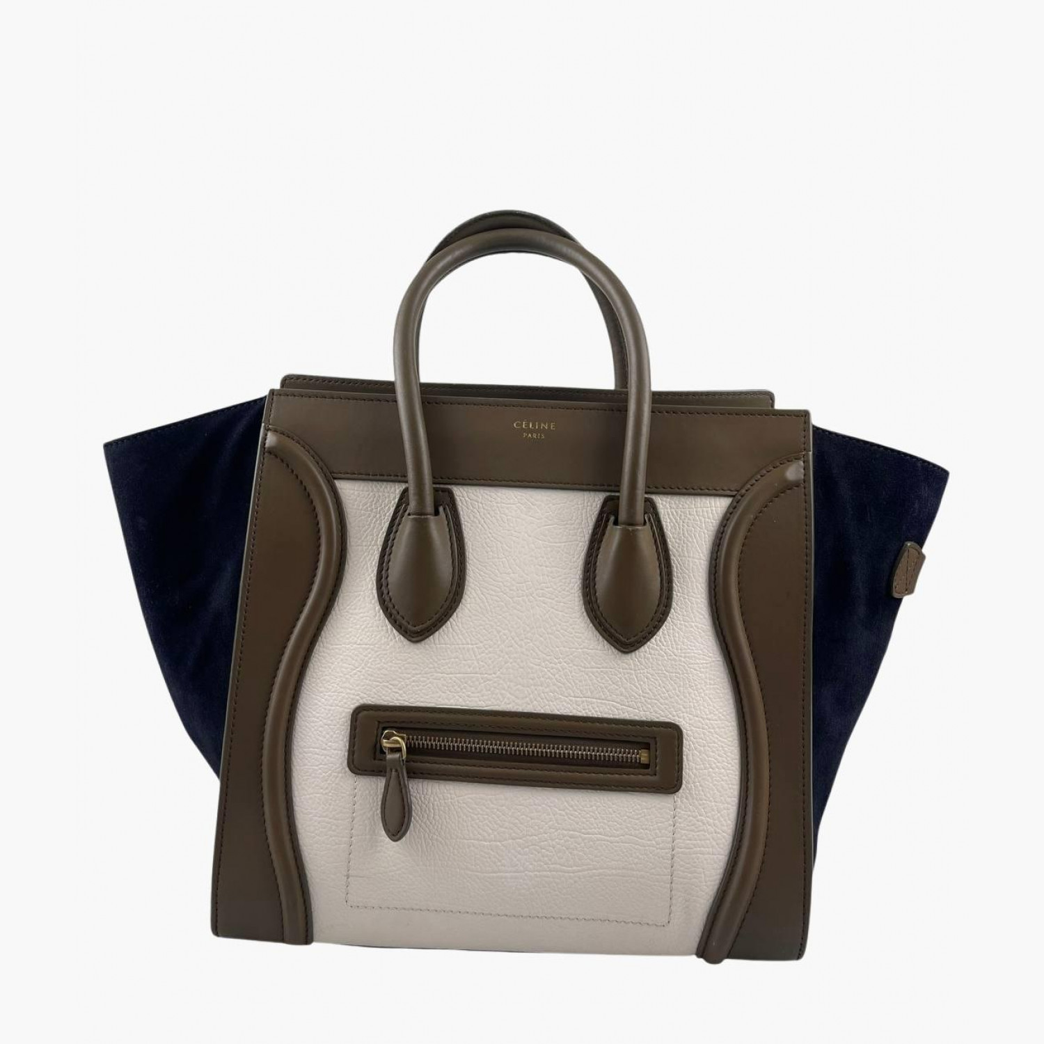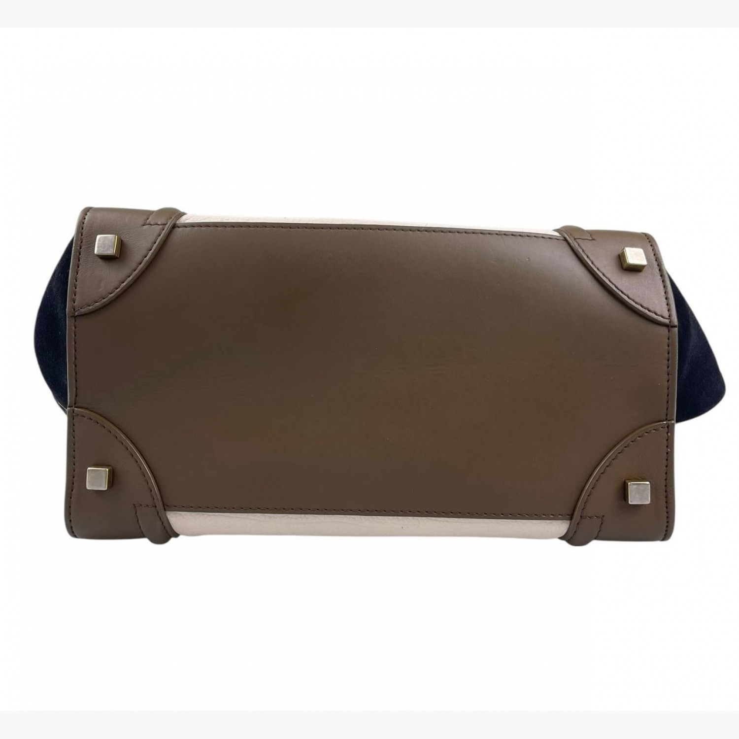 Multicoloured leather bag. One main compartment, a zip pocket, and two open pockets inside, plus an exterior zip pocket. In good condition, with wear marks.