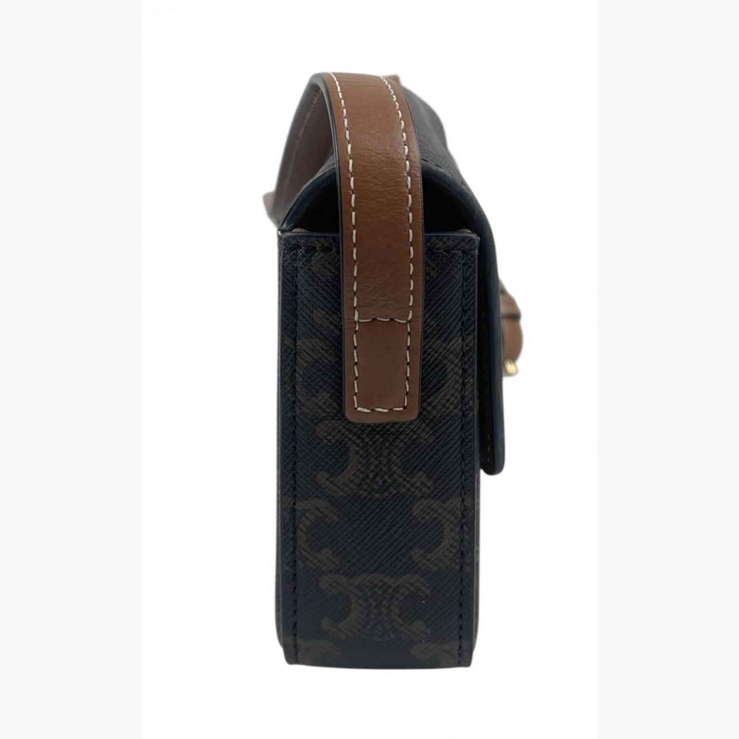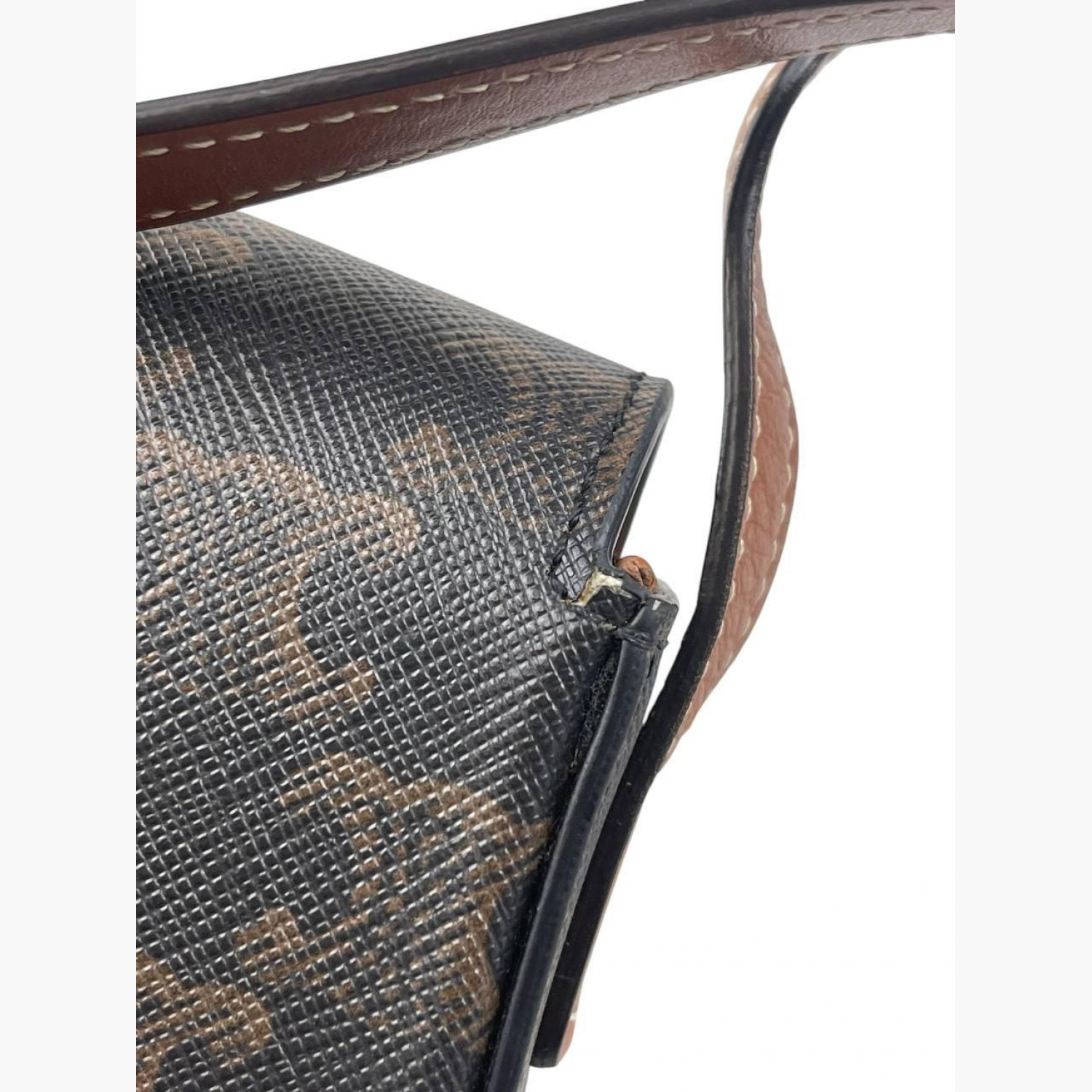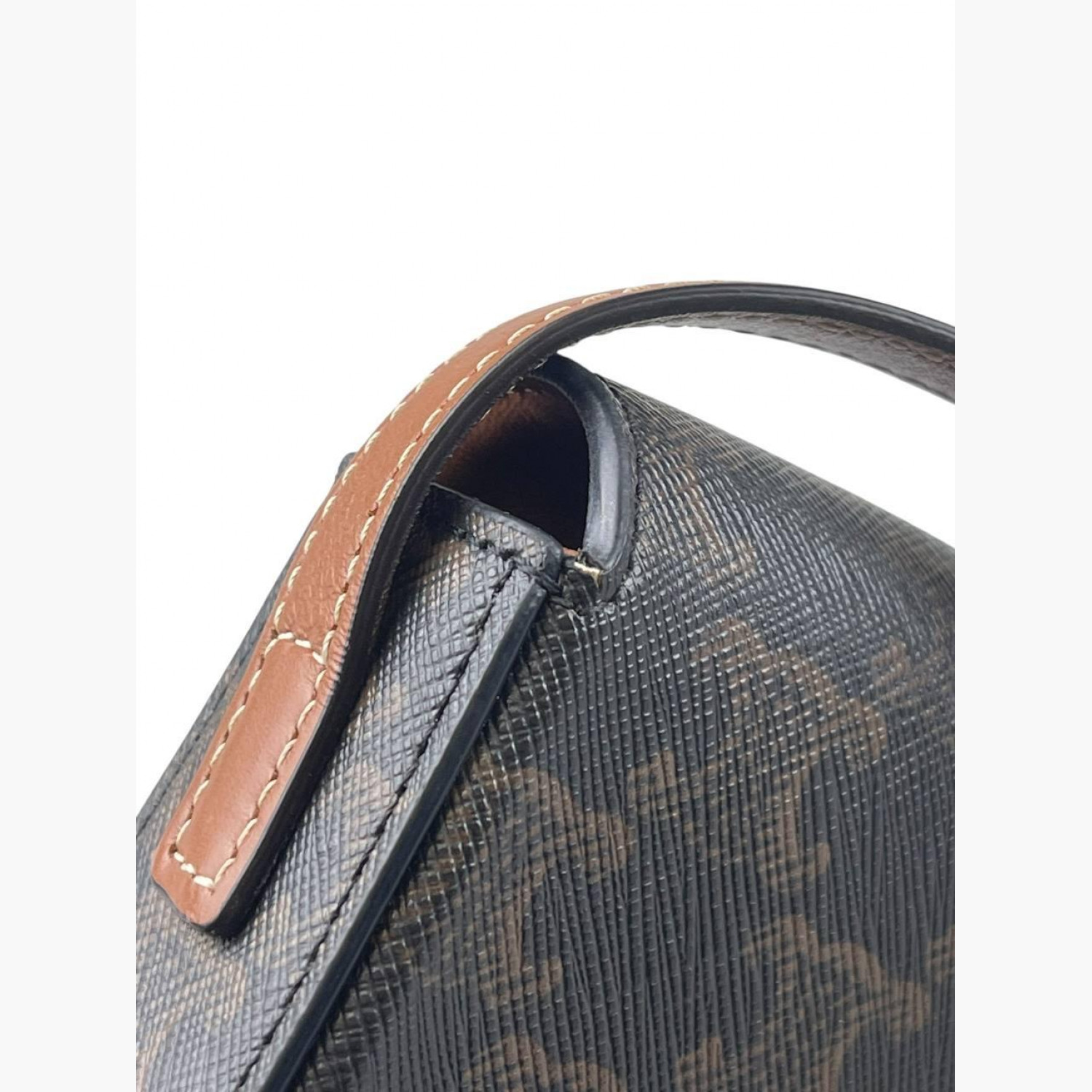 Small rectangular bag made of canvas and leather with a logo. Adjustable shoulder strap. One main compartment inside with an open pocket. In excellent condition, minor wear marks.