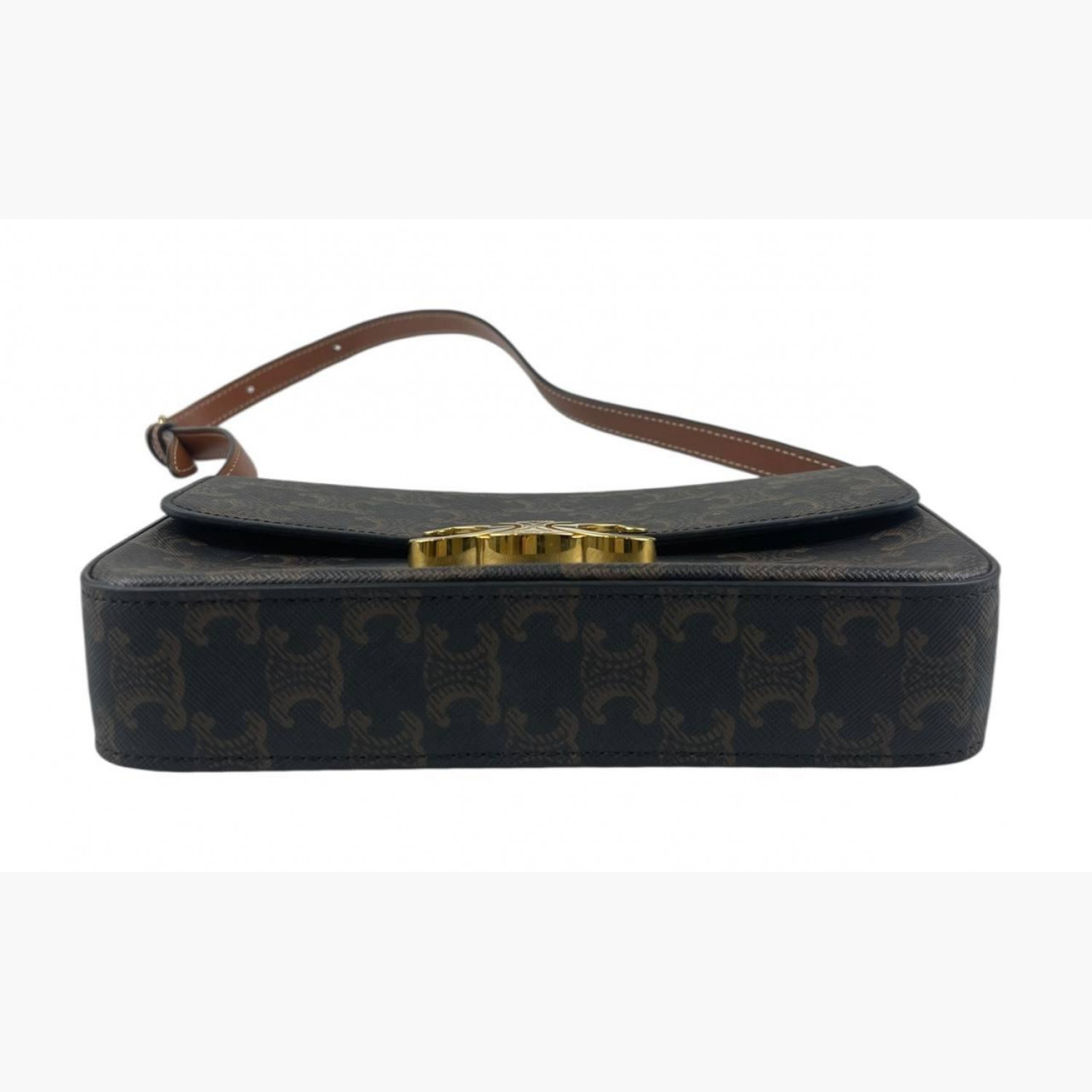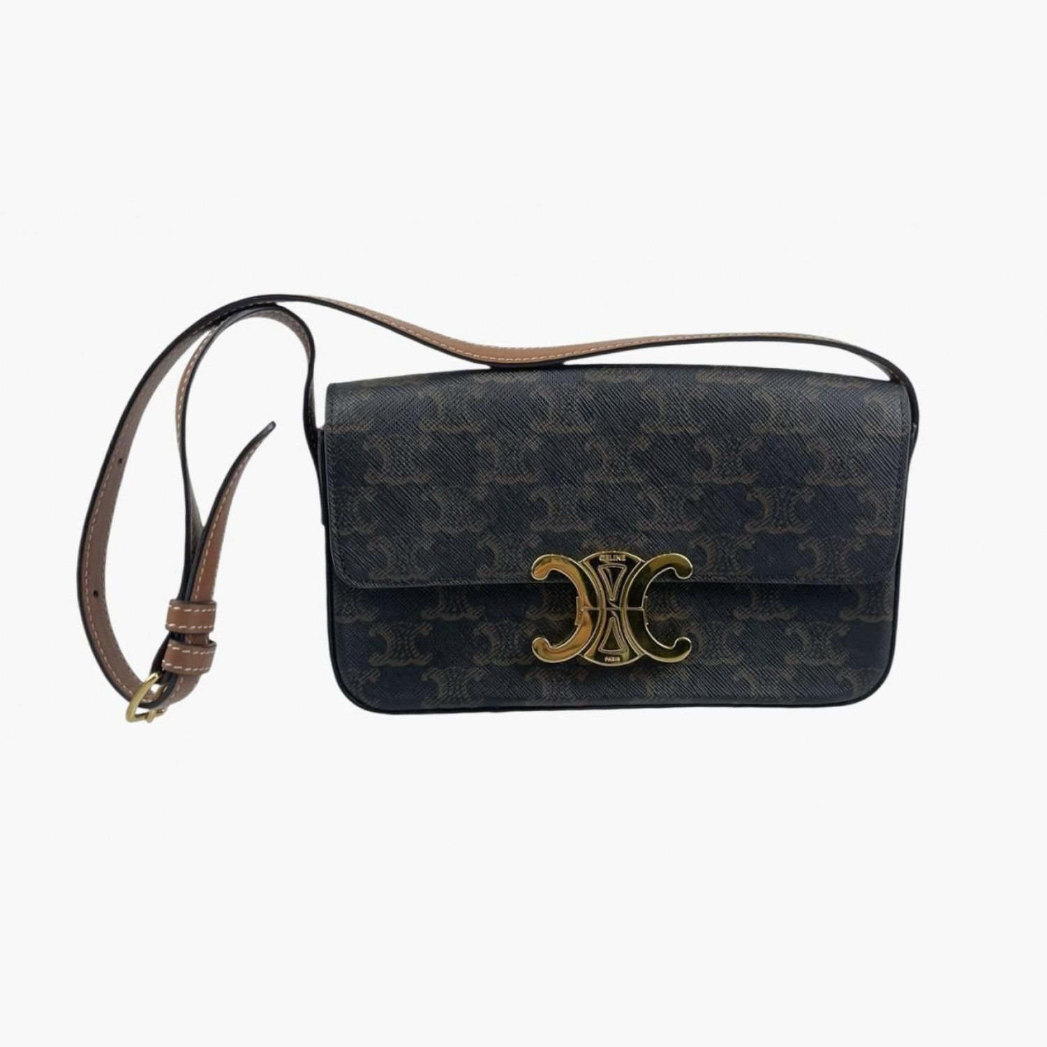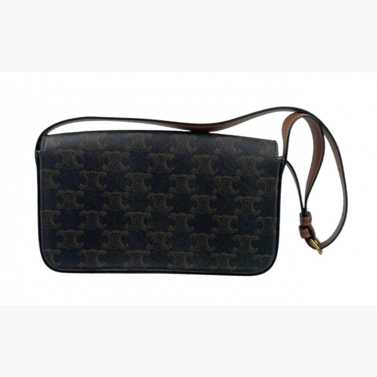 Small rectangular bag made of canvas and leather with a logo. Adjustable shoulder strap. One main compartment inside with an open pocket. In excellent condition, minor wear marks.