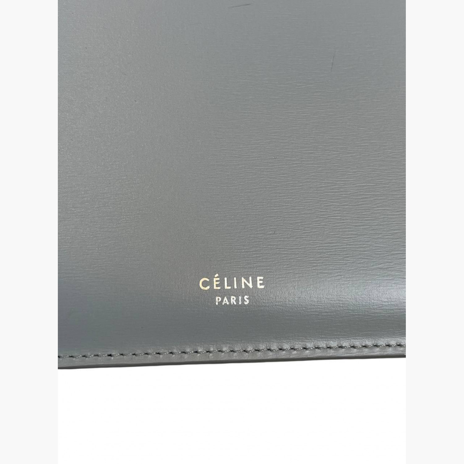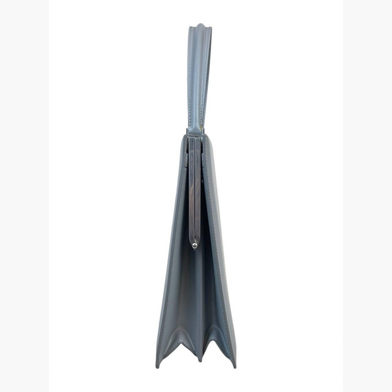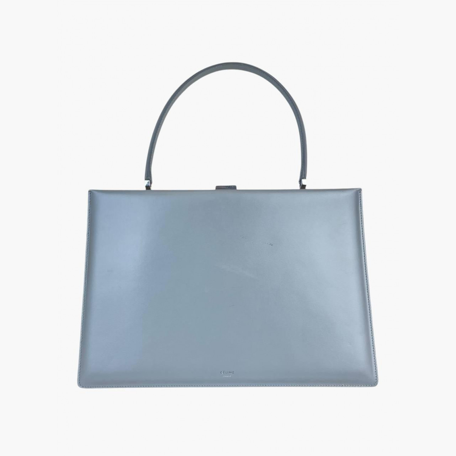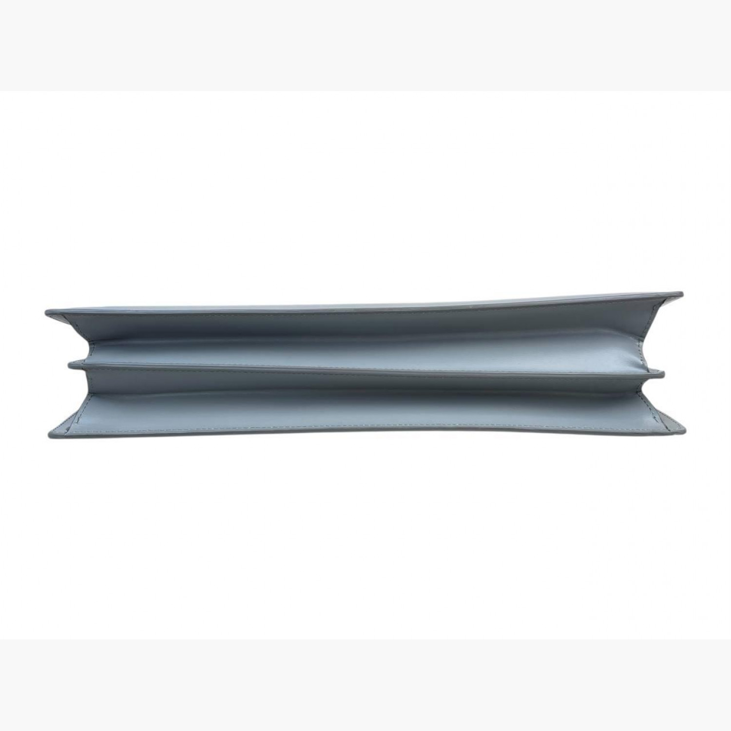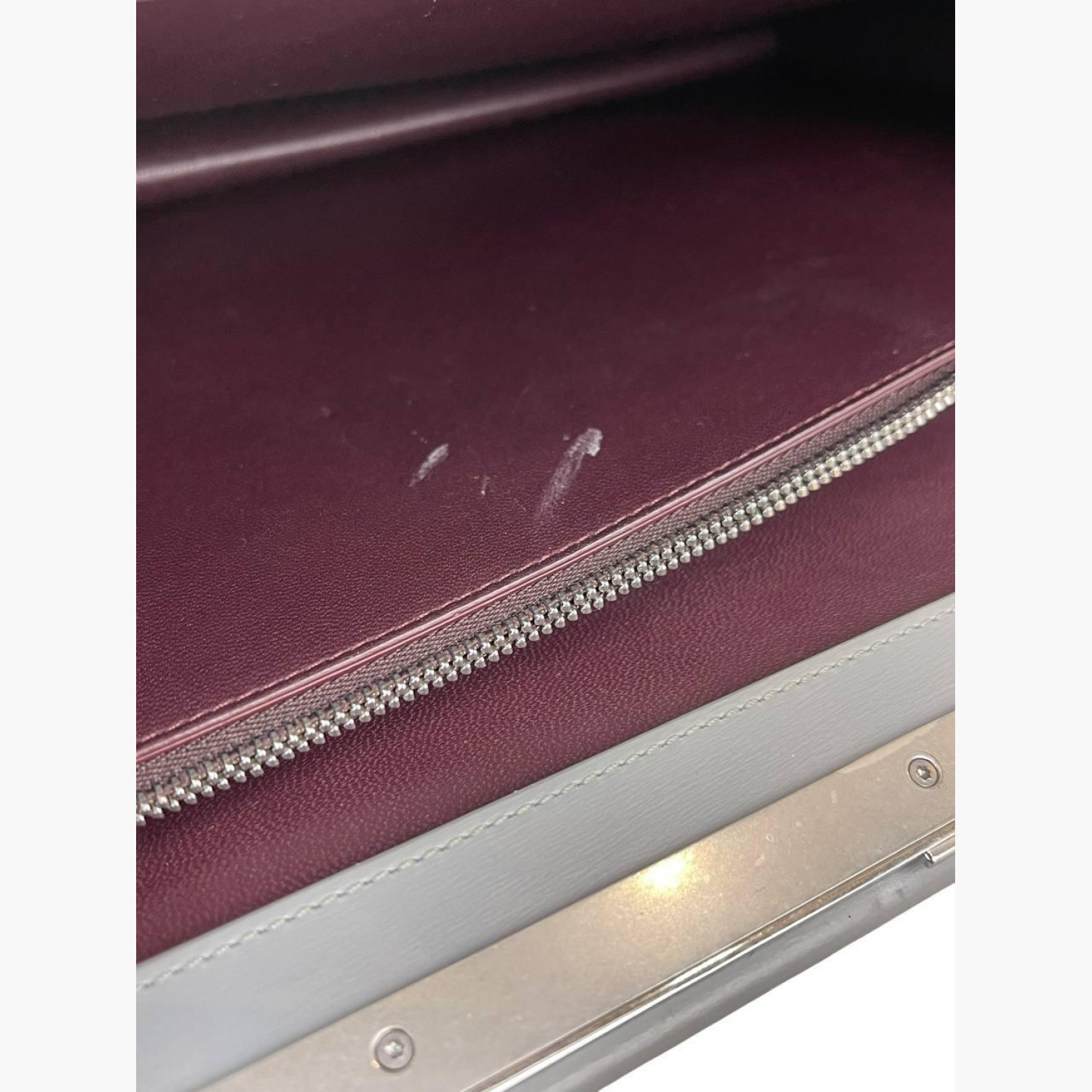 Light grey leather bag. Inside are two main compartments with a zip pocket between them. In good condition, with stains.