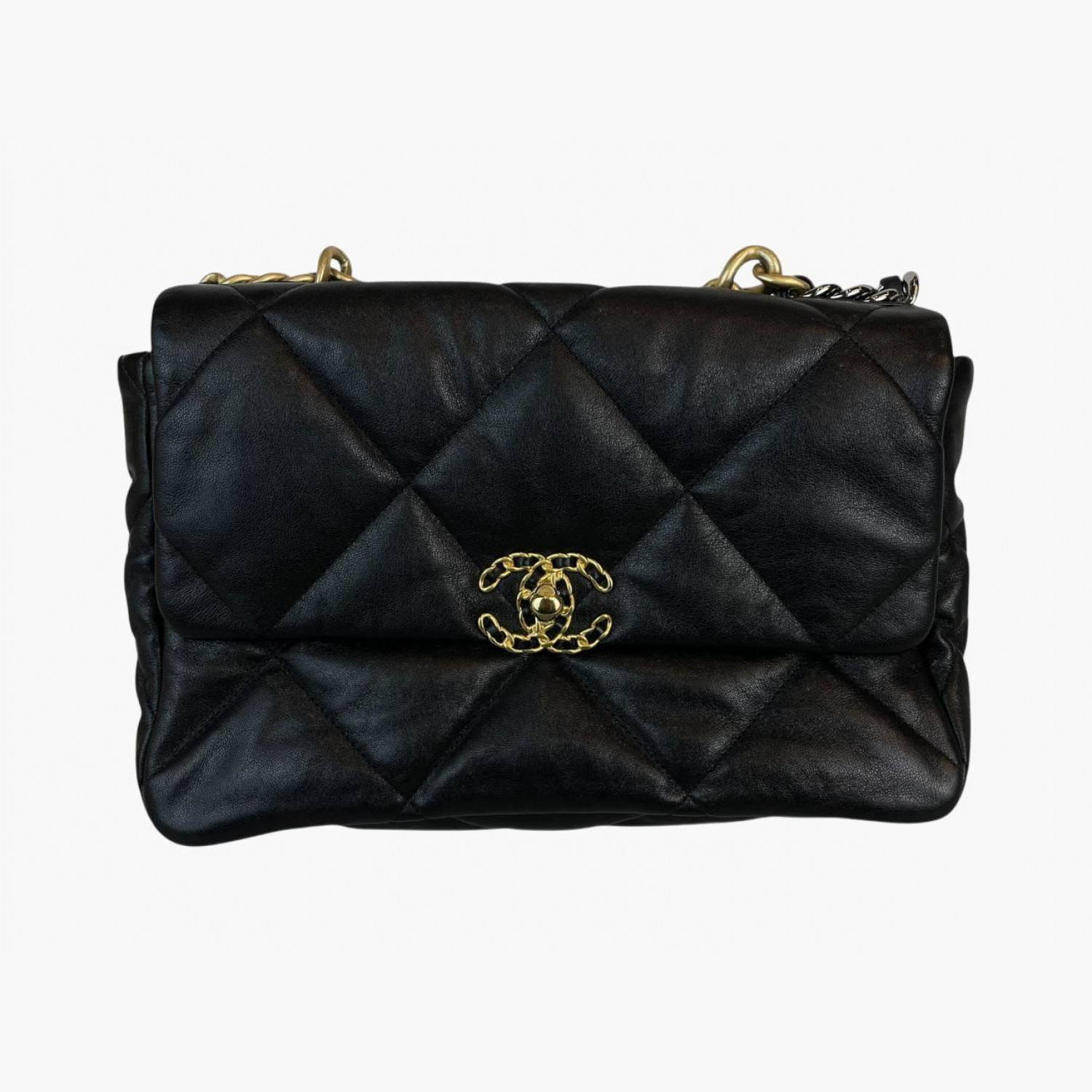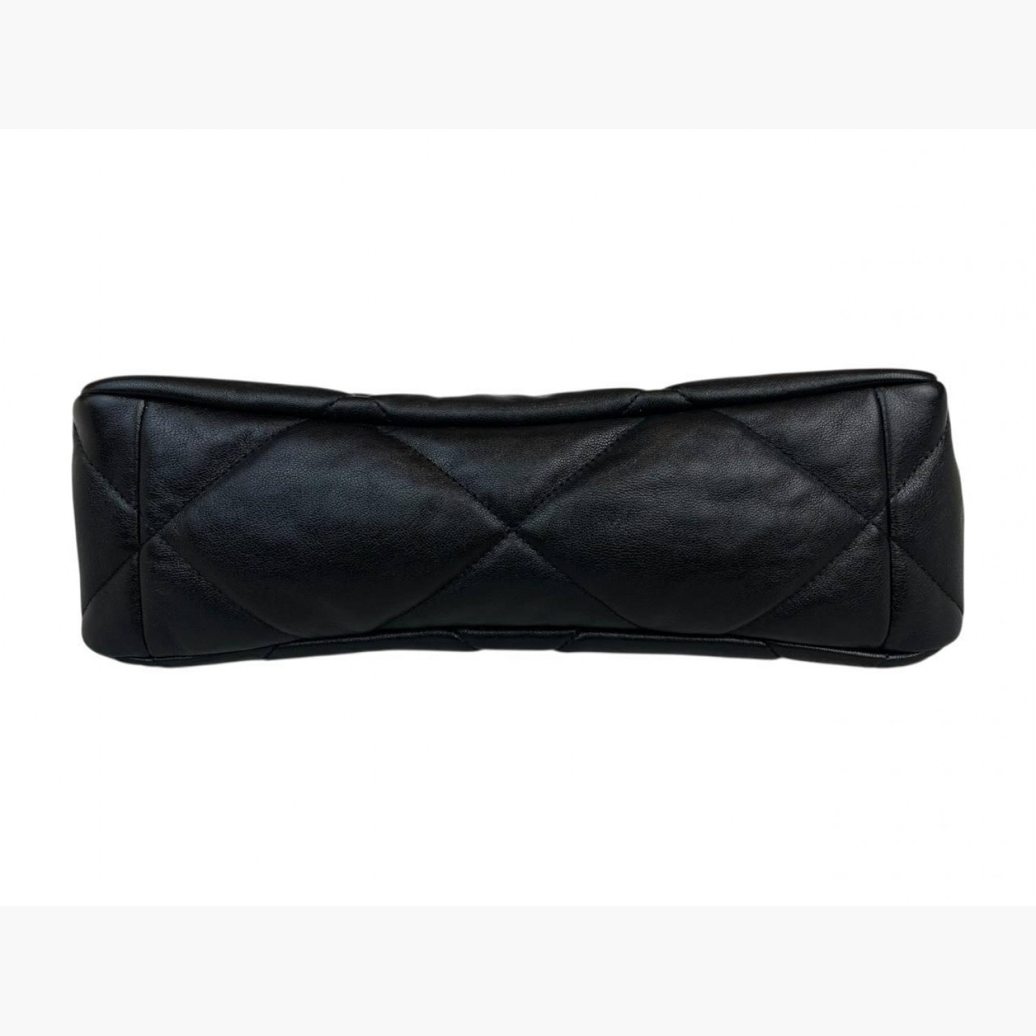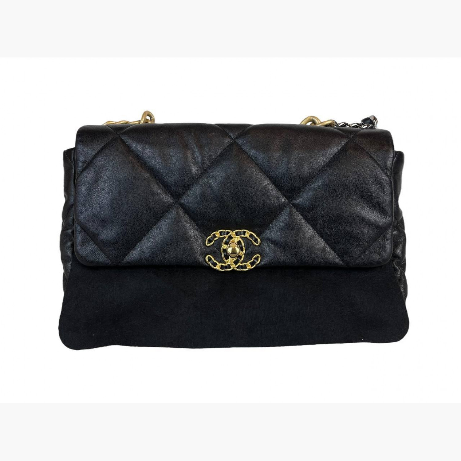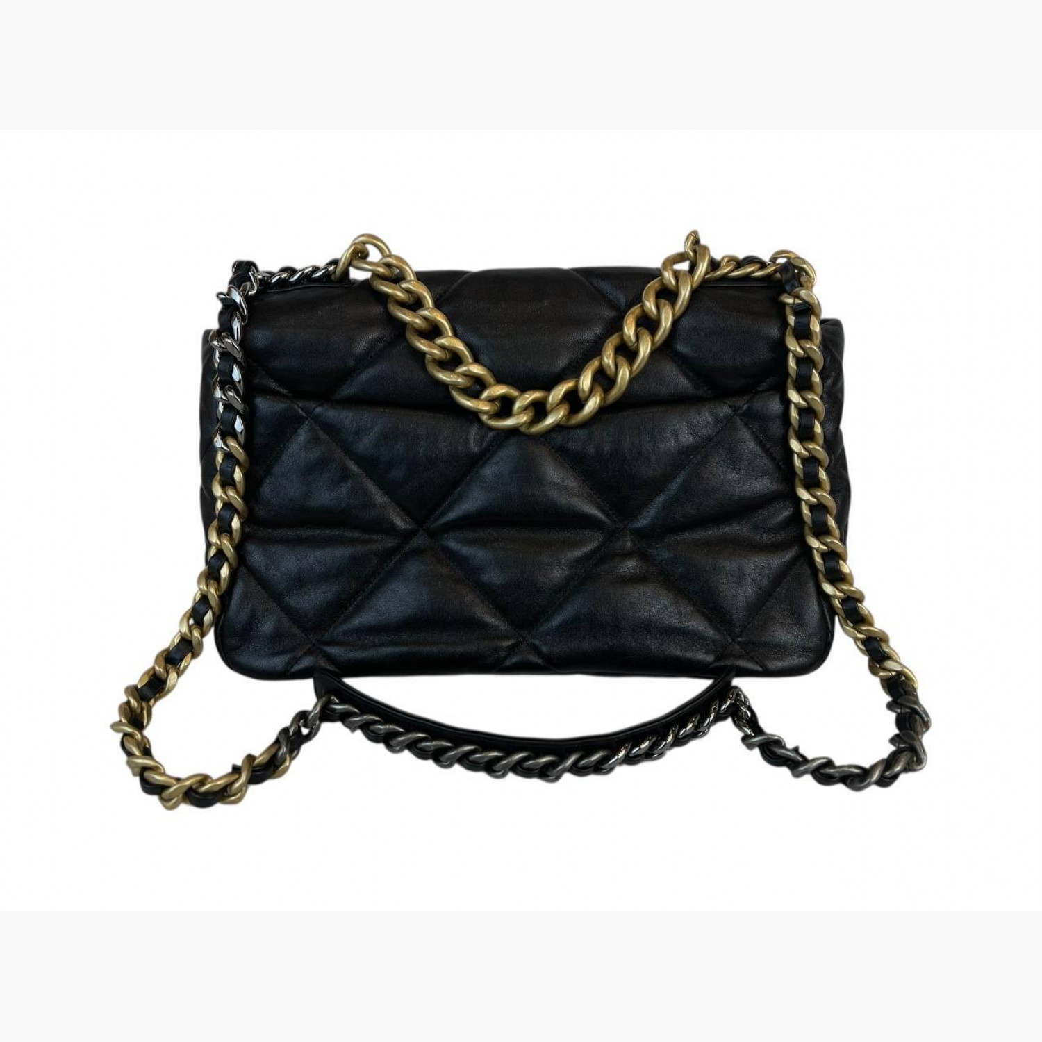 Black leather bag with a large gold and silver metal chain. One main compartment inside with a zip pocket, and an open magnetic pocket on the back of the bag. Comes with a textile dust bag. Absolutely new.