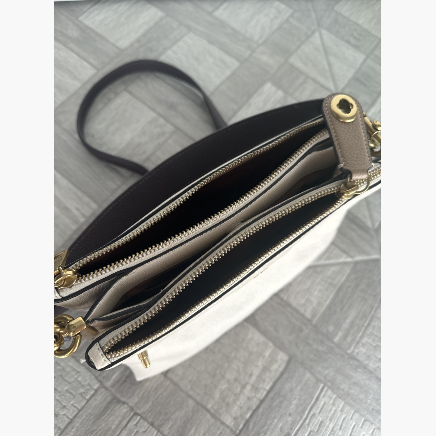 The bag was bought in 2022. Small stain on the front that can be dry cleaned.