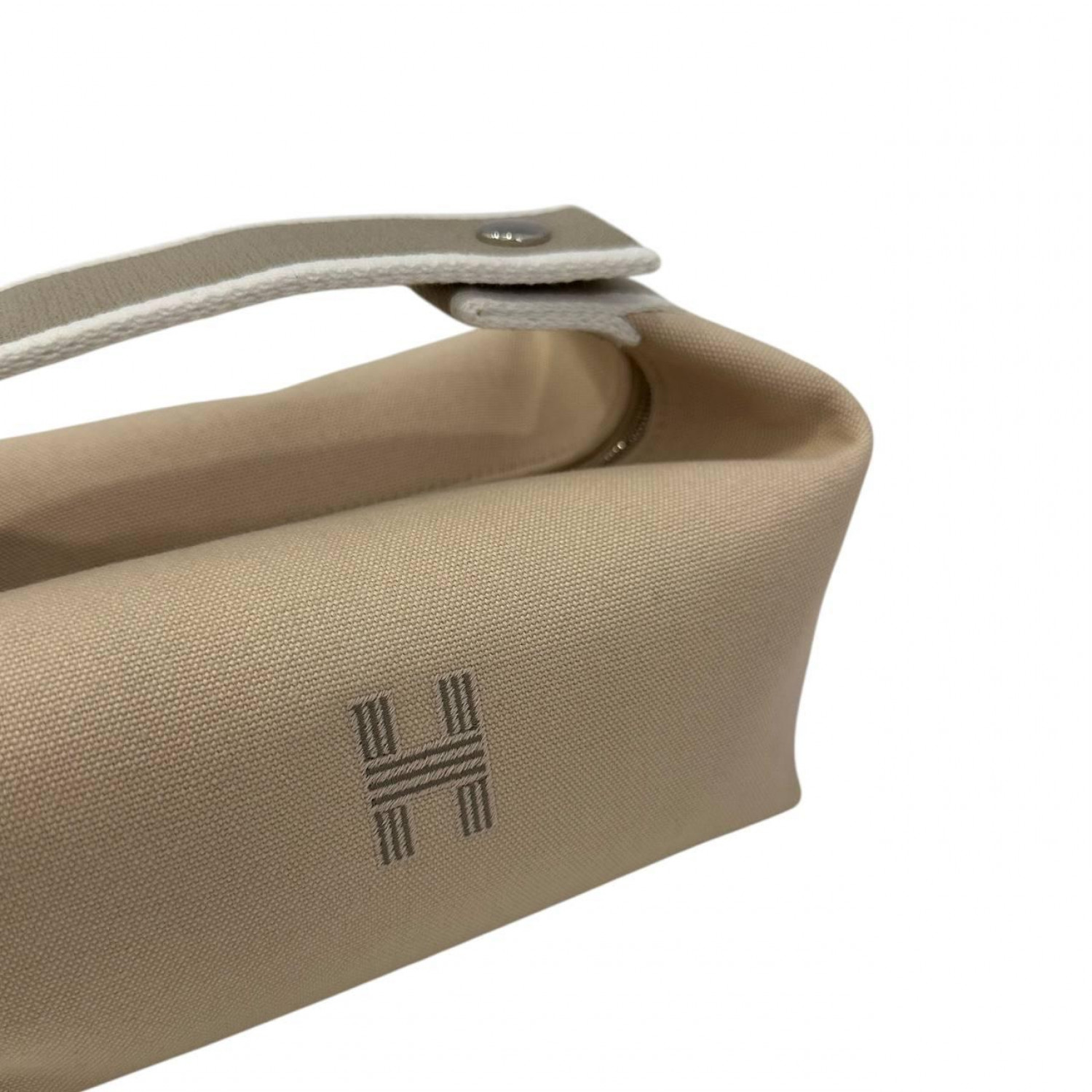 Beige textile makeup bag. One main compartment and three pockets inside. Absolutely new, no wear marks.