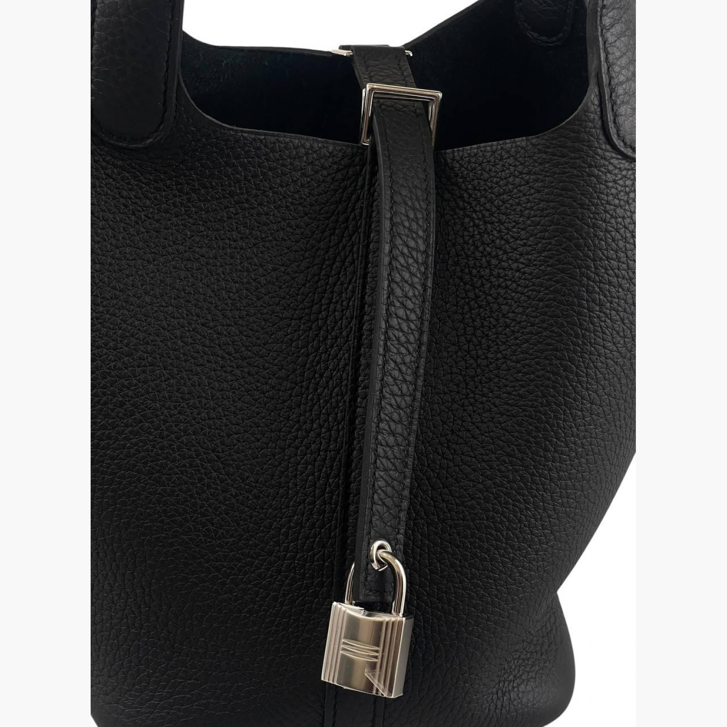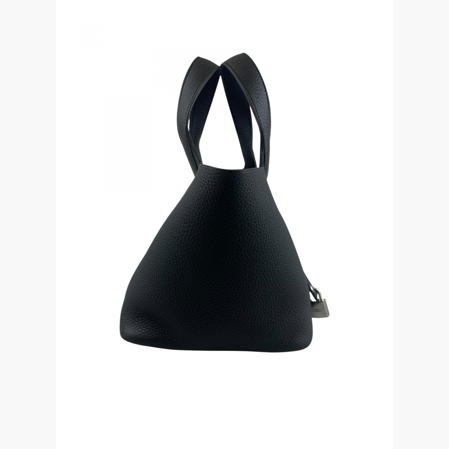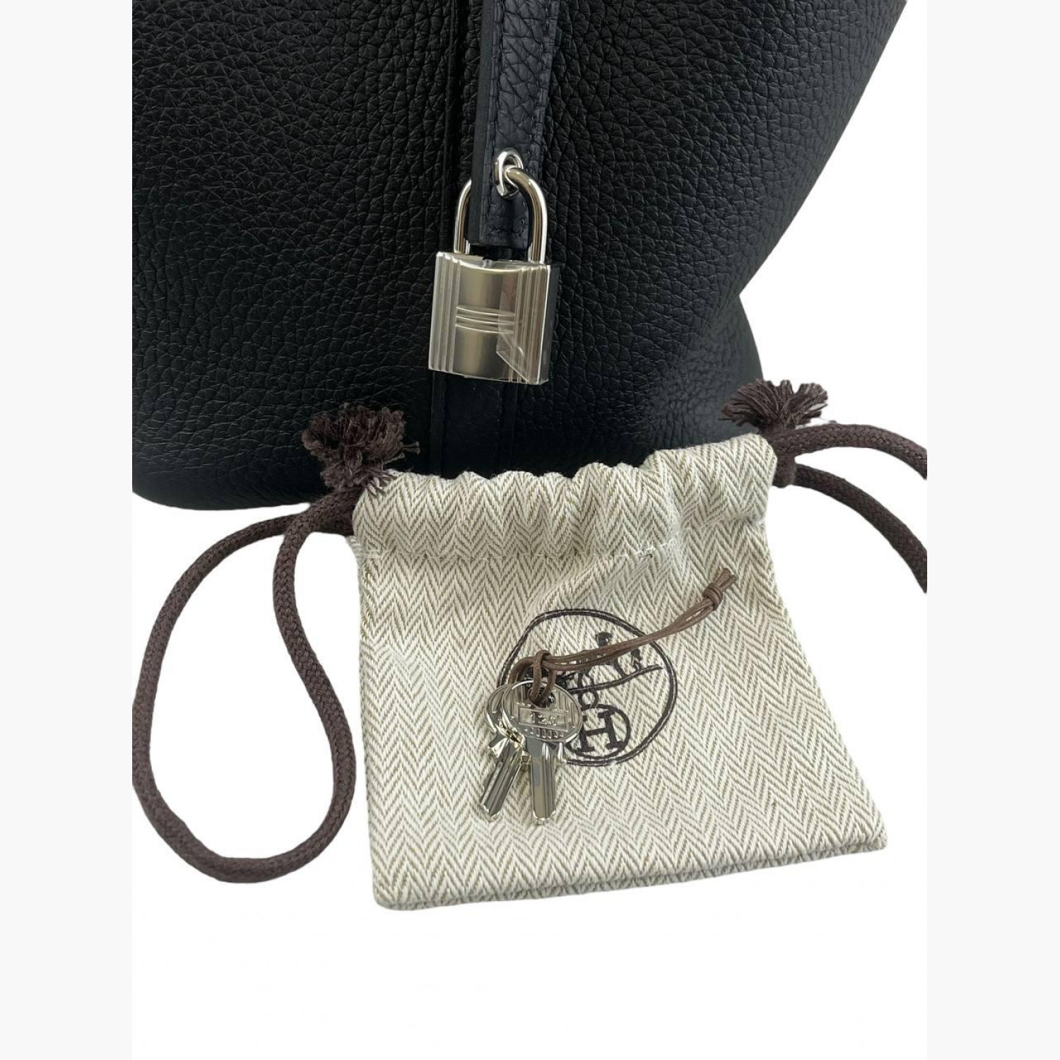 Black leather bag with keys and lock. One main compartment inside. Absolutely new.