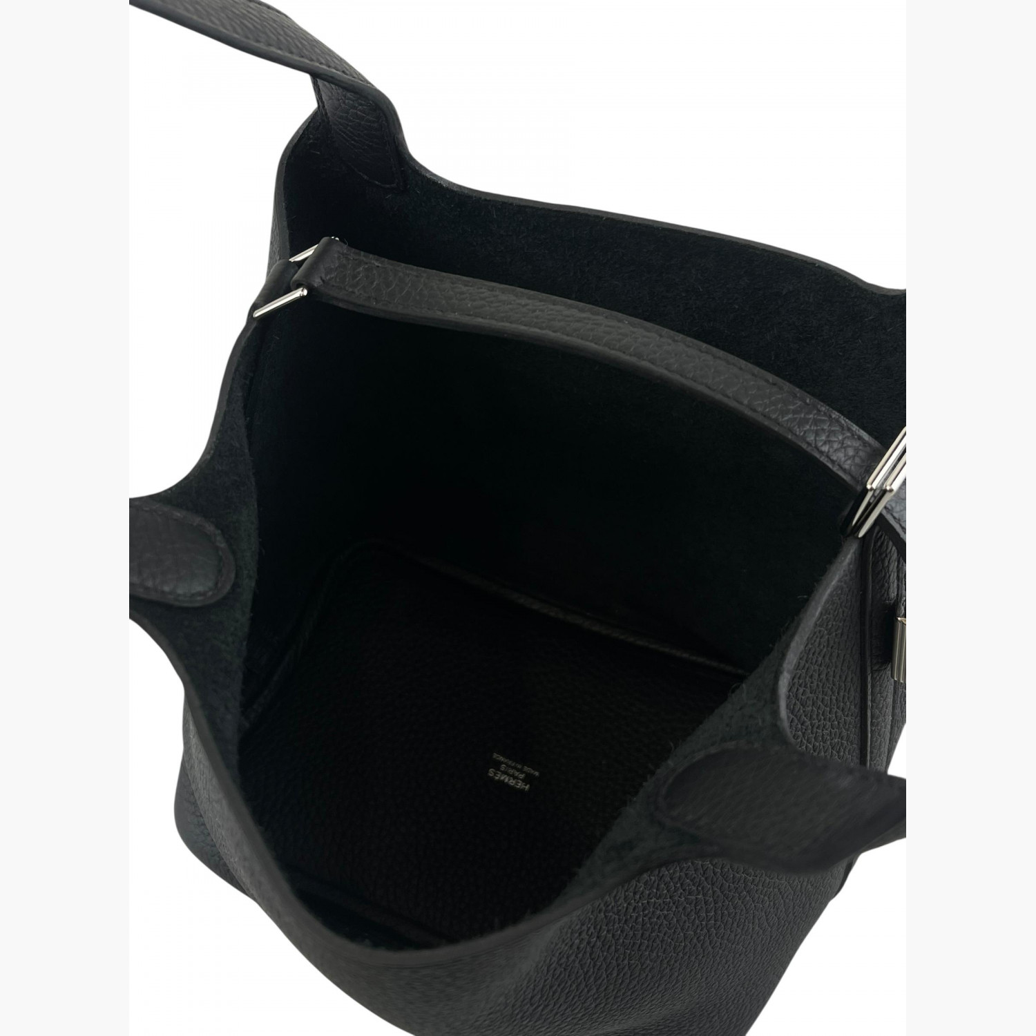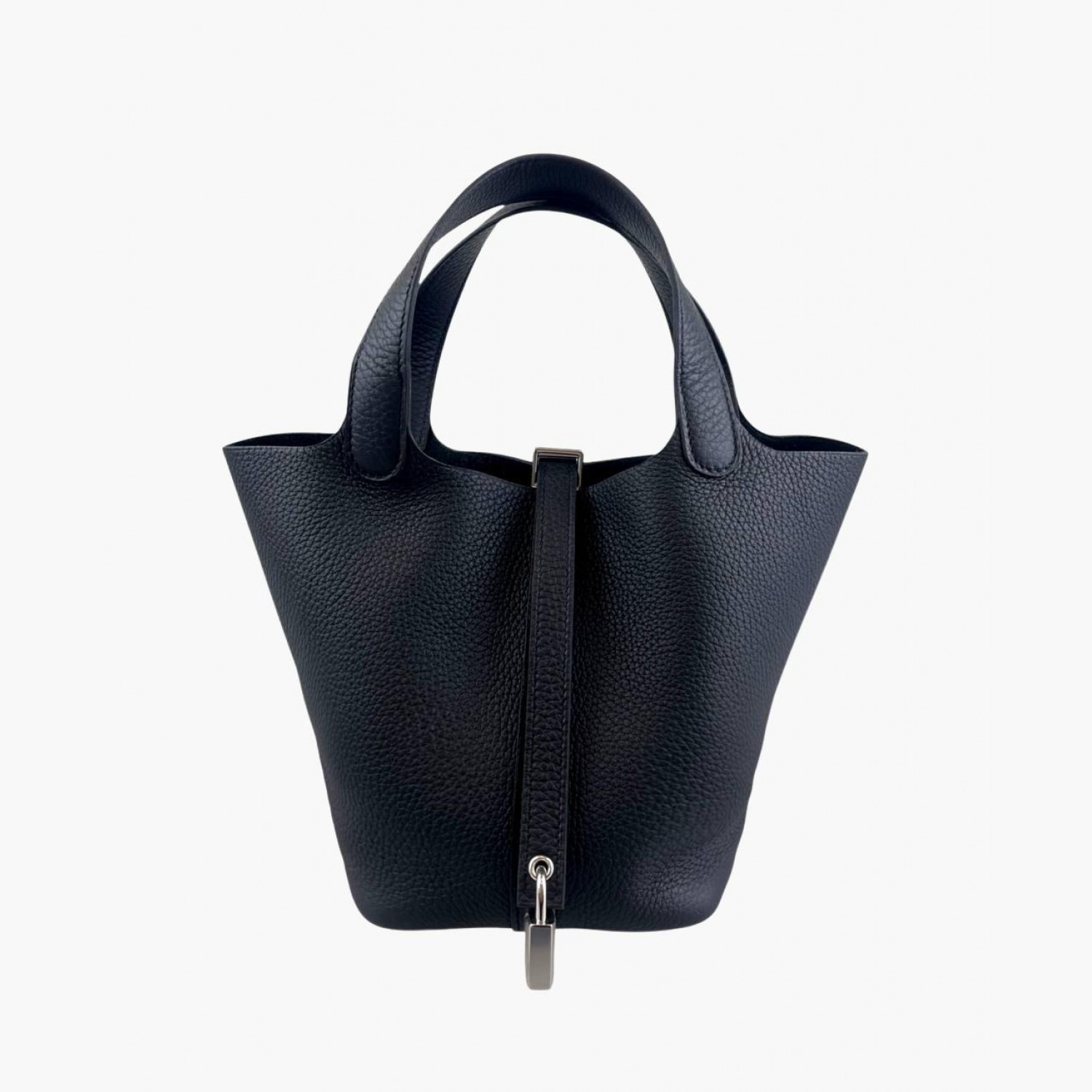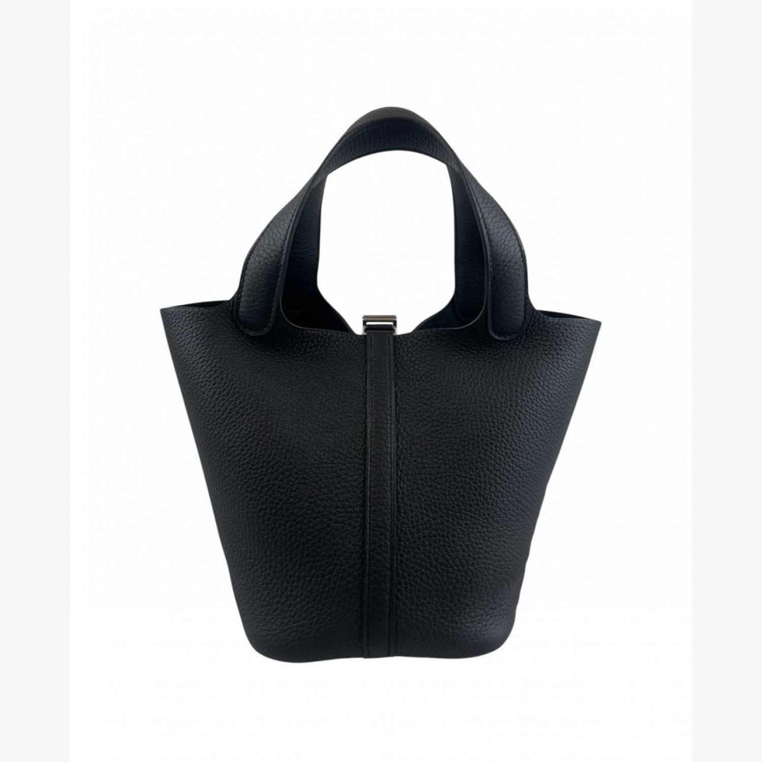 Black leather bag with keys and lock. One main compartment inside. Absolutely new.