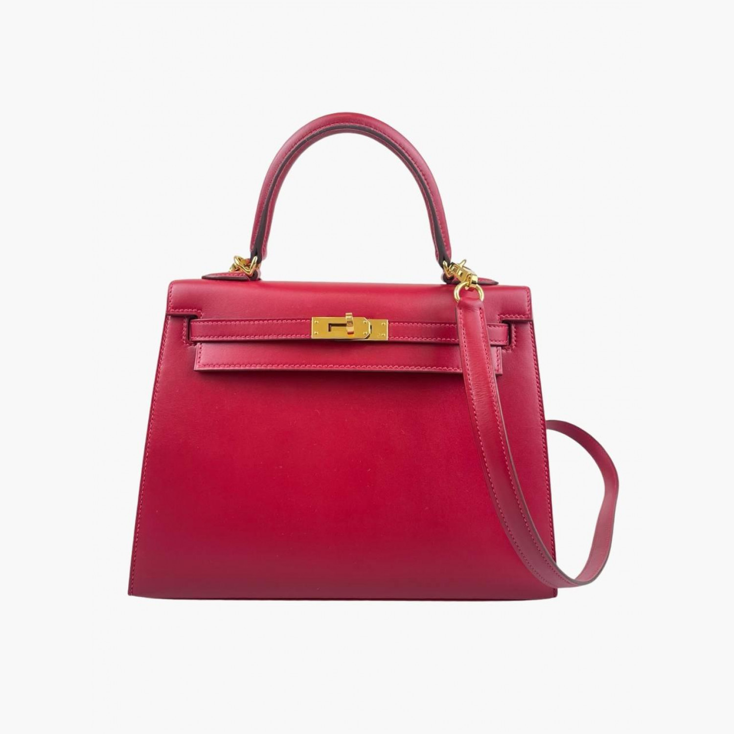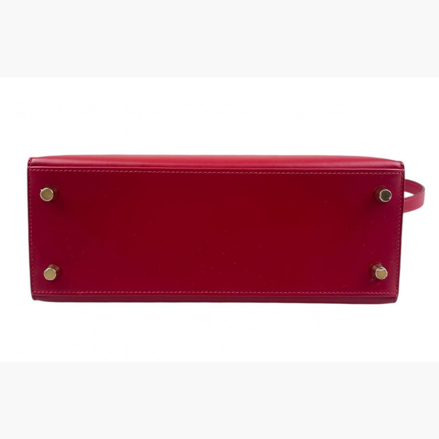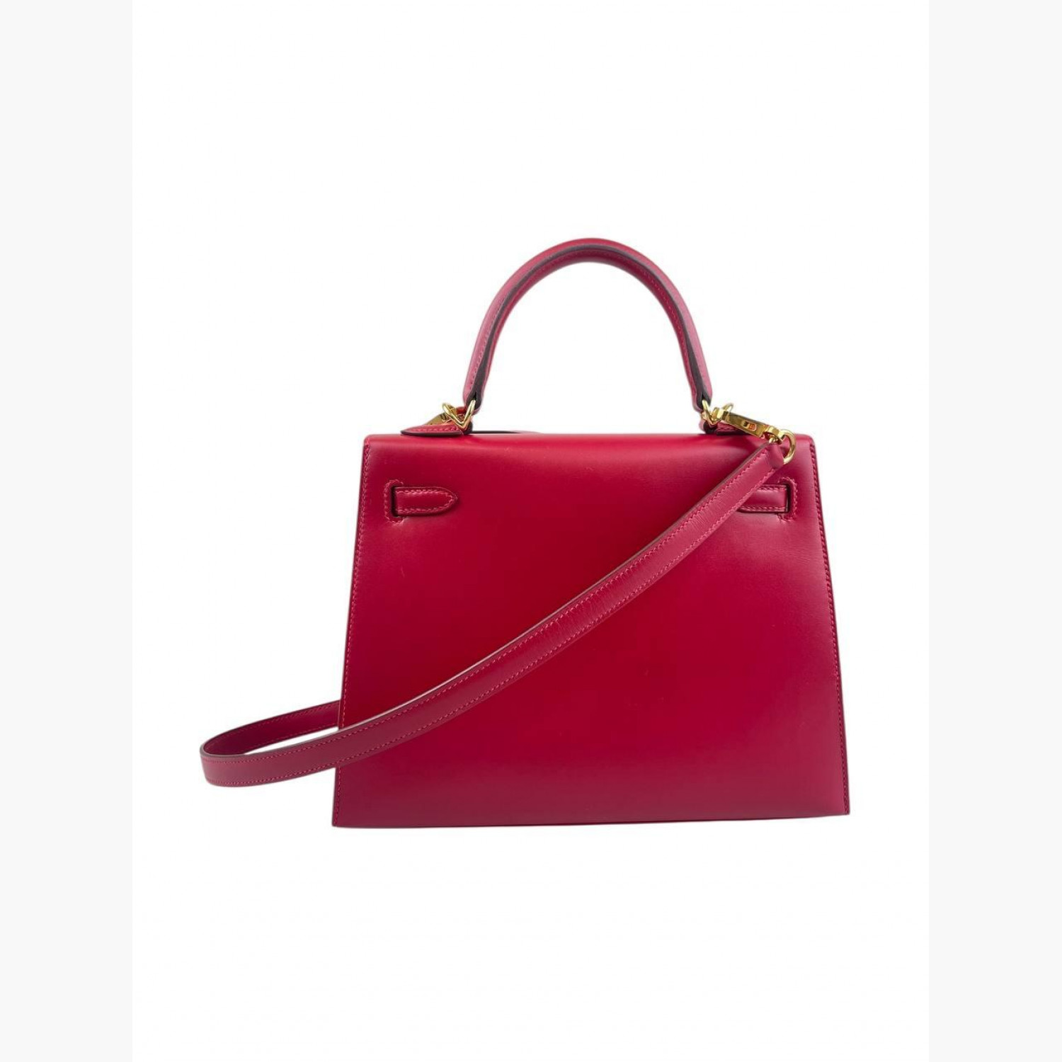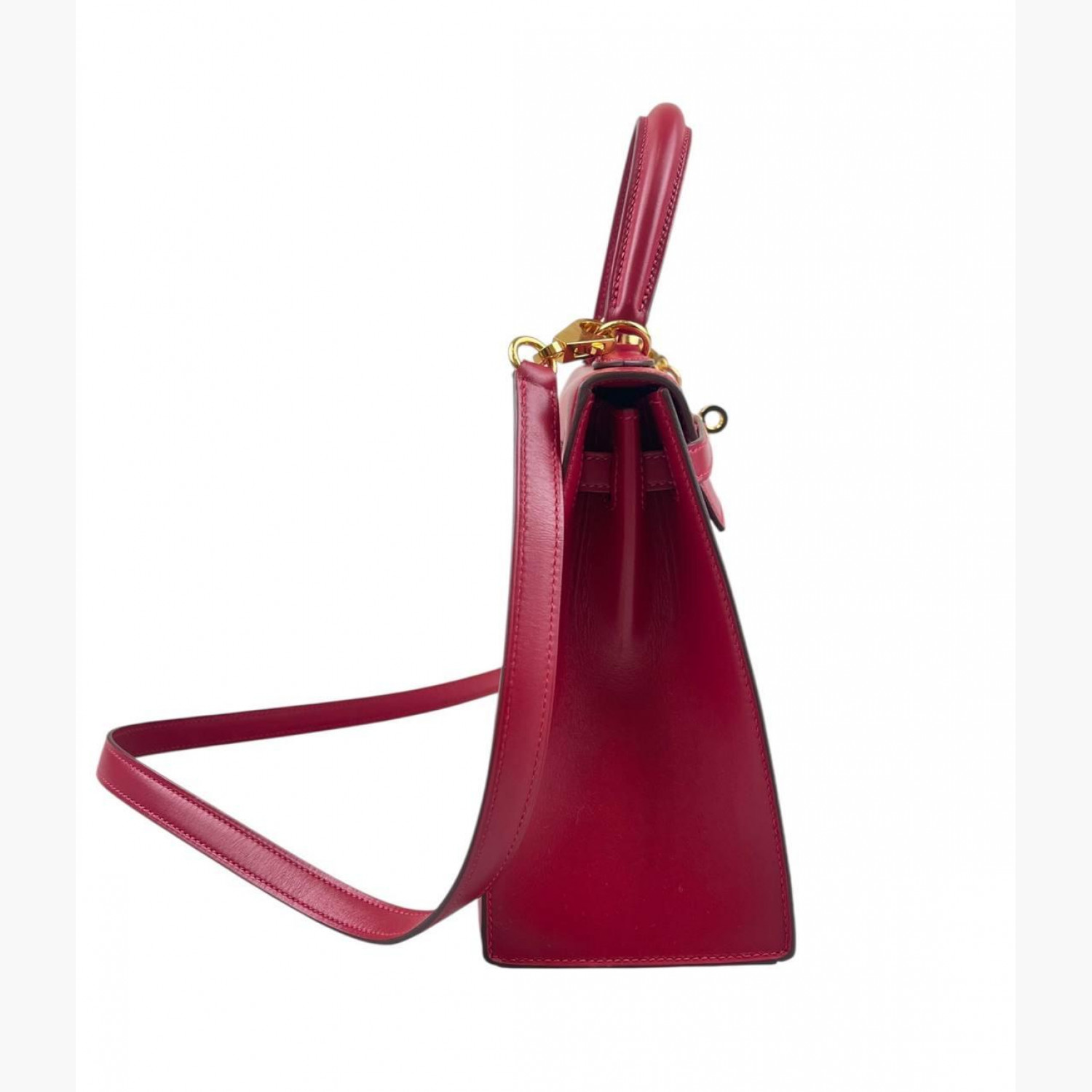 Red leather bag. One main compartment with a zip pocket and an open pocket inside. Comes with keys and a padlock. In excellent condition, with wear marks.
