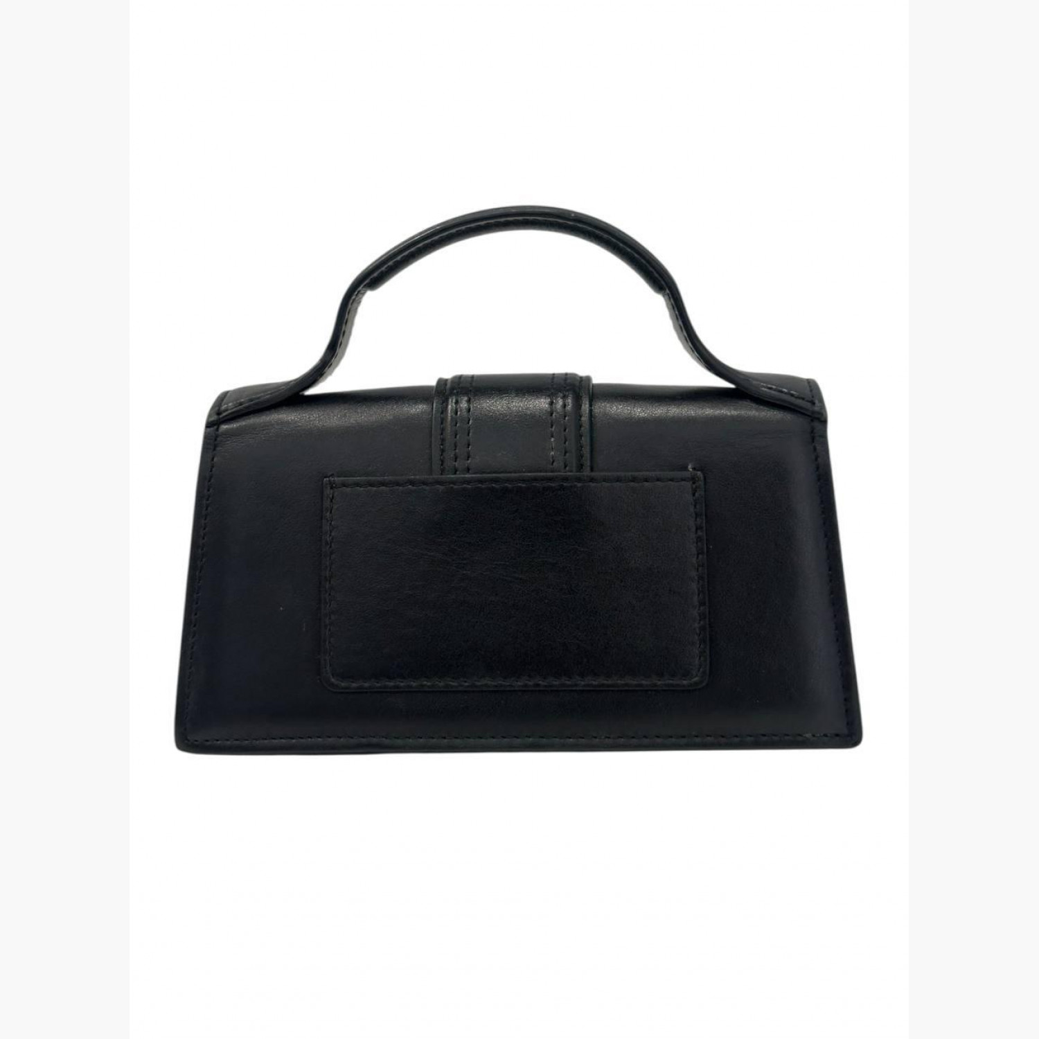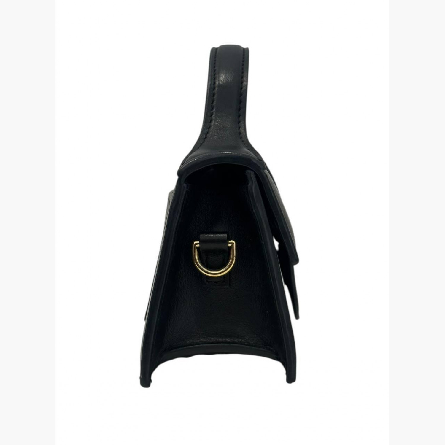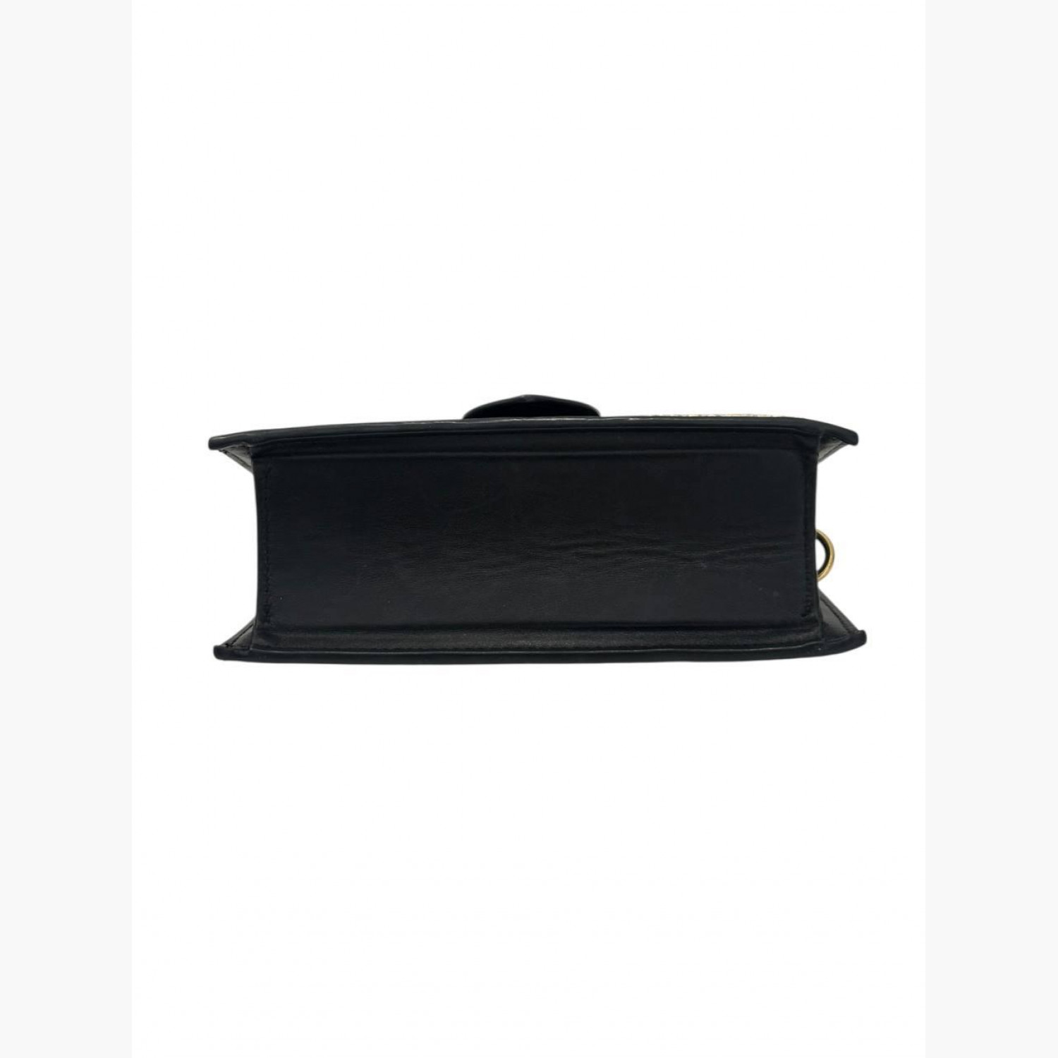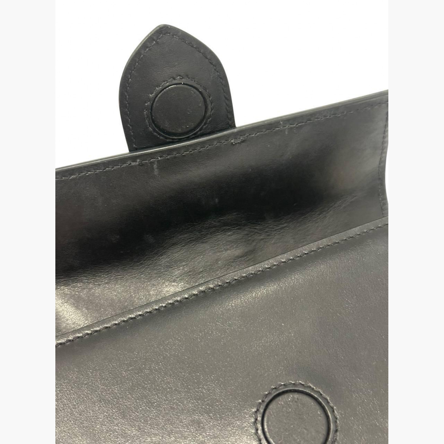 Black leather bag. One main compartment and a small back pocket. In good condition, with some scuffs. Comes with a detachable, adjustable shoulder strap.
