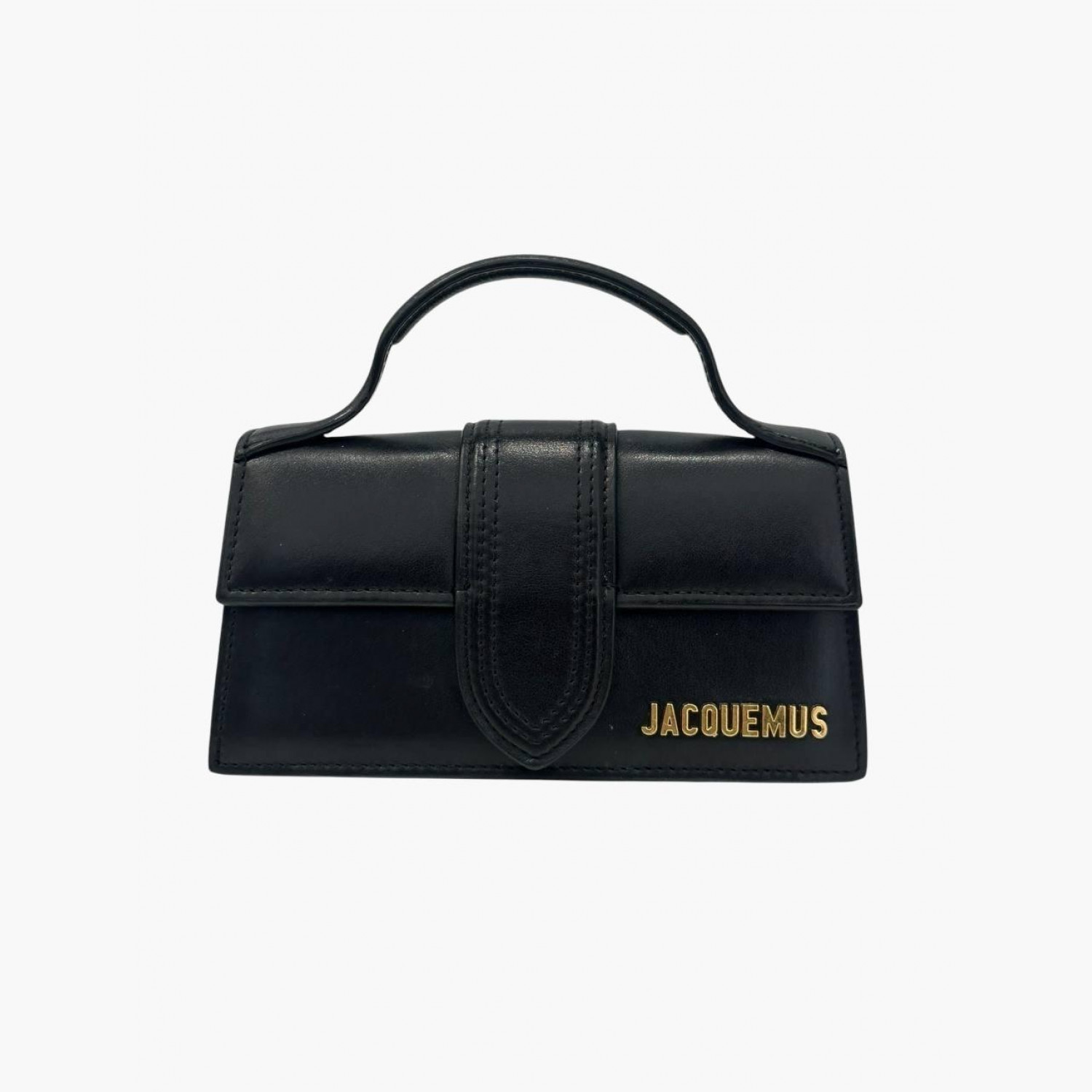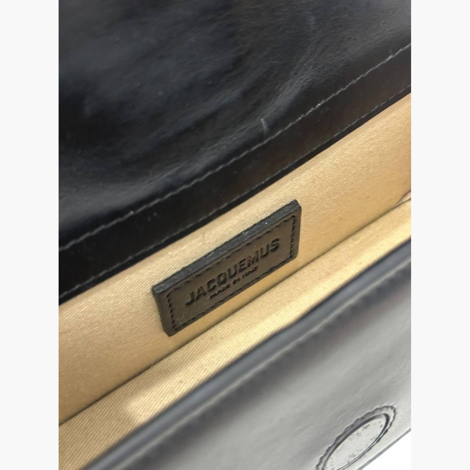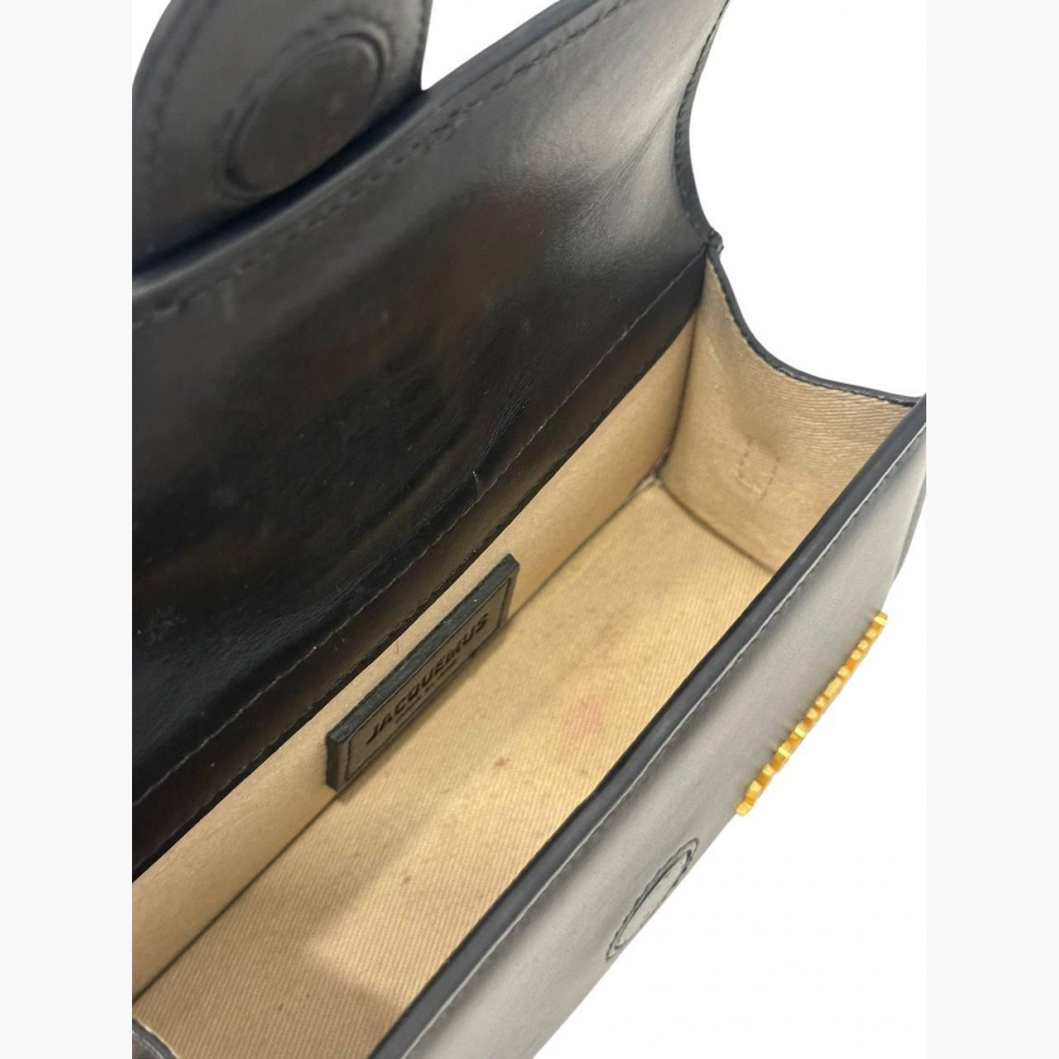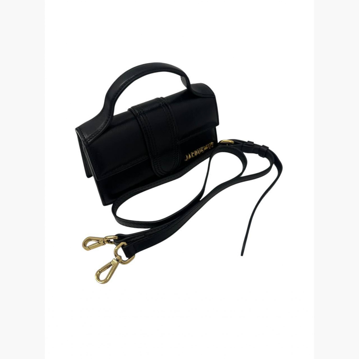 Black leather bag. One main compartment and a small back pocket. In good condition, with some scuffs. Comes with a detachable, adjustable shoulder strap.