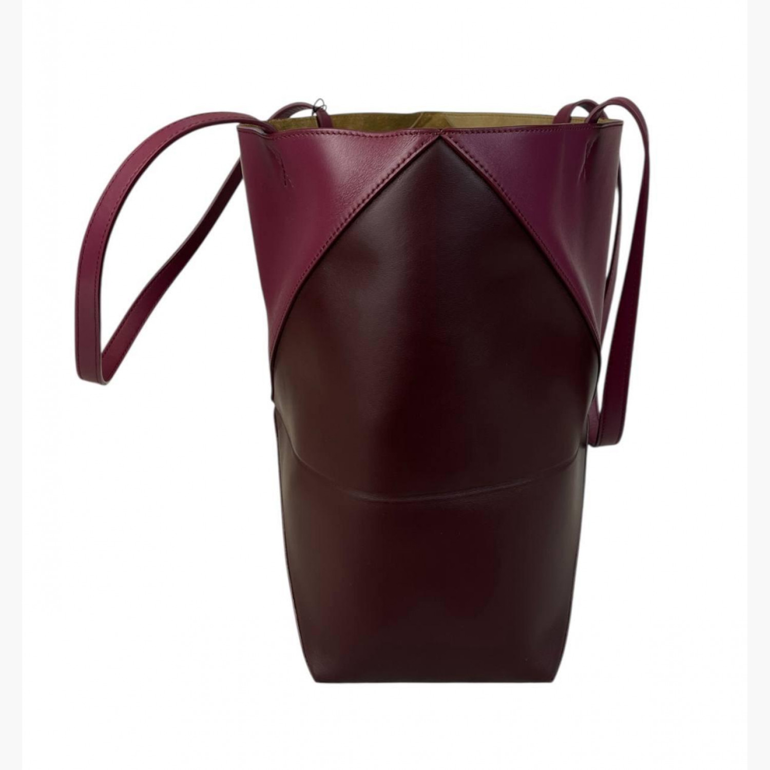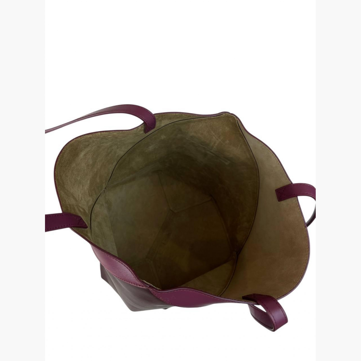 Leather shopper bag in two shades of purple. Inside, one main compartment without pockets. In excellent condition, with minor wear marks.