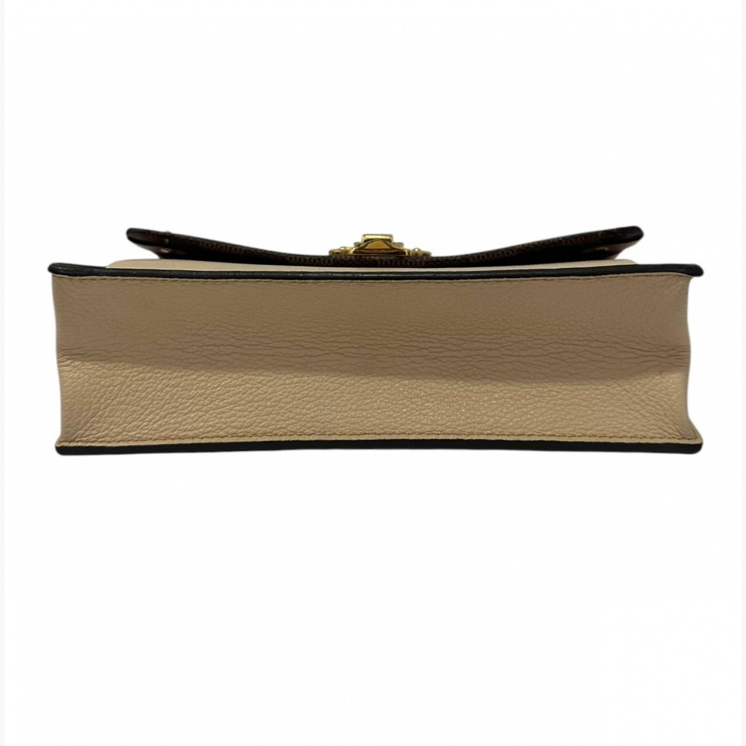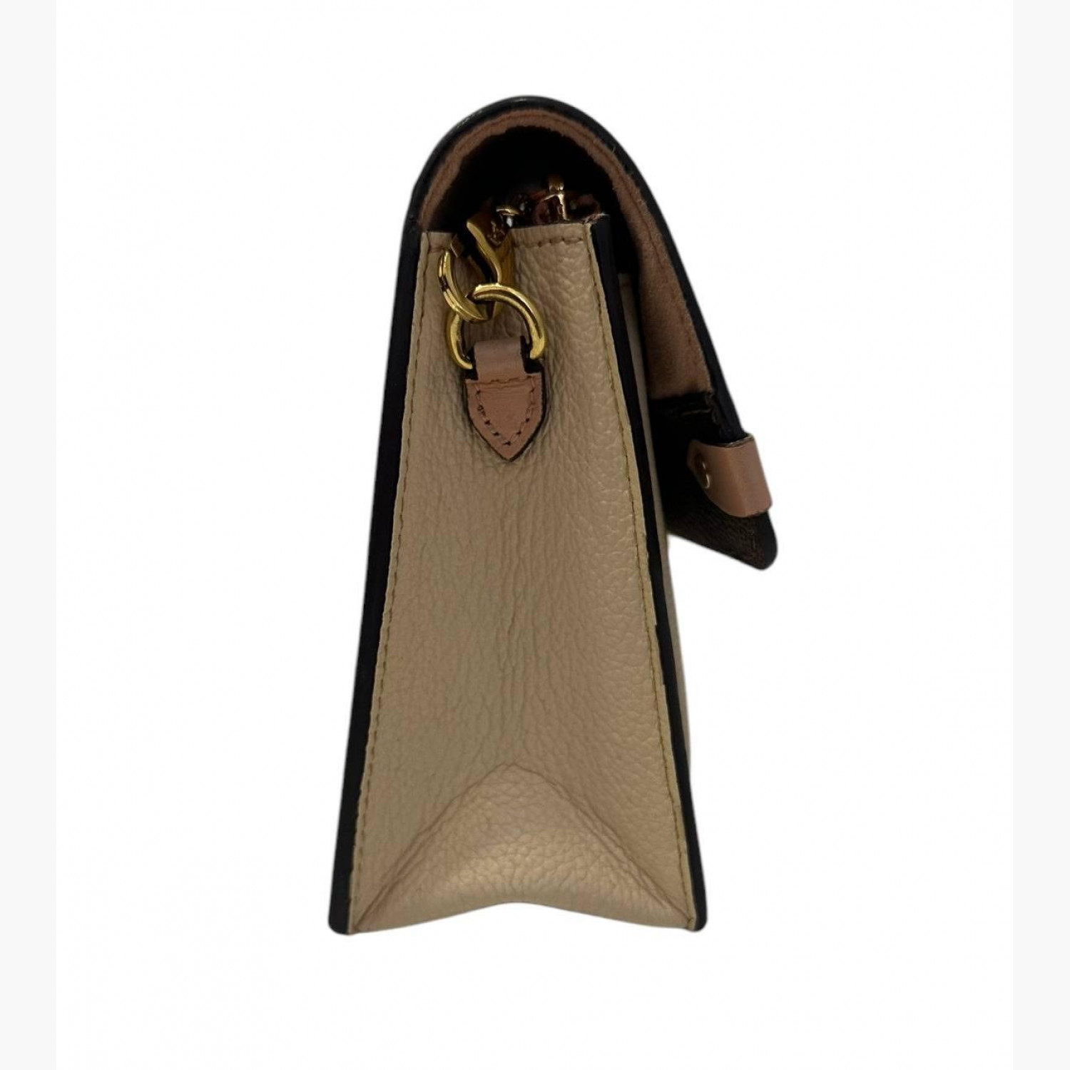 Brown bag made of canvas and leather. Three main compartments, a zippered pocket and several compartments for cards inside. In good condition, scuffs on the hardware and leather.