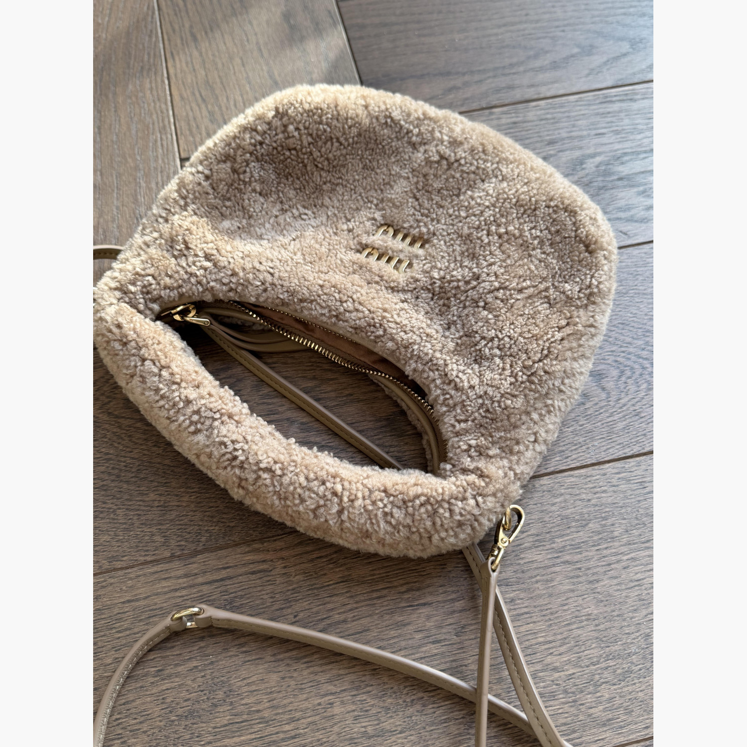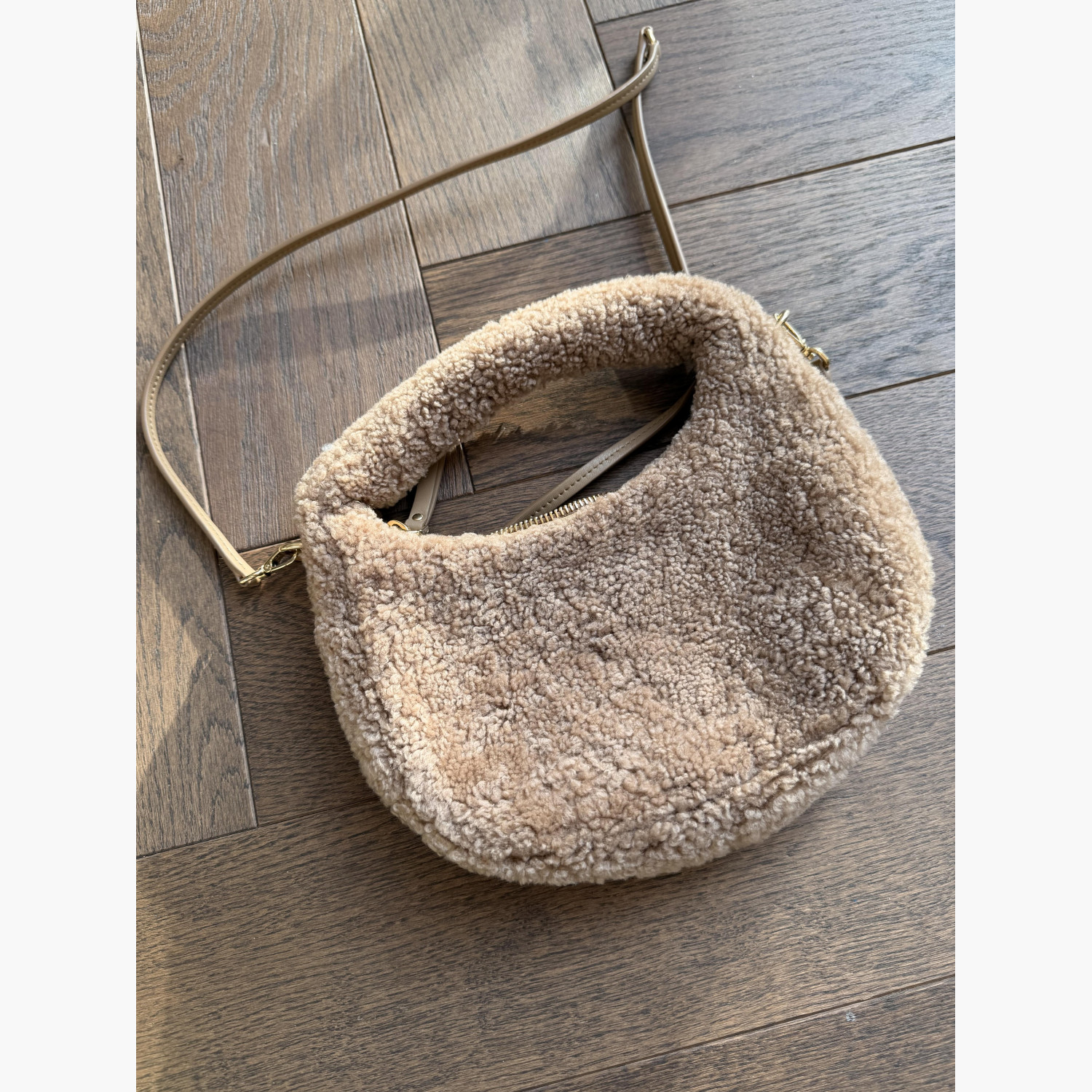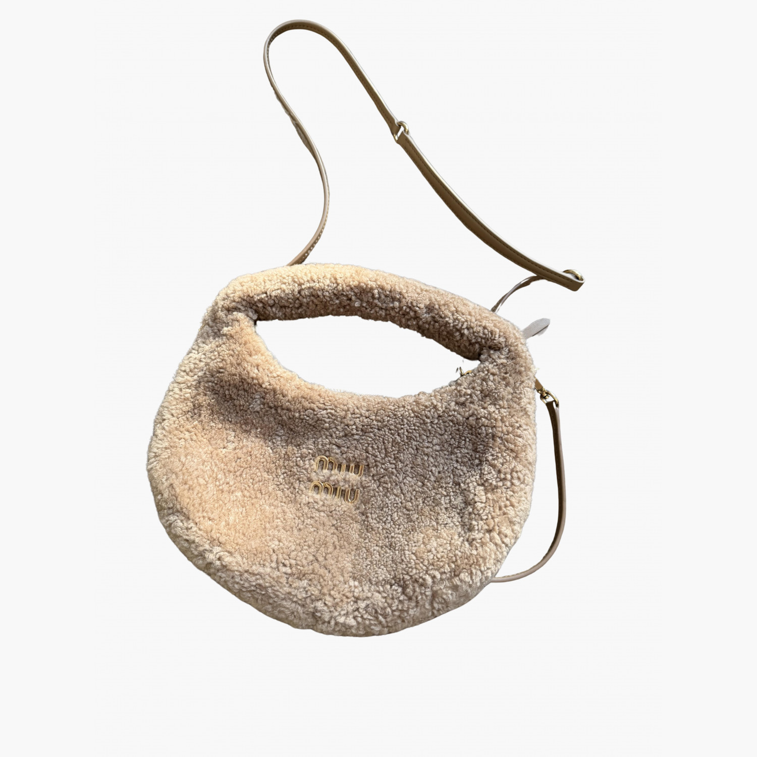 Beige fur bag with a removable thin brown leather strap.In excellent condition.