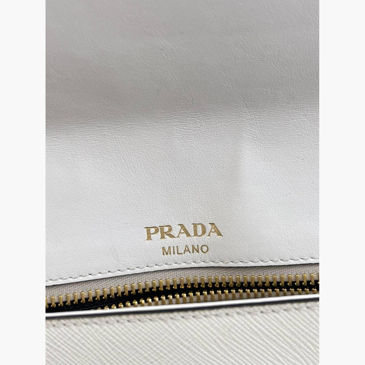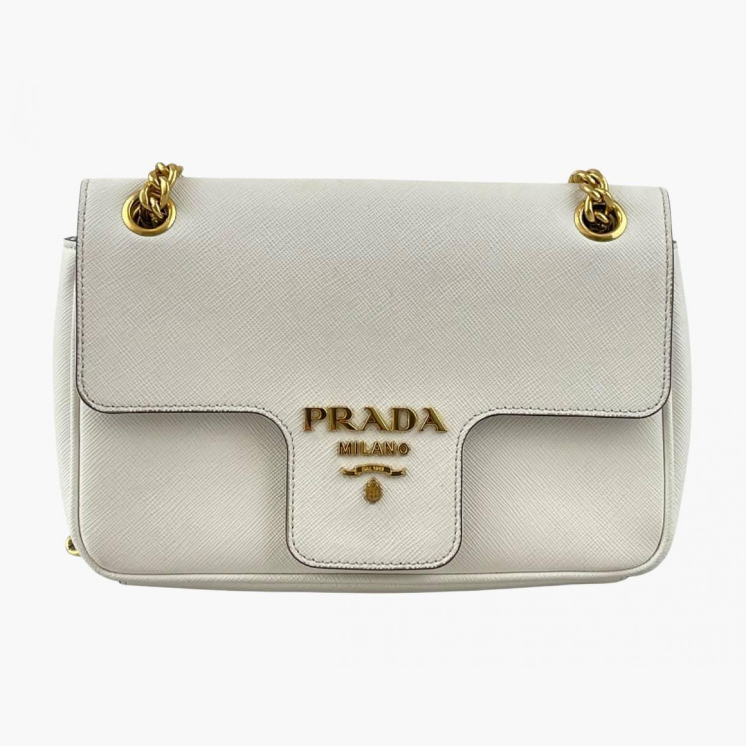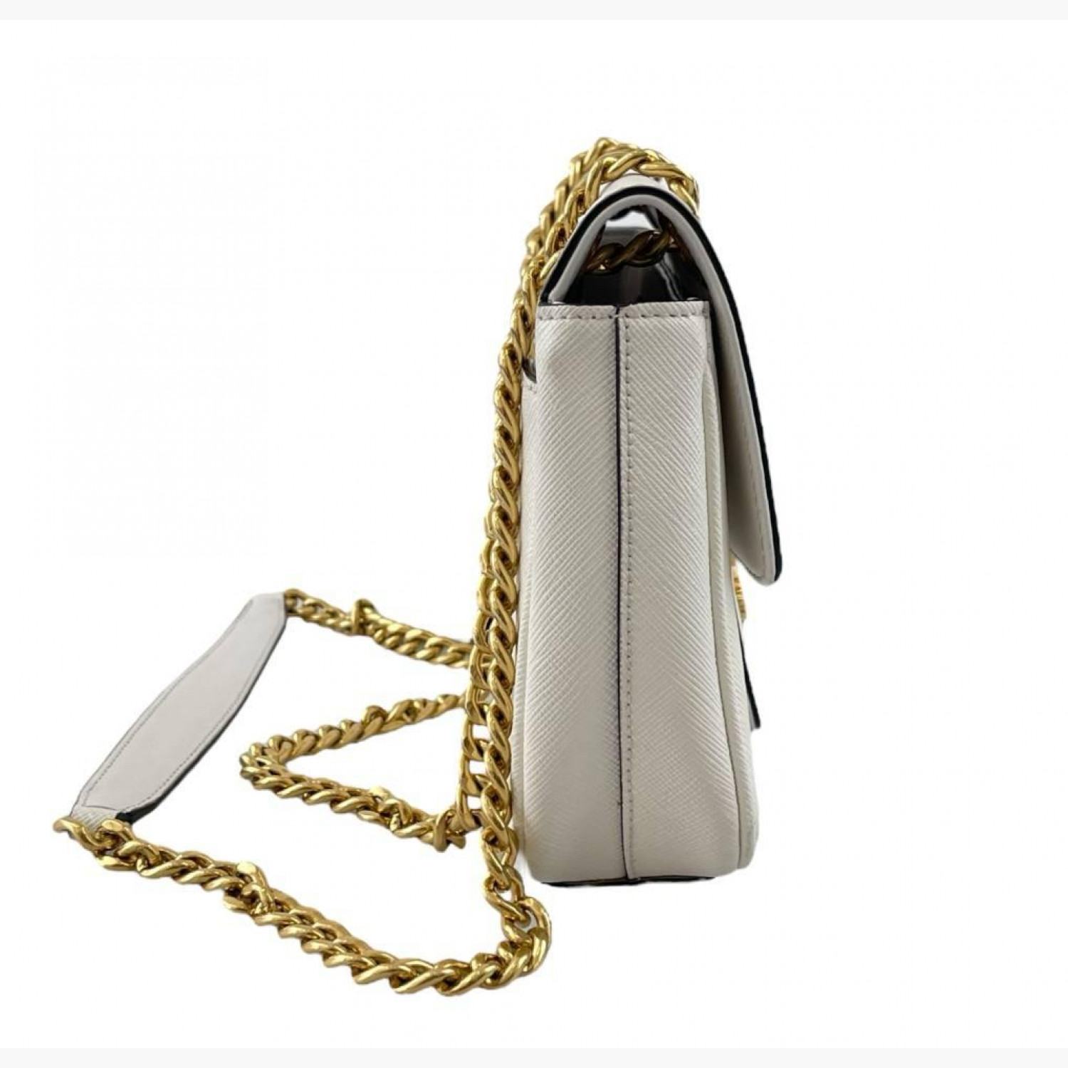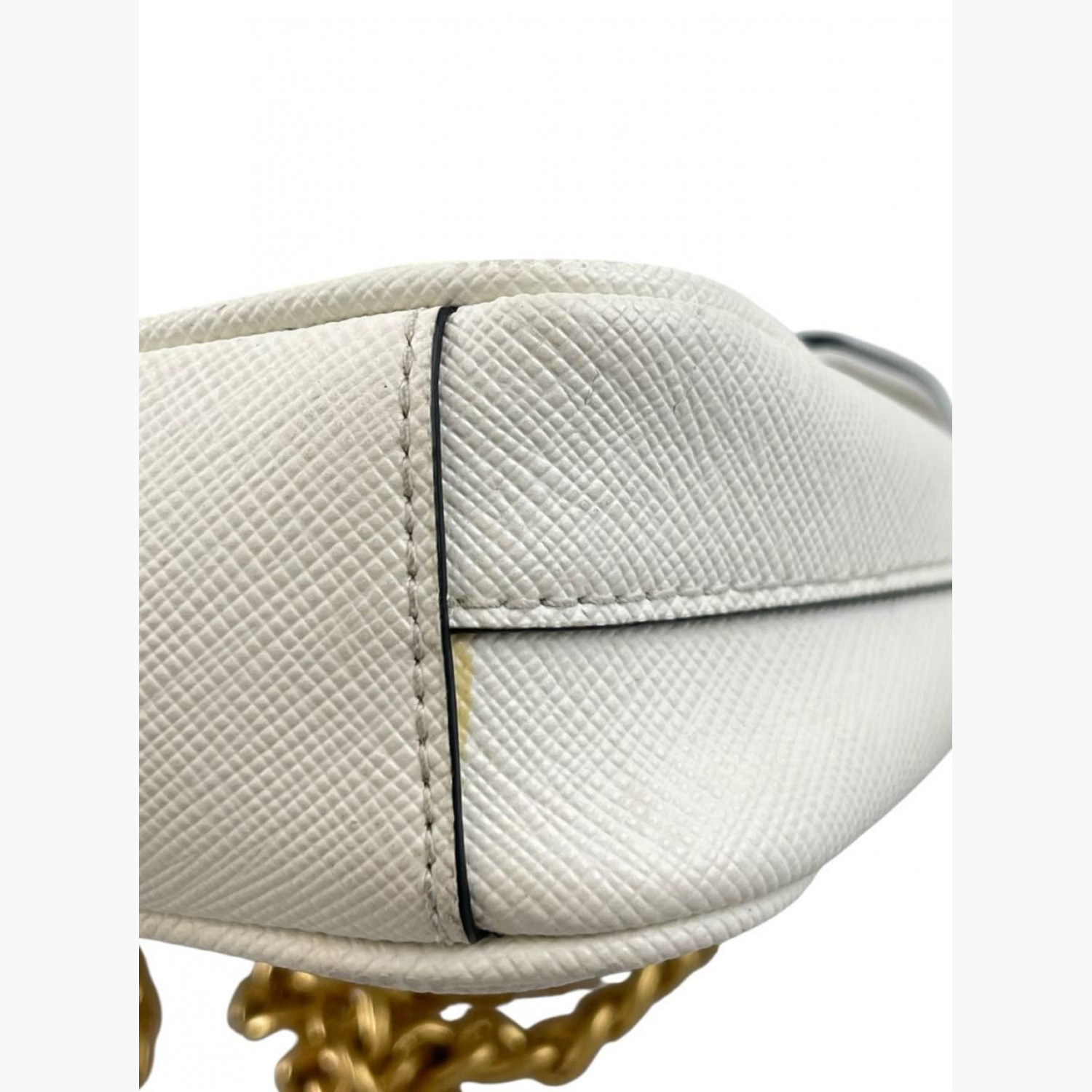 Cream leather bag. One main compartment with a zip pocket and an open pocket inside, an open pocket on the back side of the bag. In good condition, with wear marks.