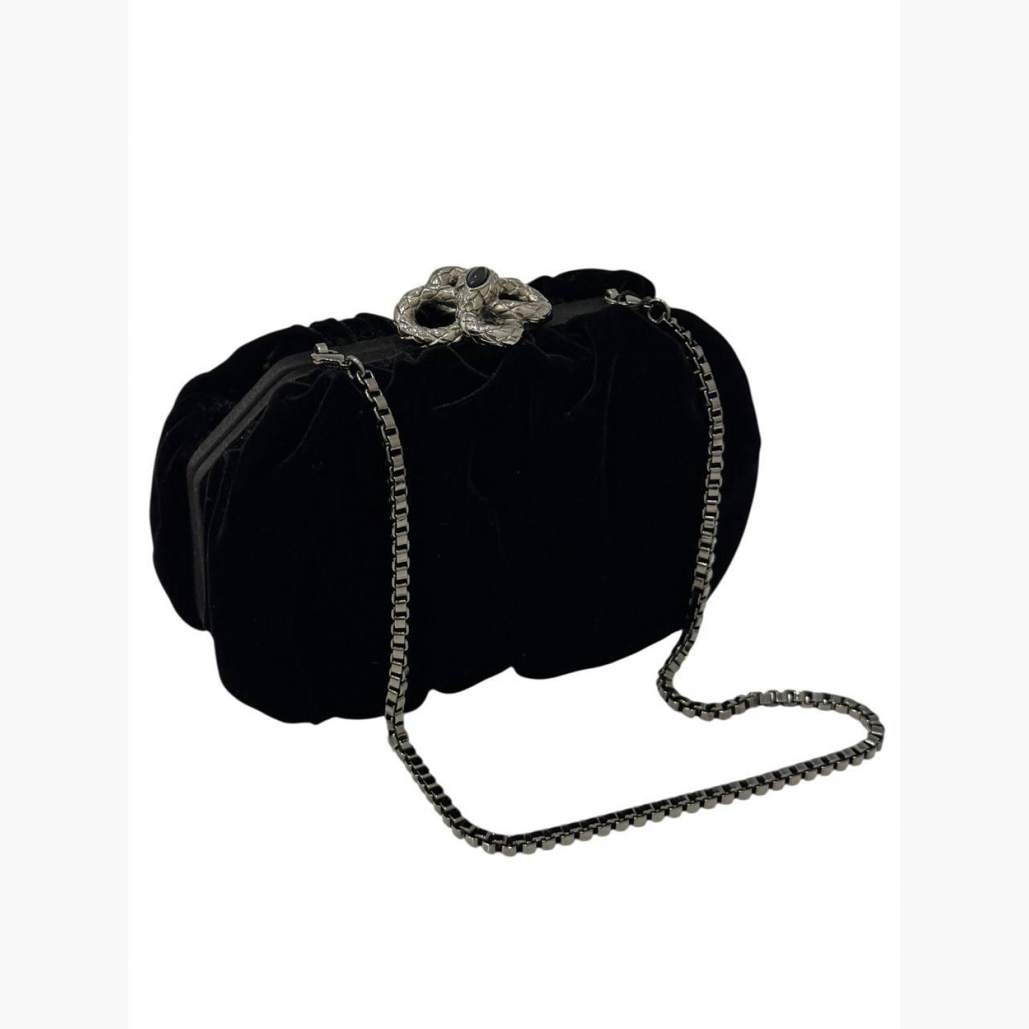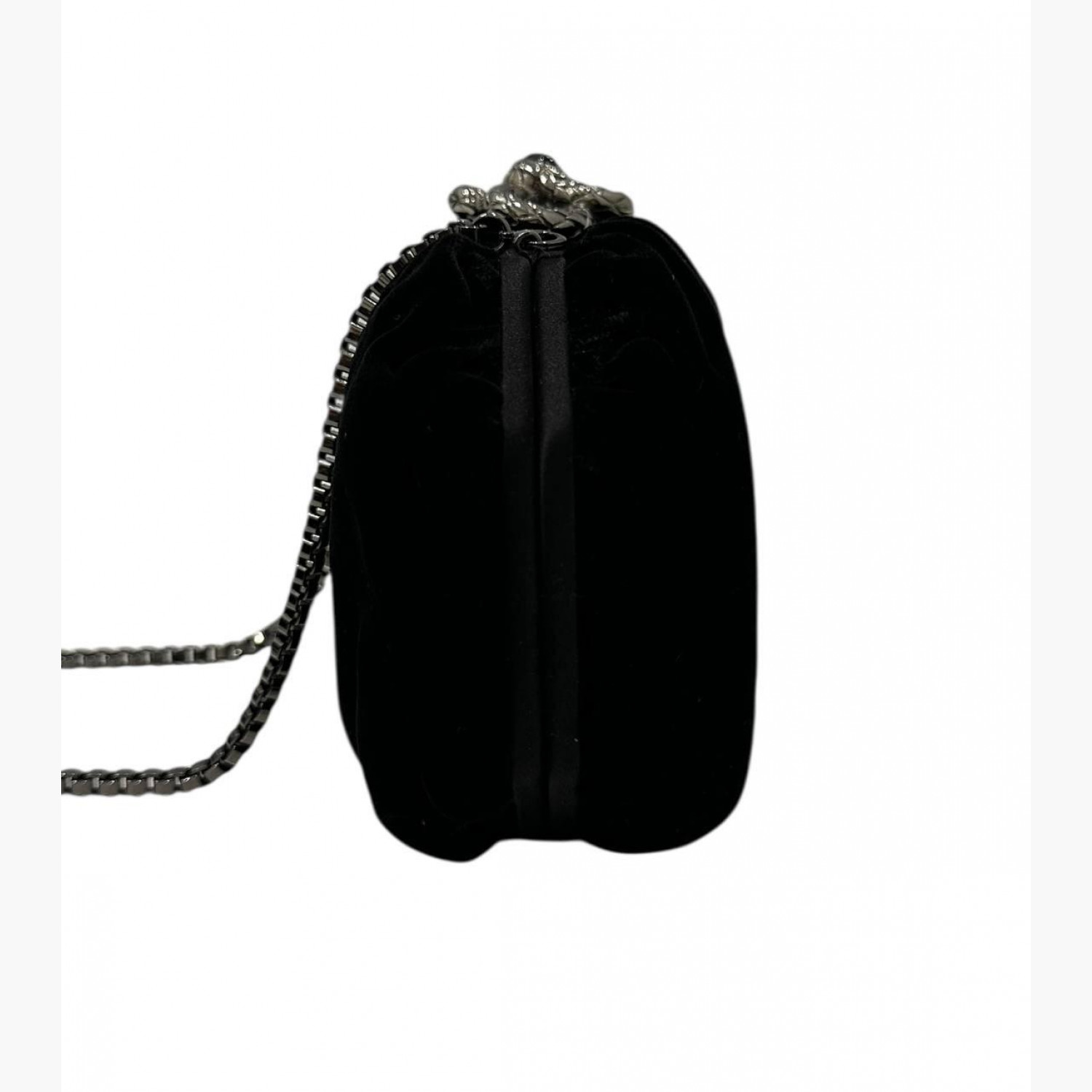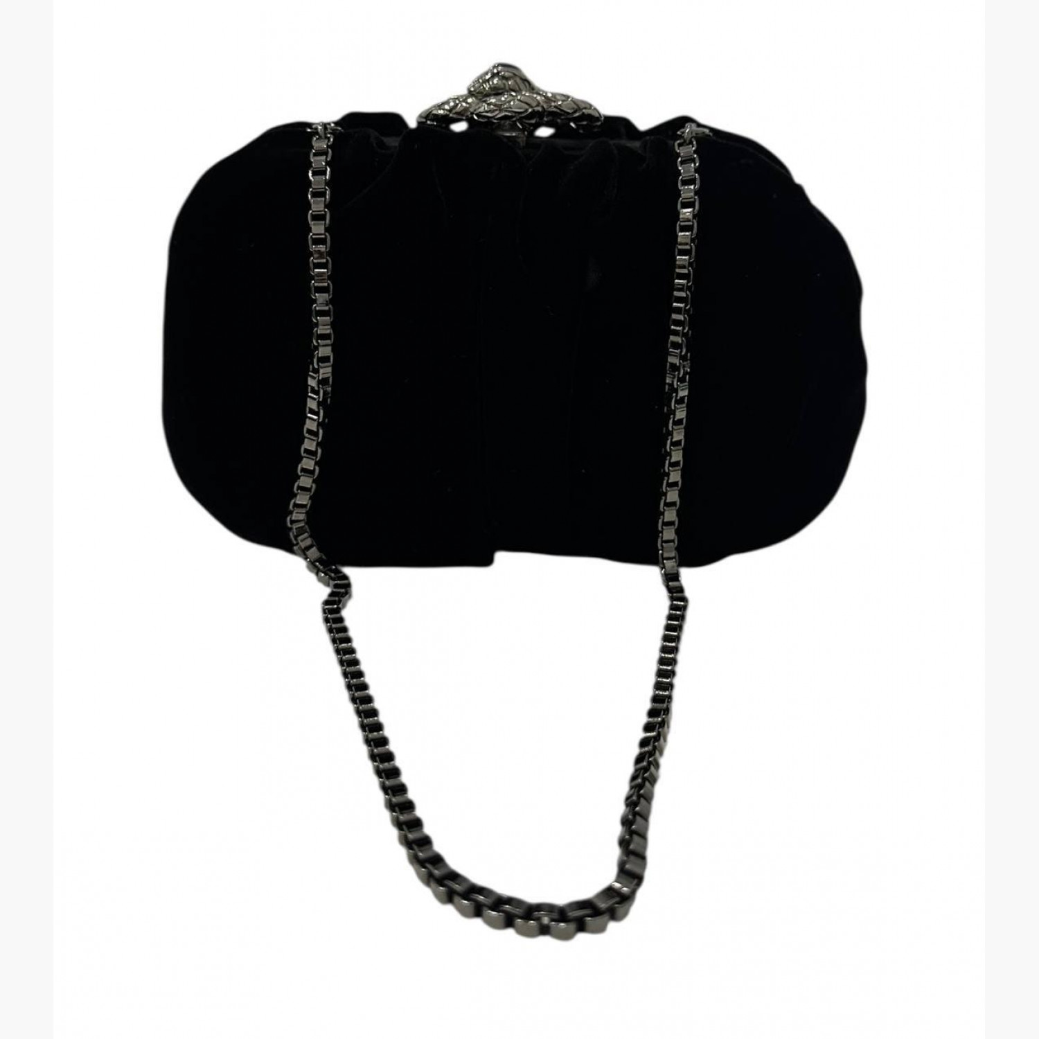 Black velvet bag with a chain strap. One main compartment inside. In perfect condition, with no wear marks.
